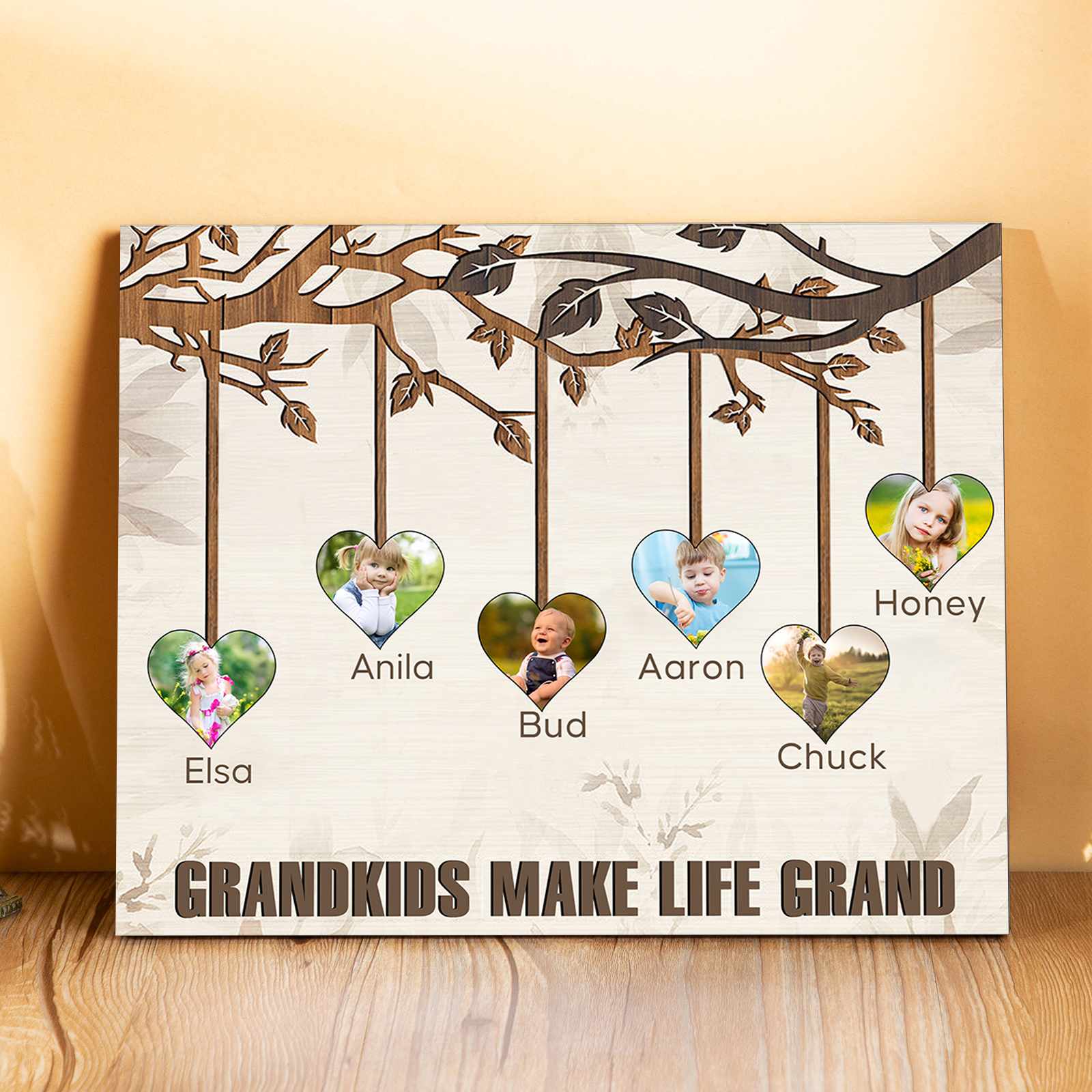 À ma Famille - Cadre en Bois Arbre de Vie 6 Prénoms et 6 Photos Personnalisés avec Texte