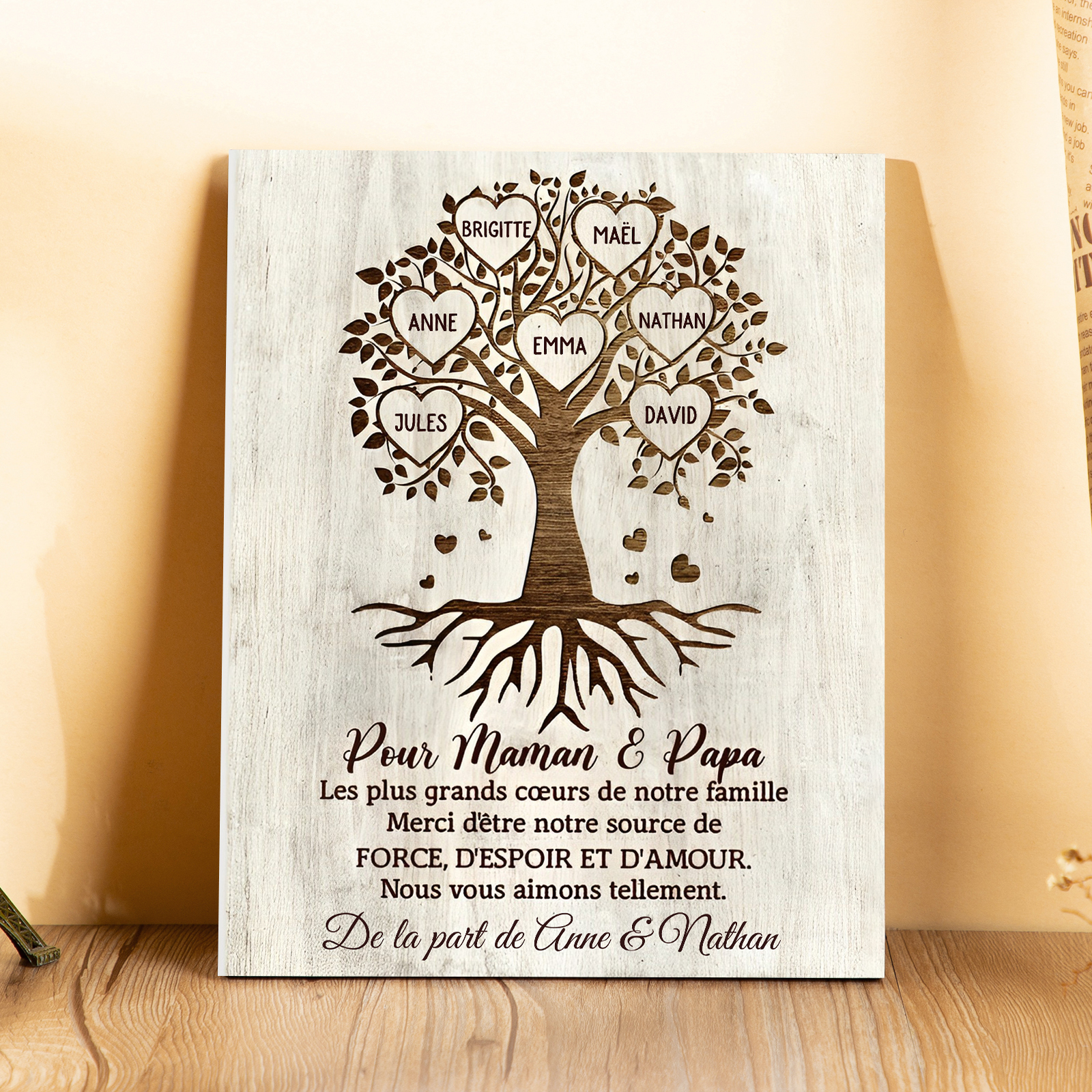 À ma Famille - Cadre en Bois Arbre de Vie 7 Prénoms Personnalisés avec Texte