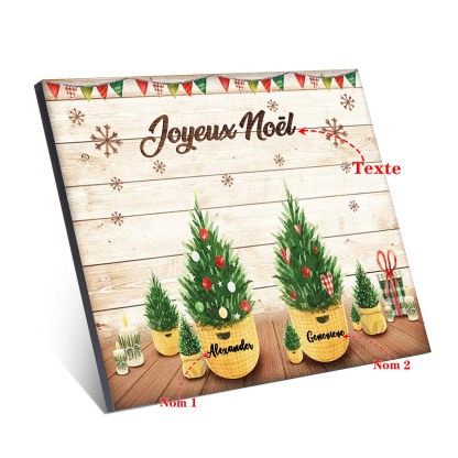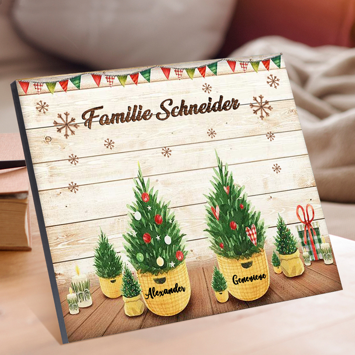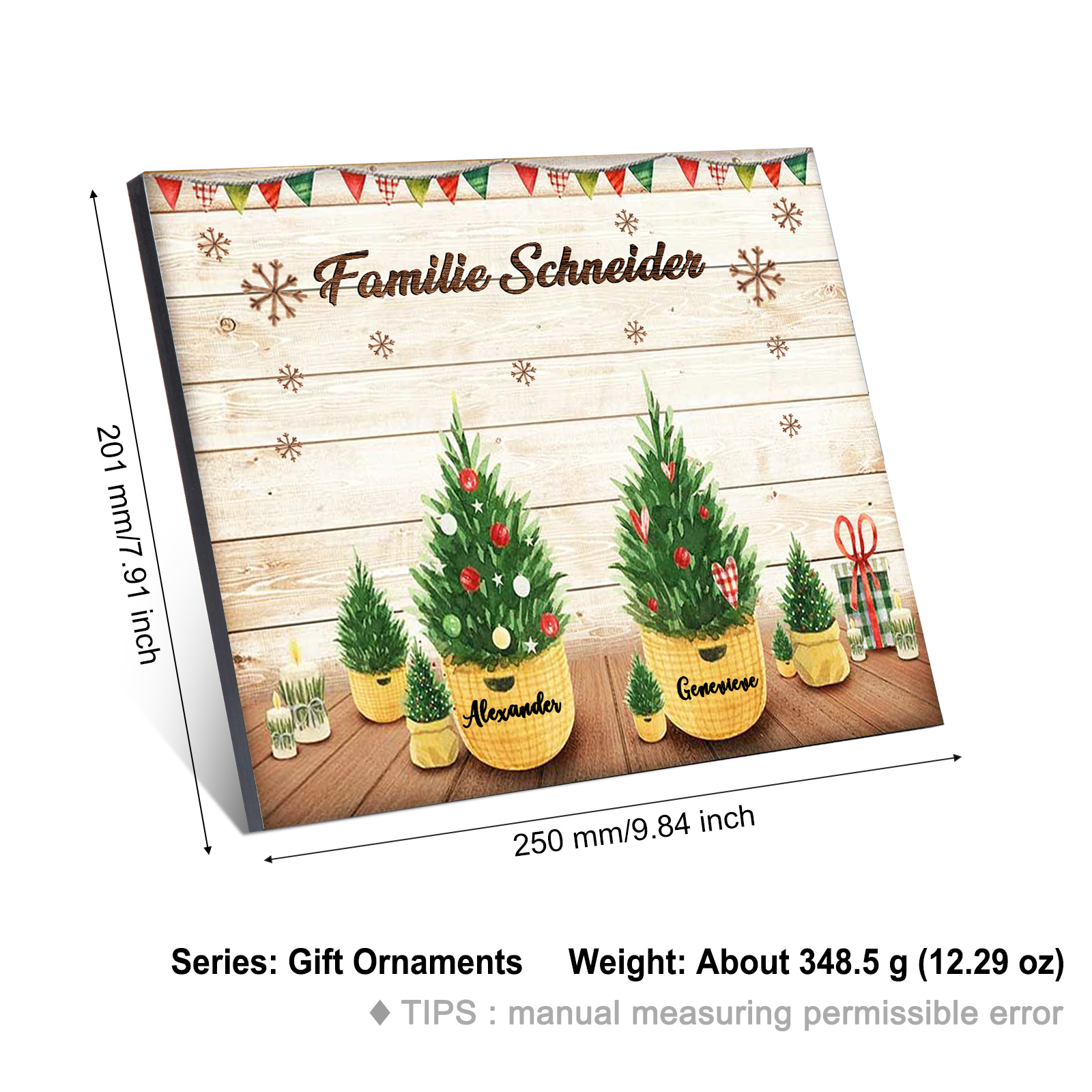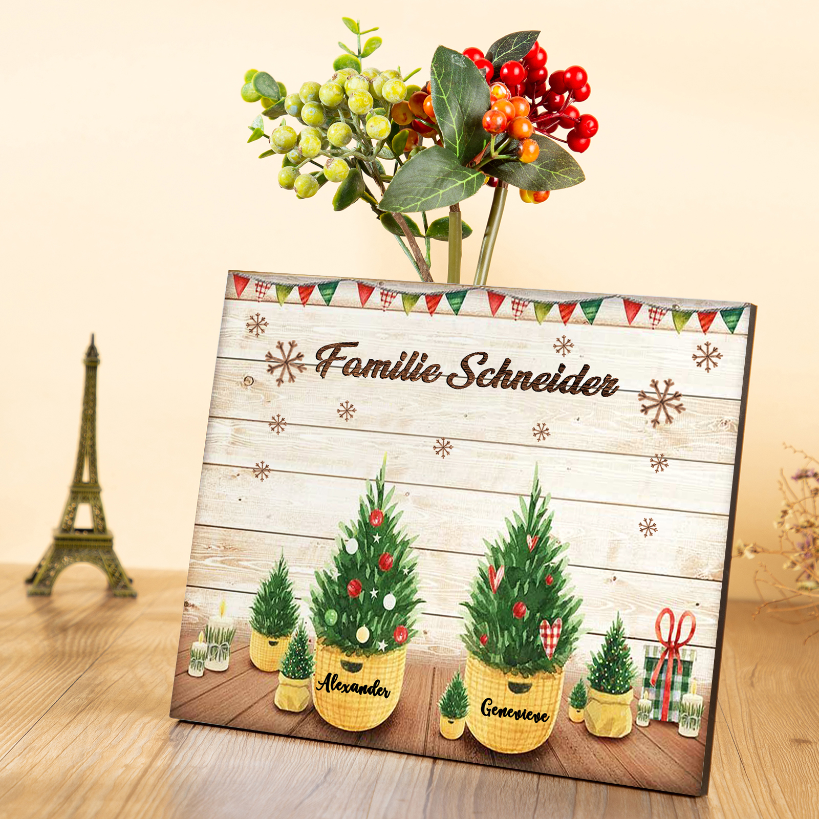 À ma Famille - Cadre en Bois de Noël 2 Prénoms Personnalisés avec Texte