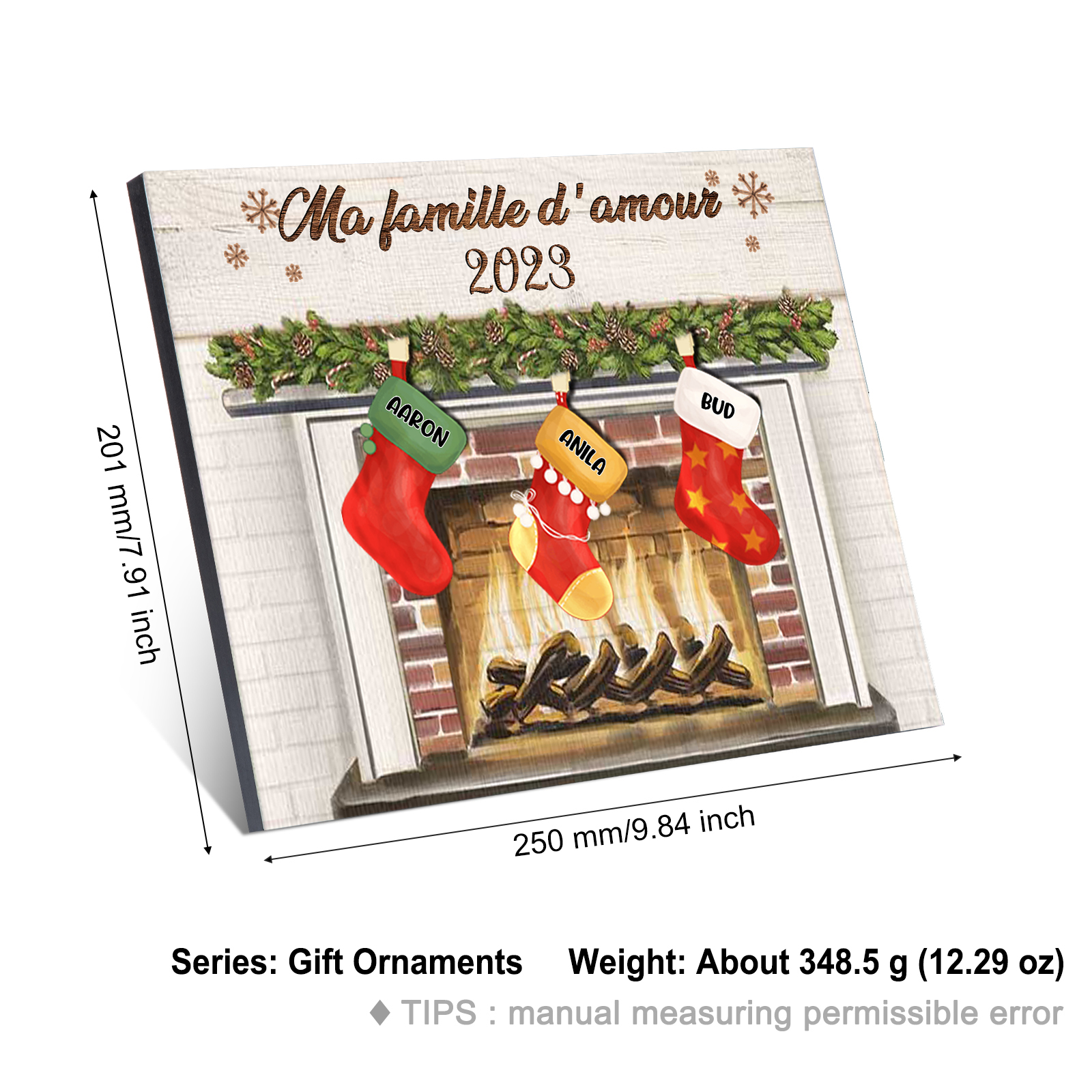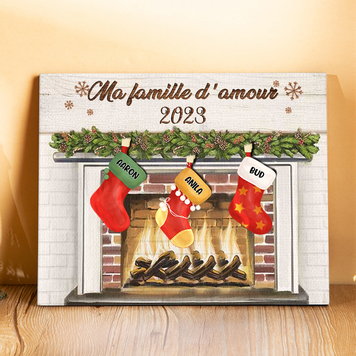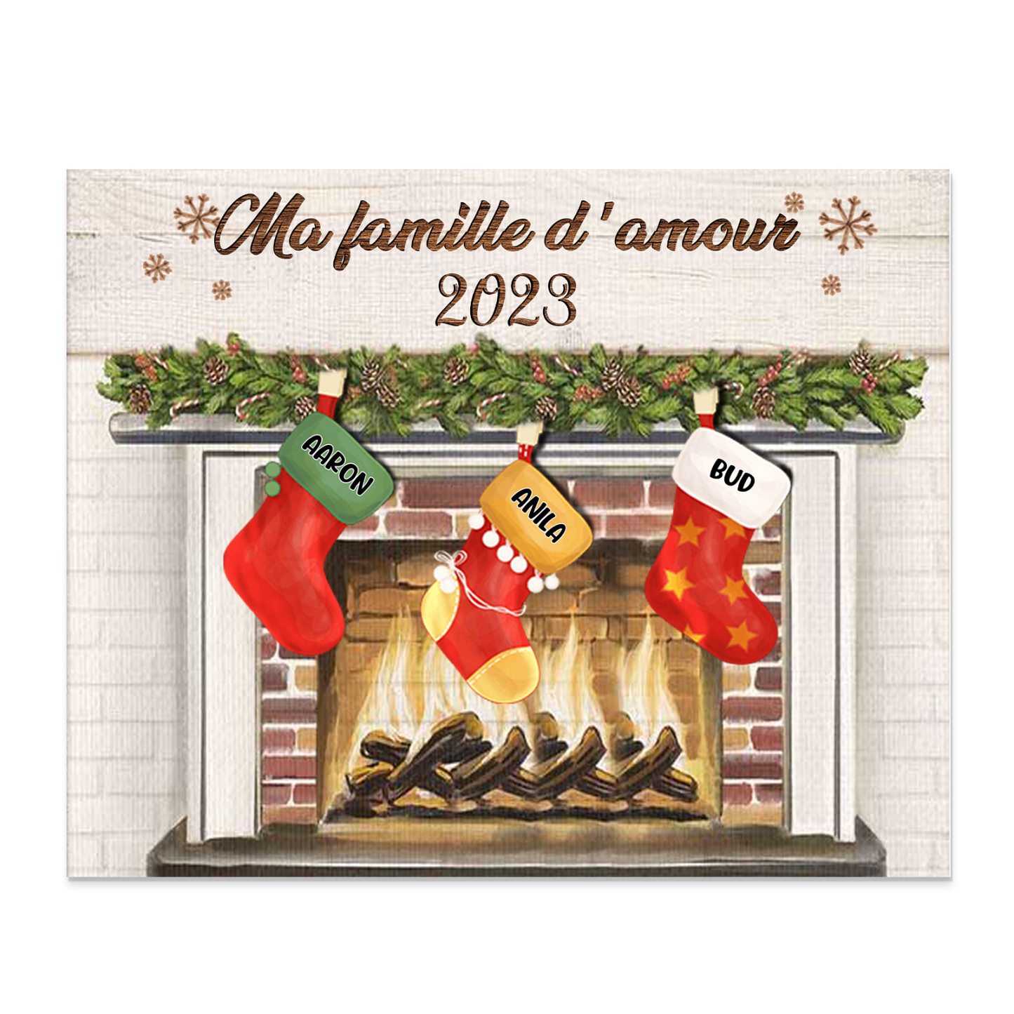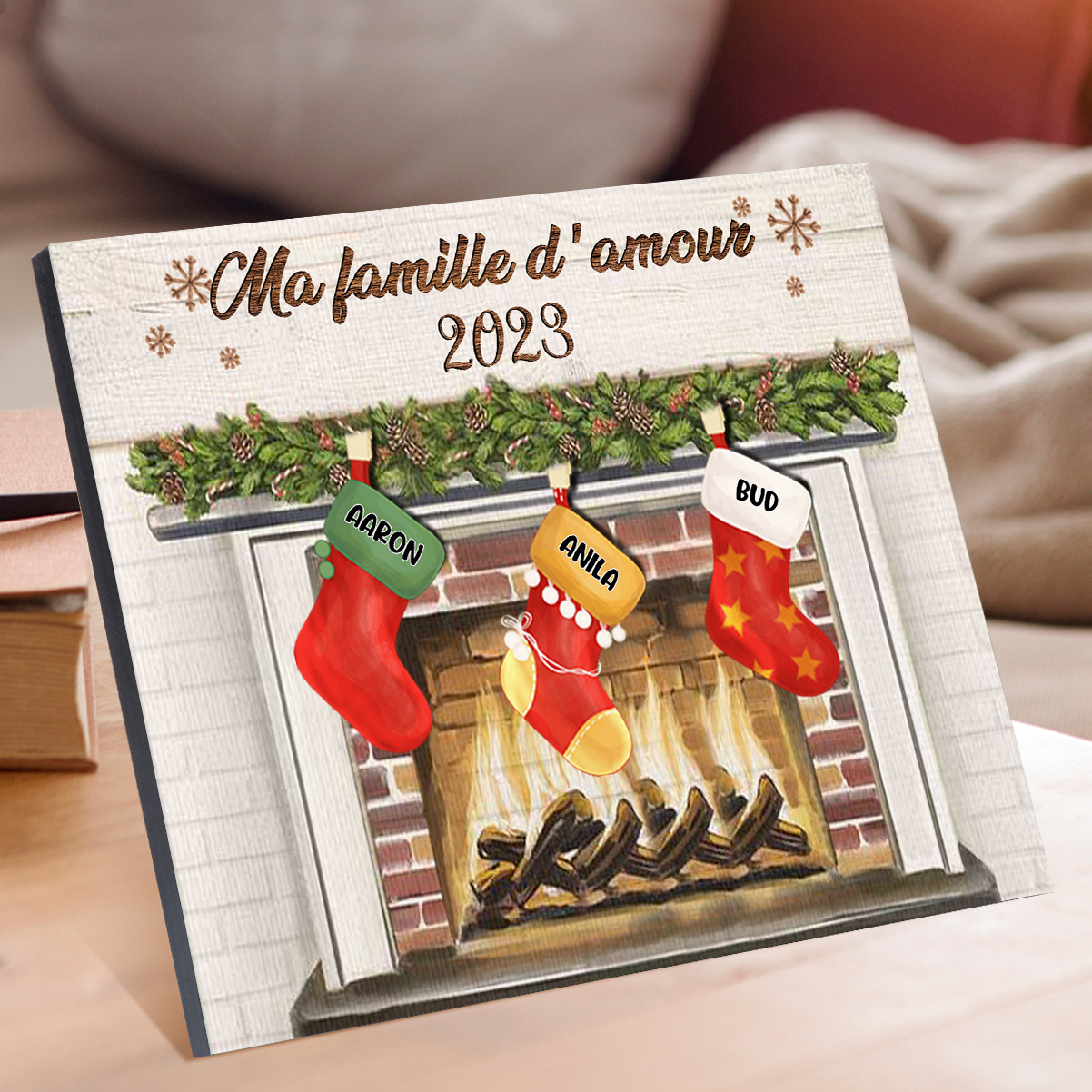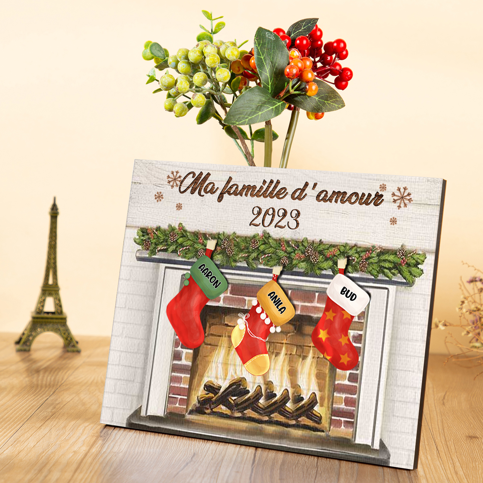 À ma Famille - Cadre en Bois de Noël 3 Prénoms Personnalisés avec Texte