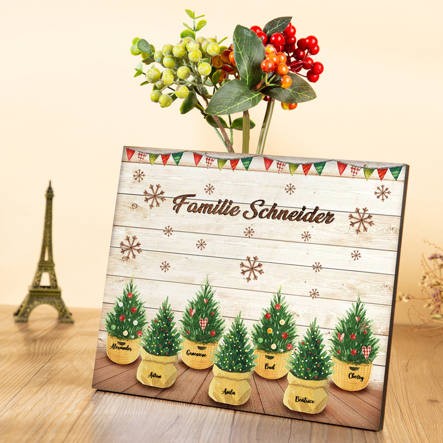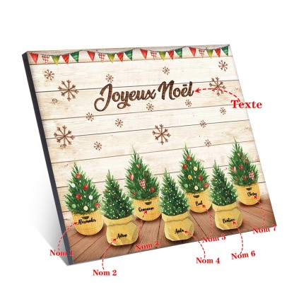 À ma Famille - Cadre en Bois de Noël 7 Prénoms Personnalisés avec Texte