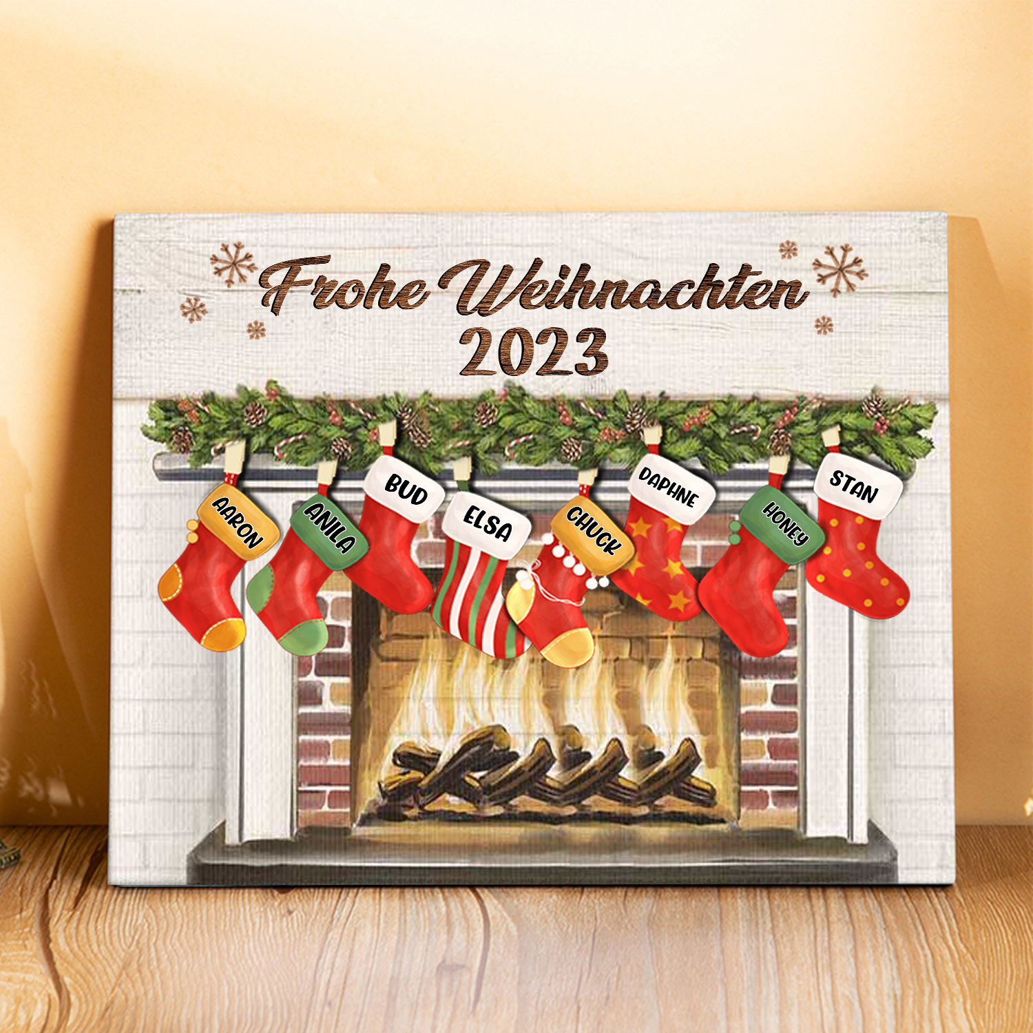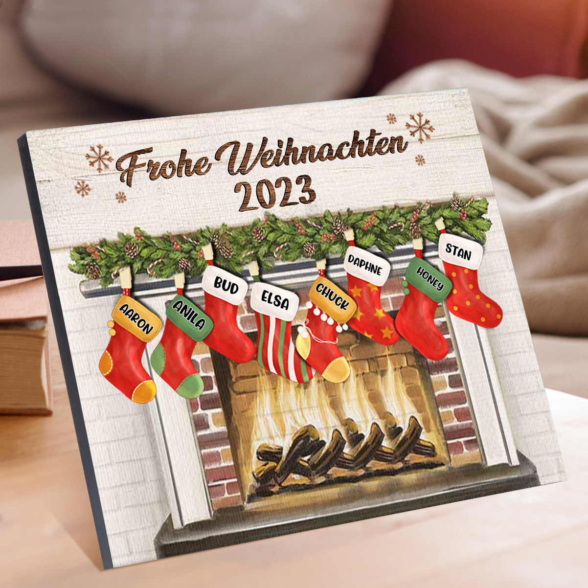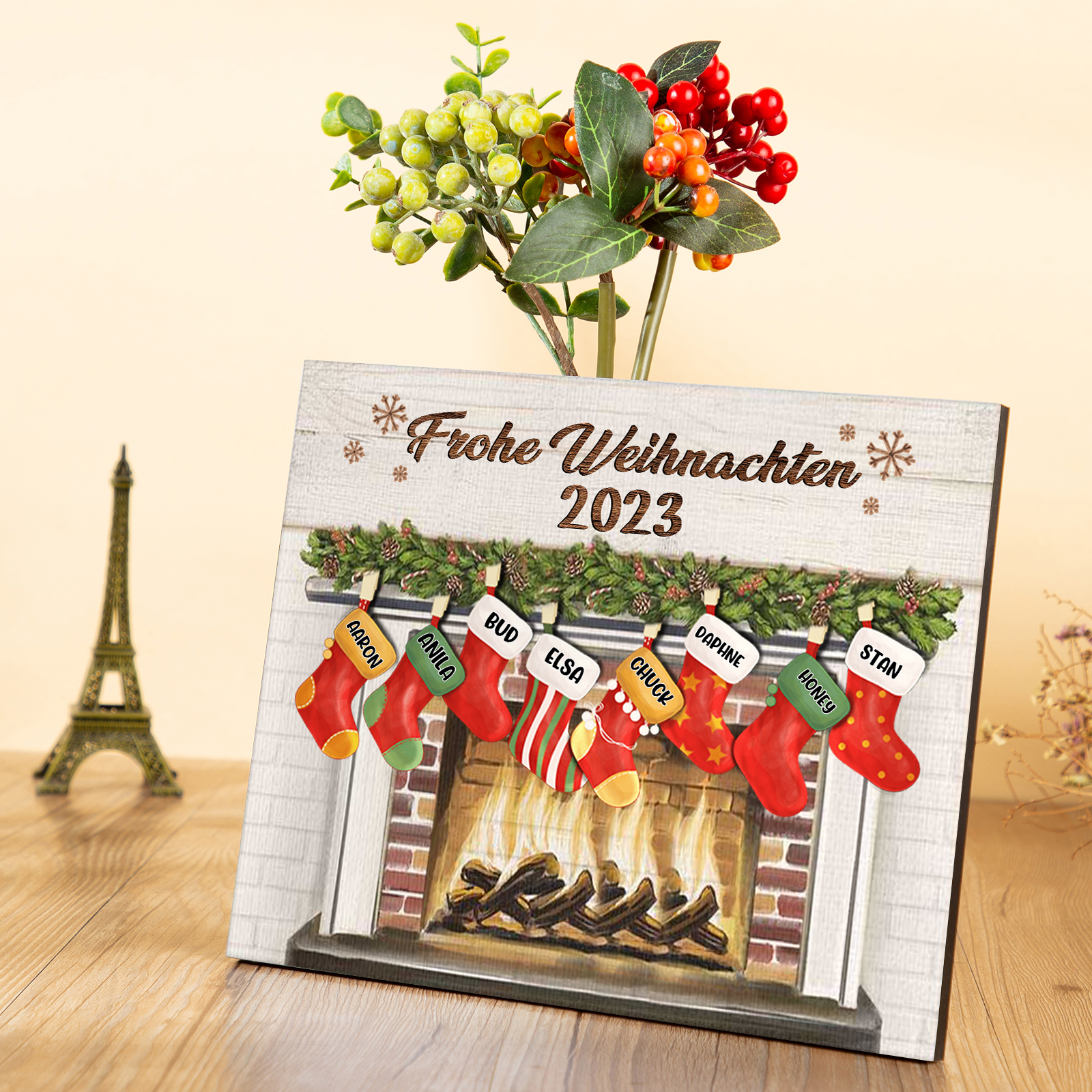À ma Famille - Cadre en Bois de Noël 8 Prénoms Personnalisés avec Texte