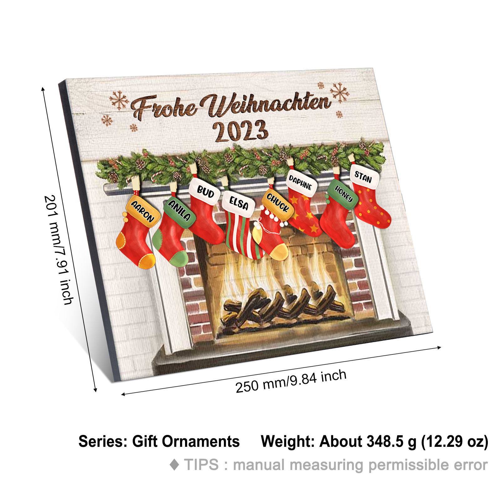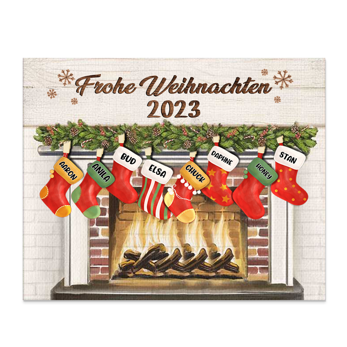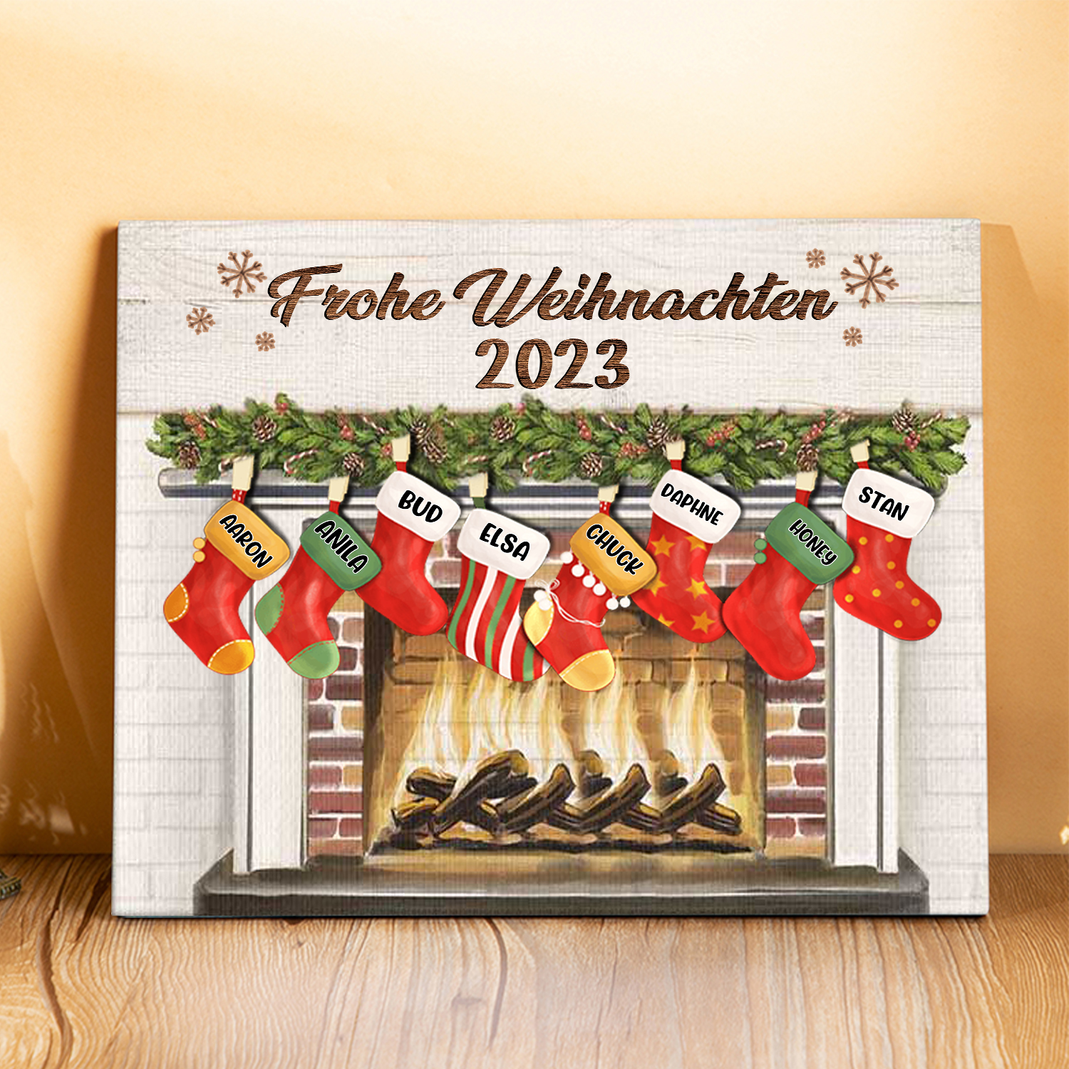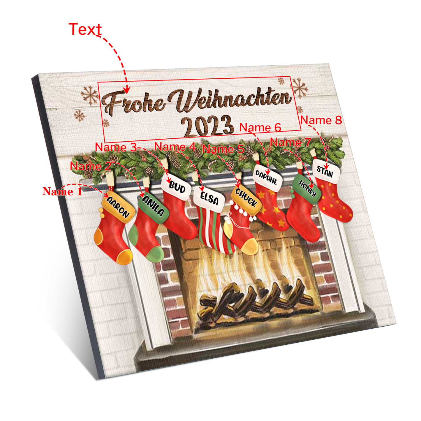 À ma Famille - Cadre en Bois de Noël 8 Prénoms Personnalisés avec Texte