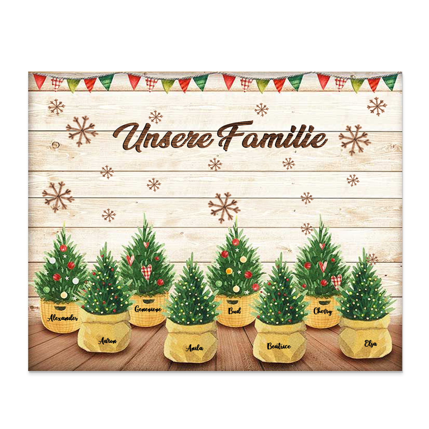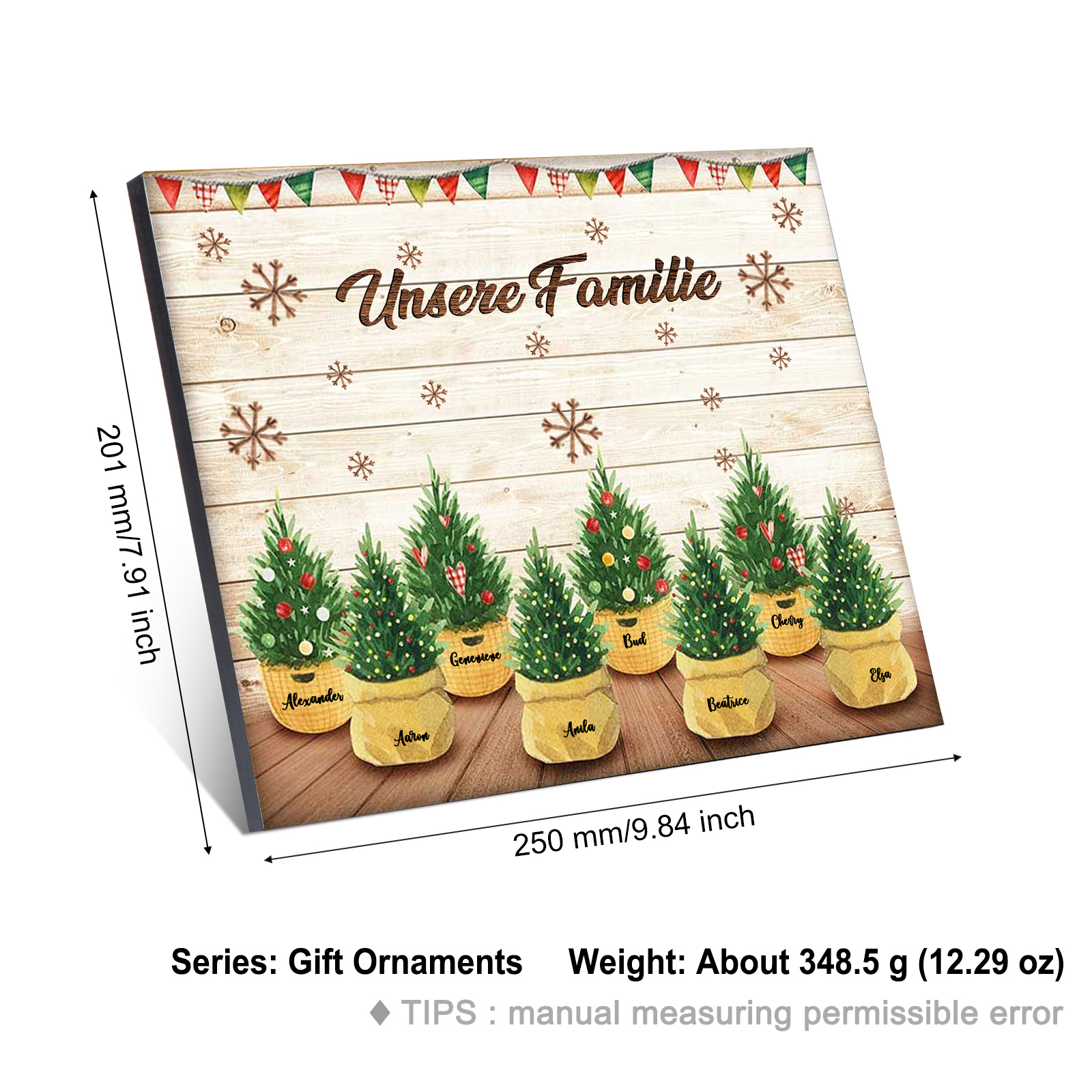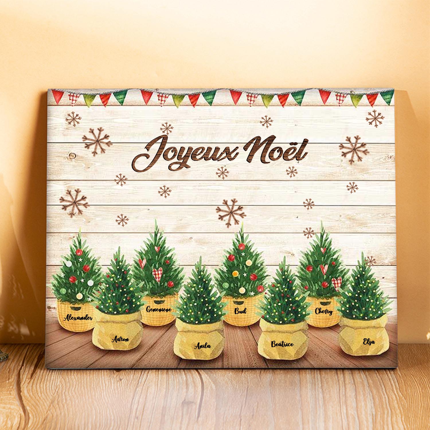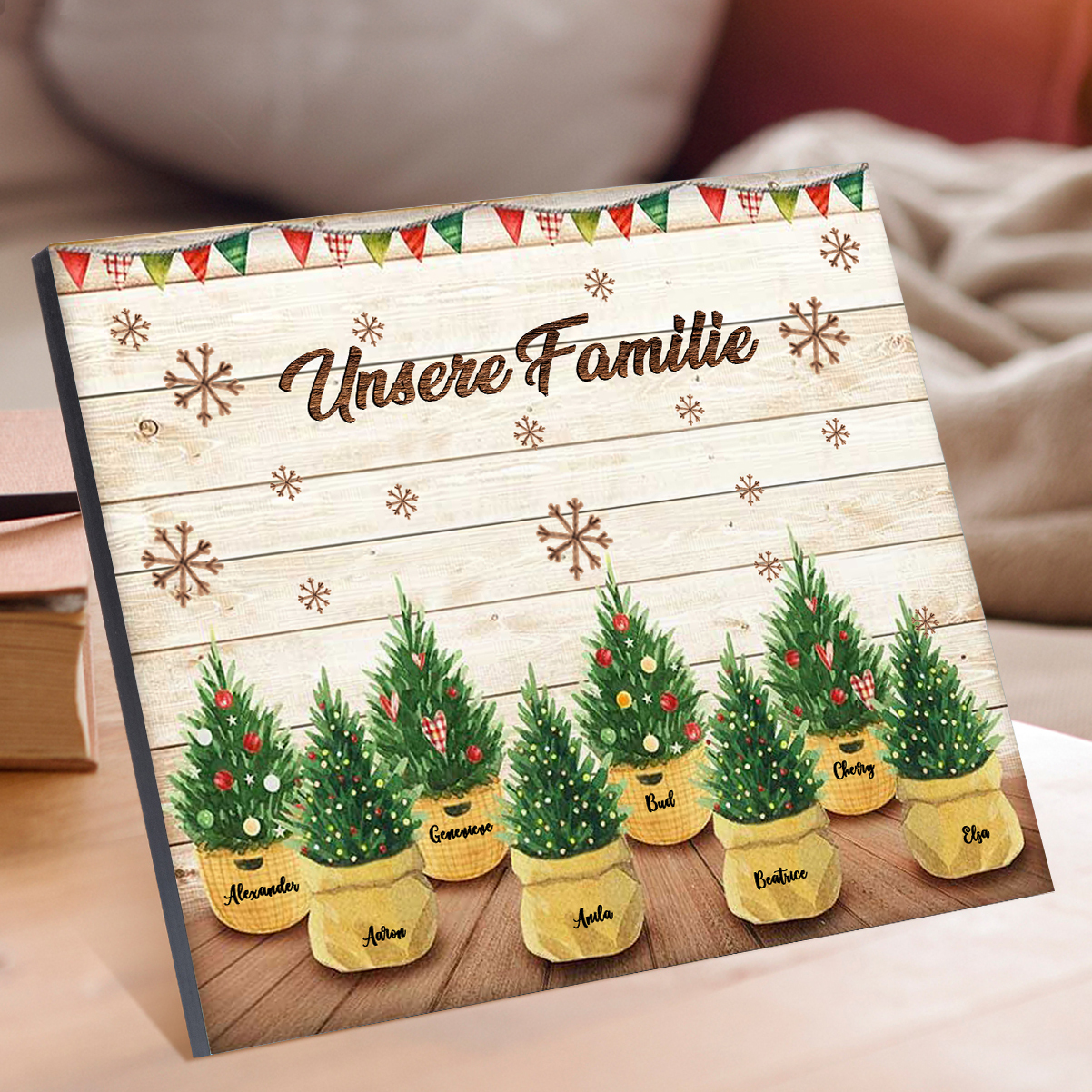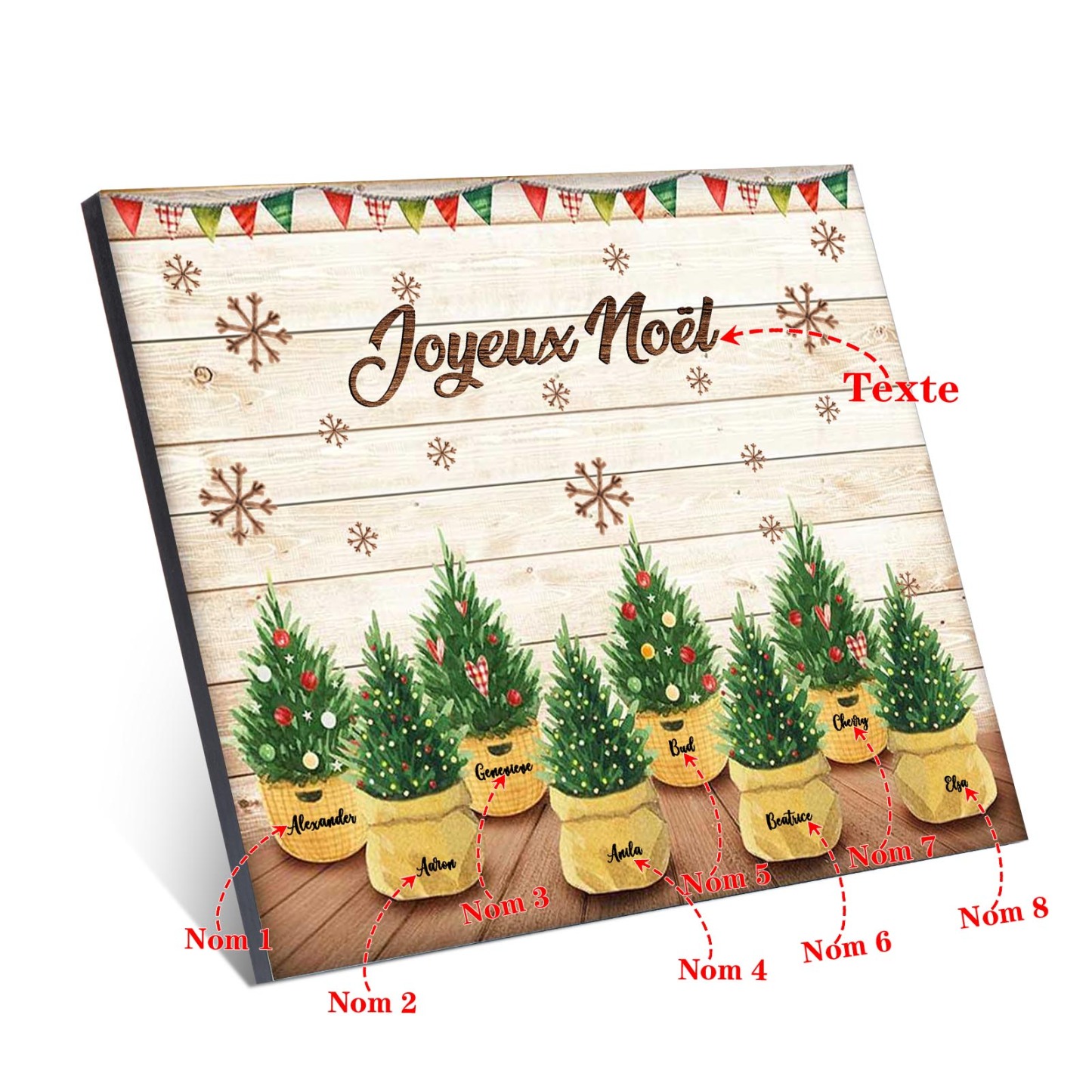 À ma Famille - Cadre en Bois de Noël 8 Prénoms Personnalisés avec Texte