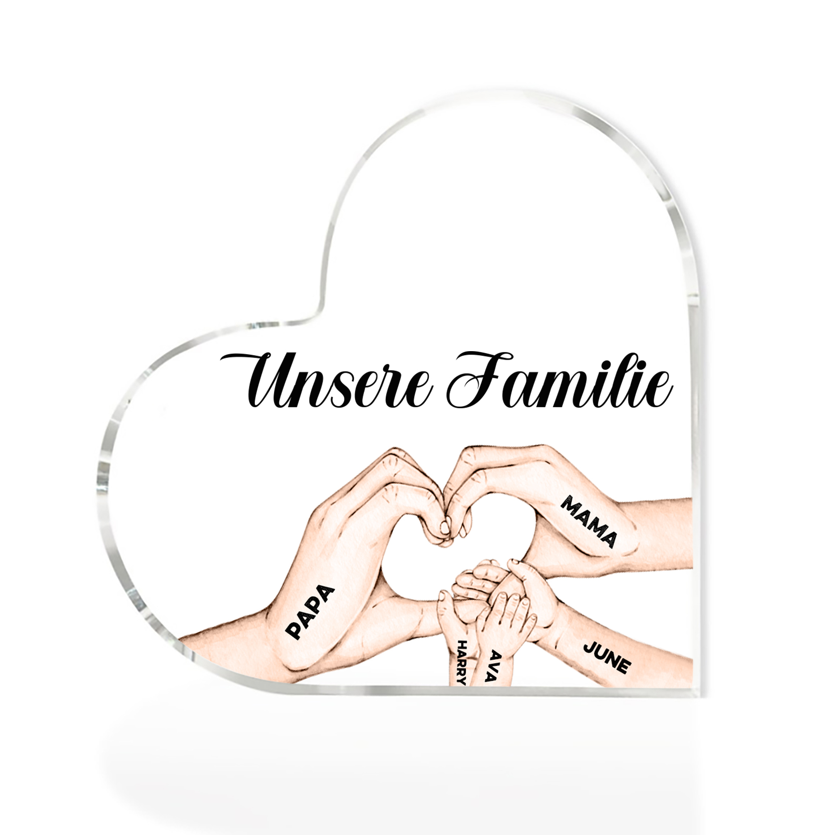 À Ma Famille - Plaque Acrylique en Forme de Cœur La Main Dans La Main 5 Prénoms Personnalisés avec Texte