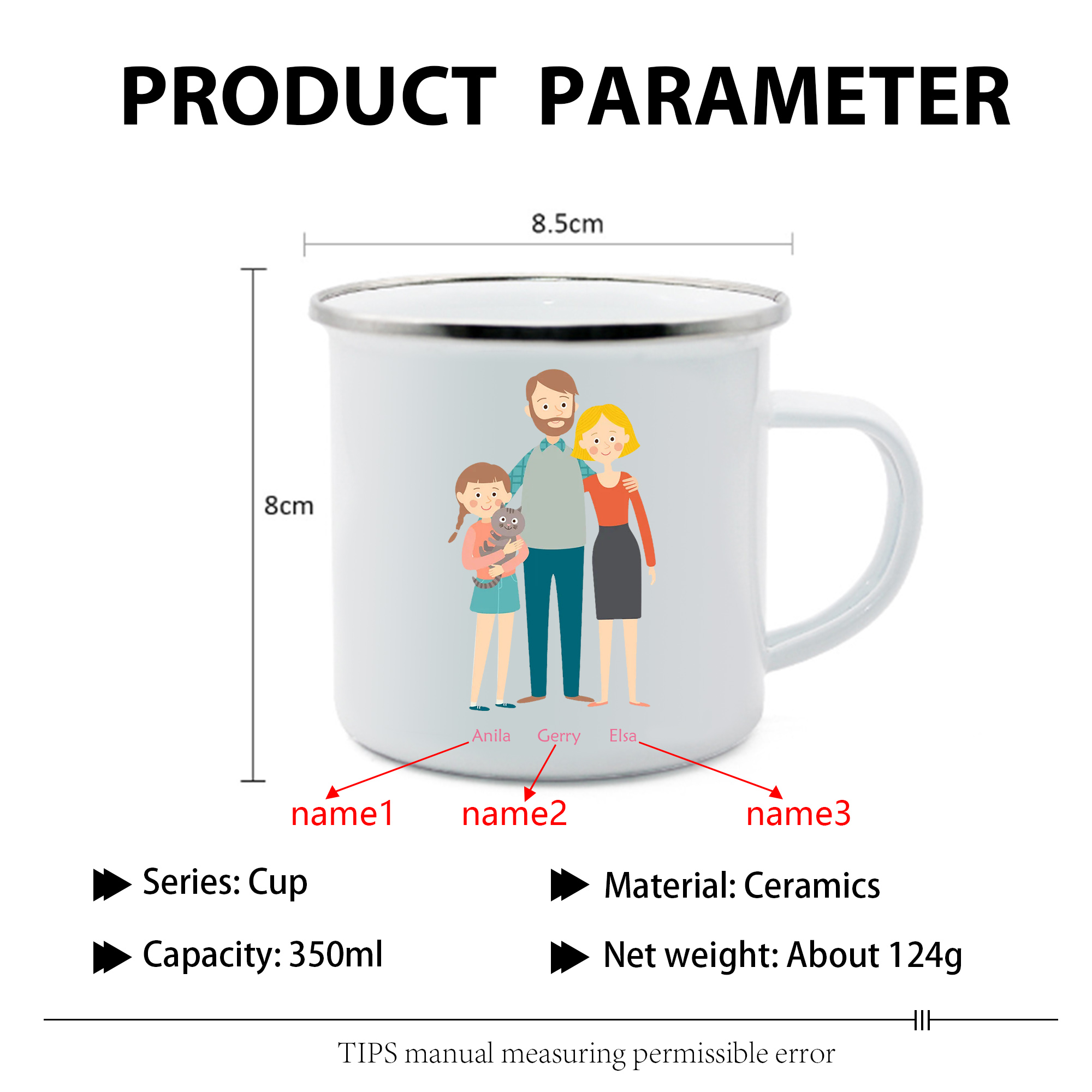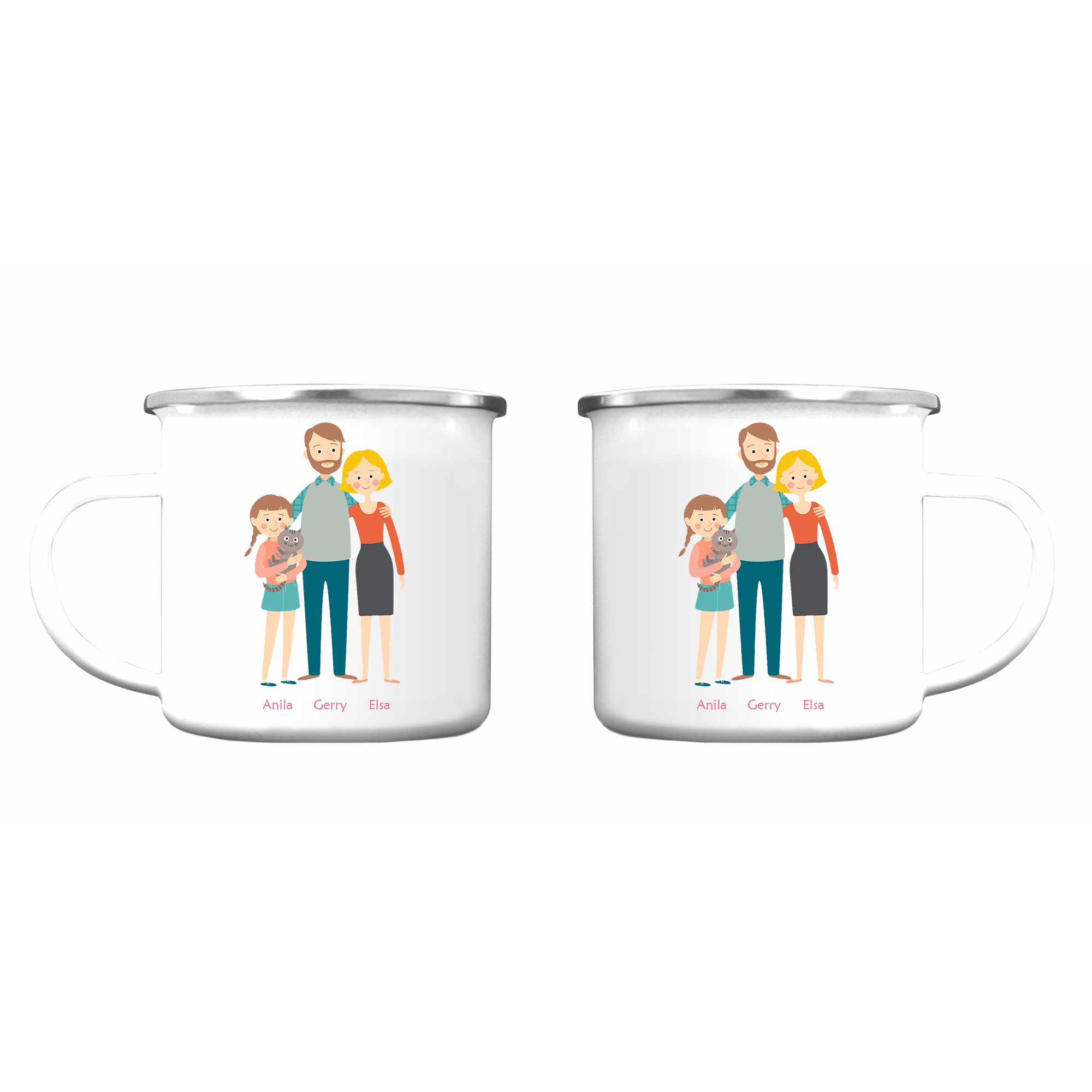 À Ma Famille - Tasse émaillée 3 Prénoms Personnalisés Parents et Fille