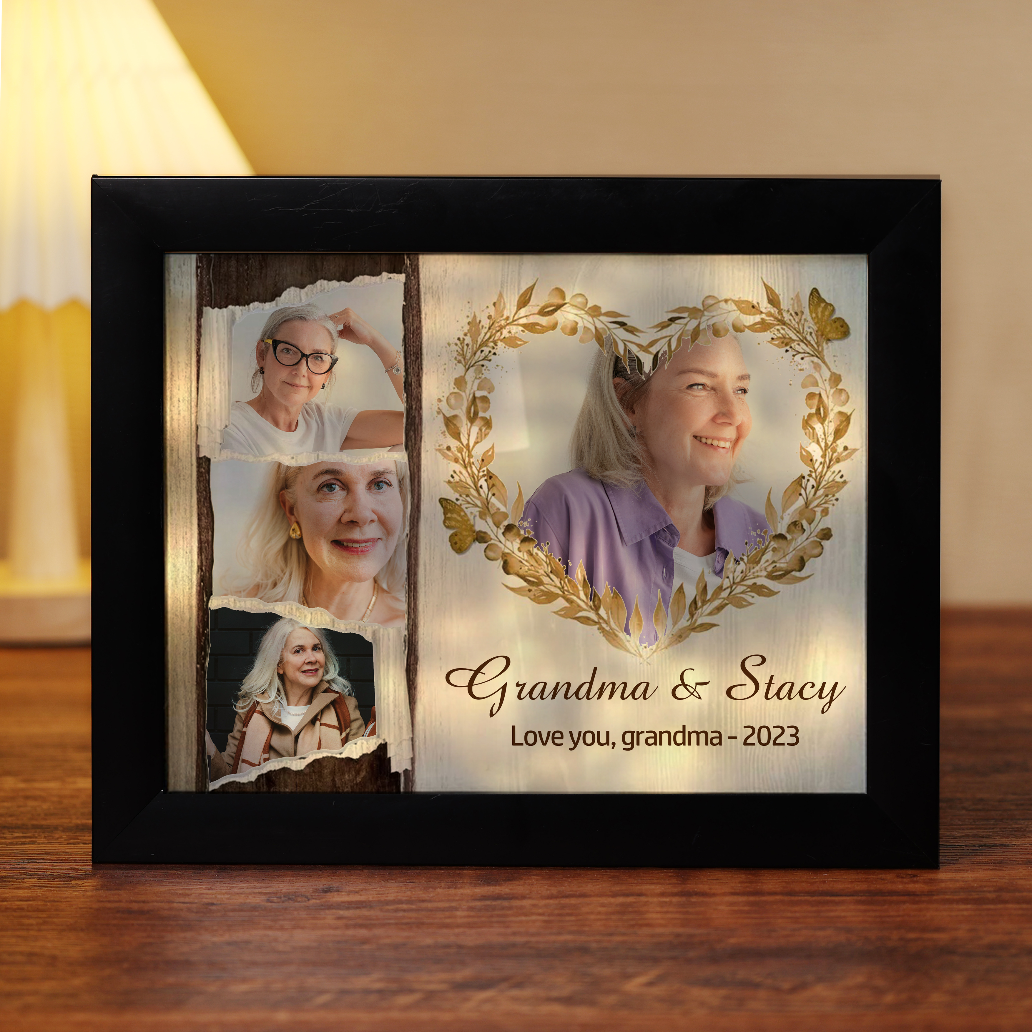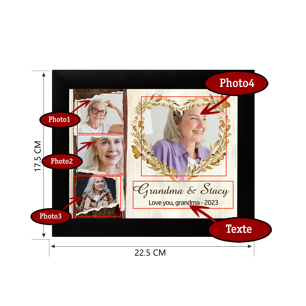 À Ma Famillle- Cadre photo LED 4 Photos Personnalisées avec Texte