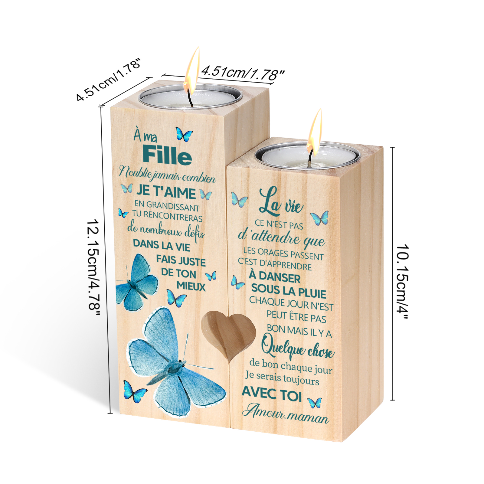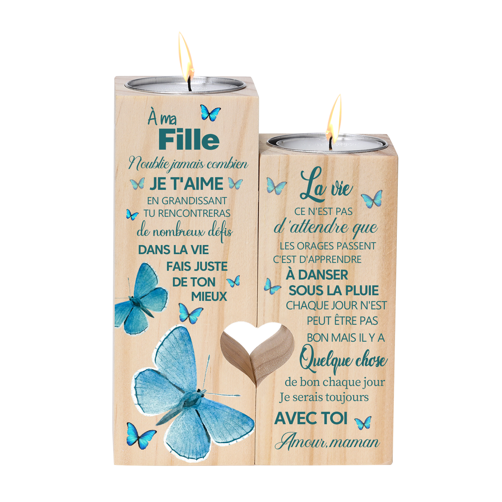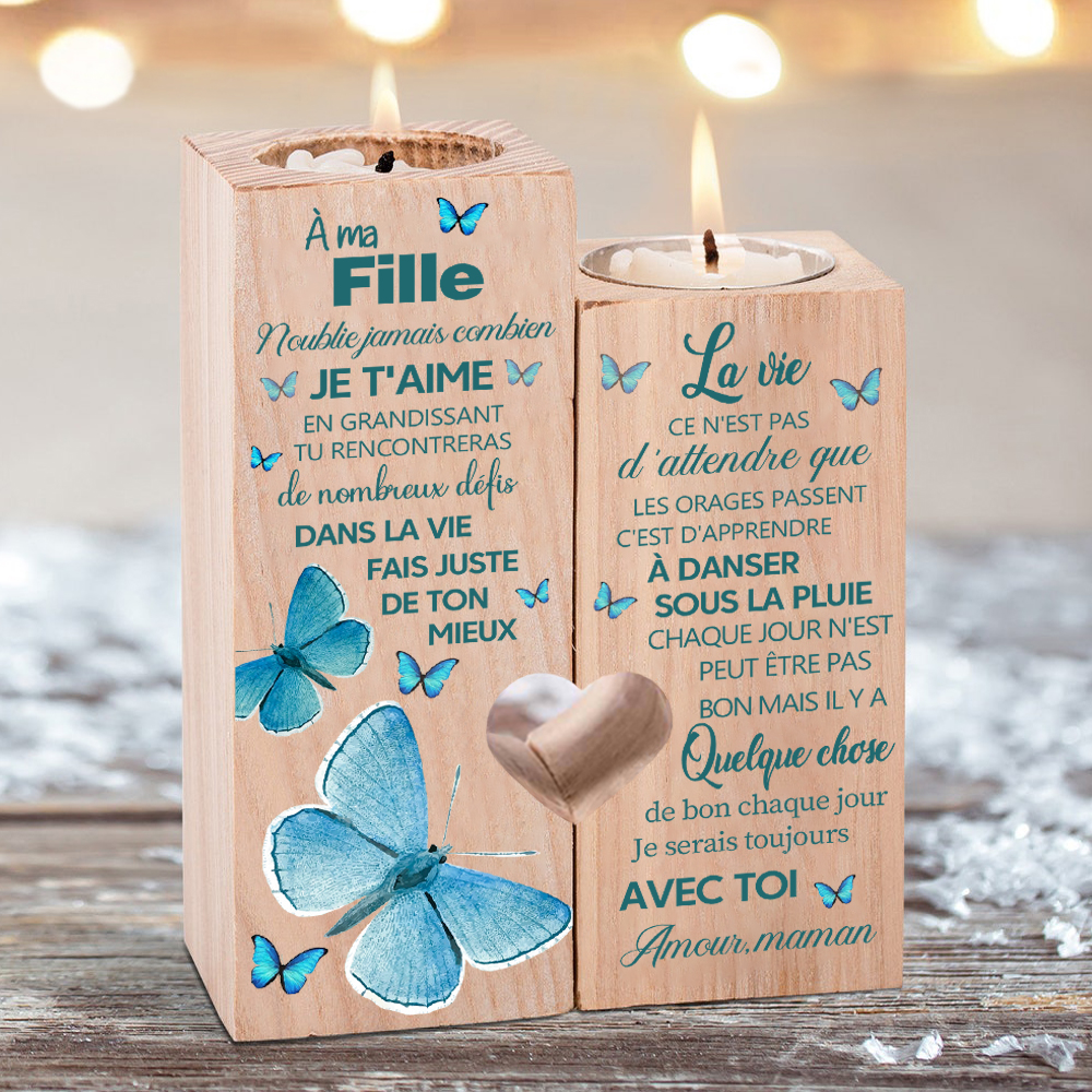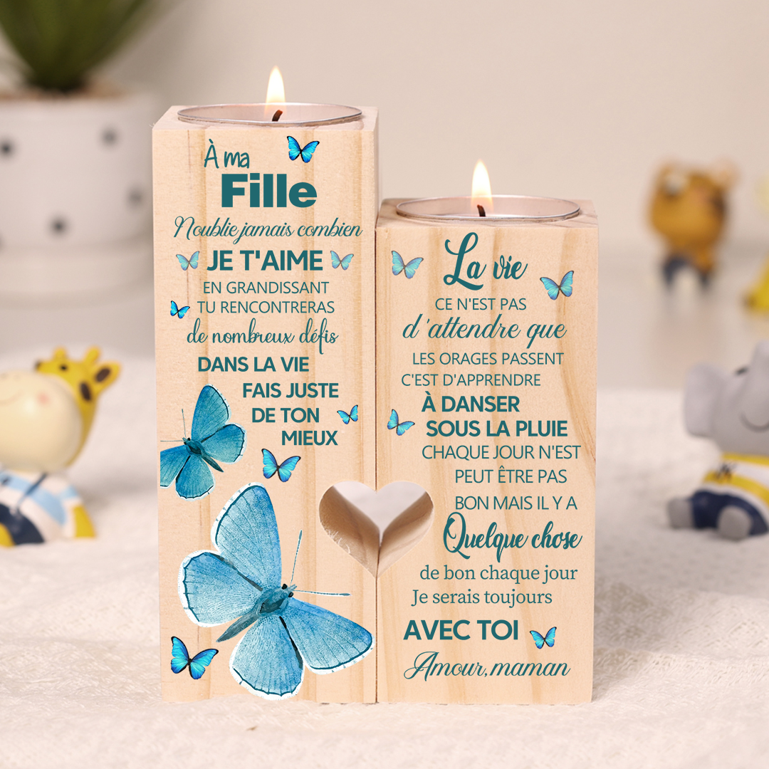 À ma Fille-Bougeoir en Bois sans bougie Papillon