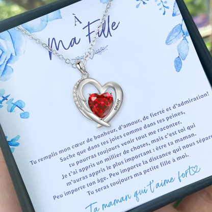 À ma Fille - Collier Cœur 1 Prénom Personnalisé avec 1 Pierre de Naissance