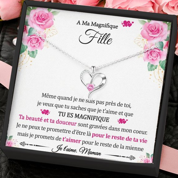 À ma Fille - Collier Prénom Personnalisé Pendentif Cœur avec Pierre de Naissance
