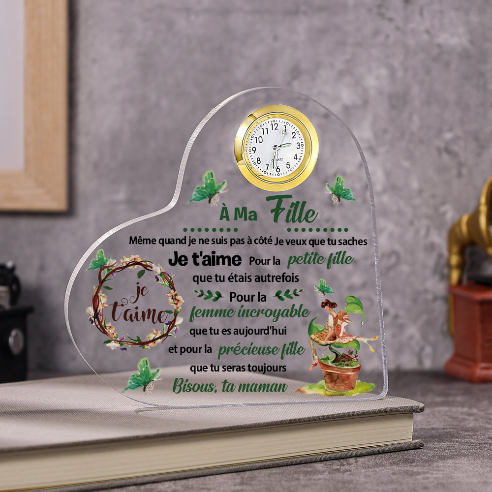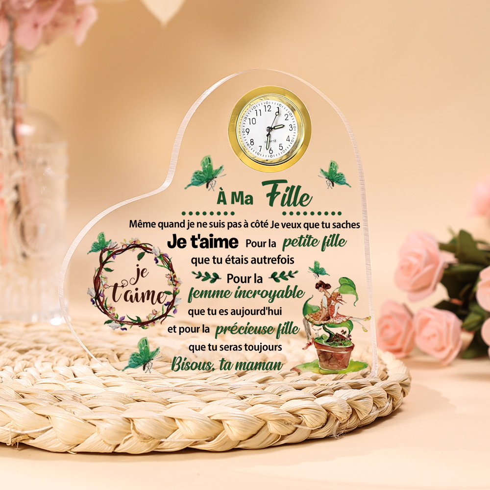 À MA Fille-Plaque Acrylique en Forme de Coeur avec Horloge