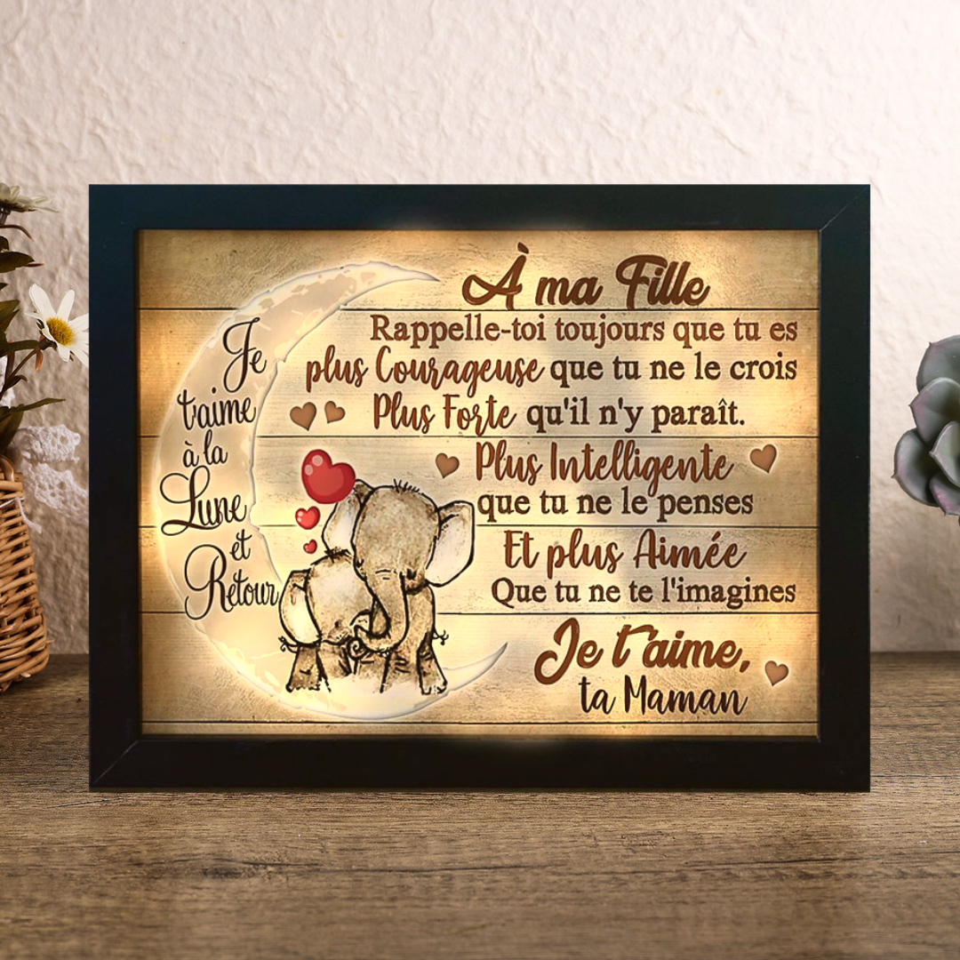 À ma fille - Ta maman - Cadre en bois LED l'éléphant