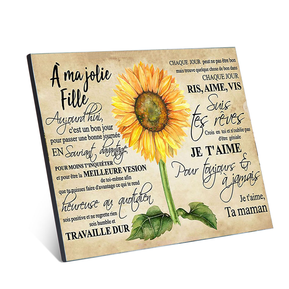 À ma jolie fille - Ta maman - Cadre en bois tournesol