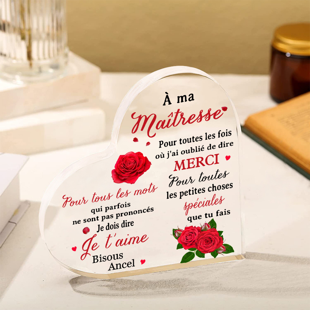 À Ma Maîtresse -Plaque Acrylique en Forme de Cœur 1 Prénom Personnalisé