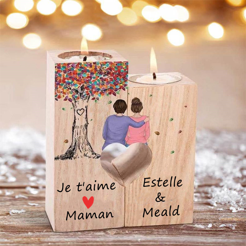 A Ma Maman - Bougeoirs en Bois sans bougie 2 Prénom Personnalisé