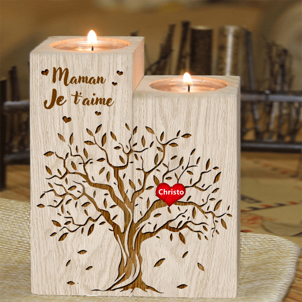 À Ma Maman - Bougeoirs en Bois sans bougie Arbre de vie Arbre généalogique 1 Prénom Personnalisé