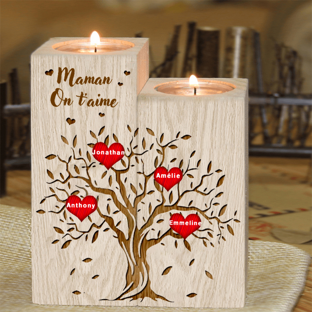 À Ma Maman - Bougeoirs en Bois sans bougie Arbre de vie Arbre généalogique 4 Prénoms Personnalisé