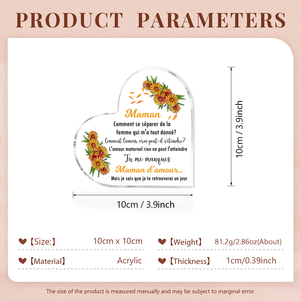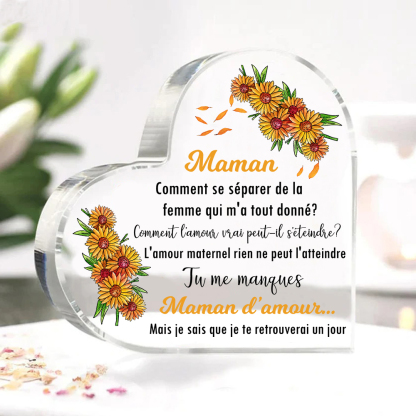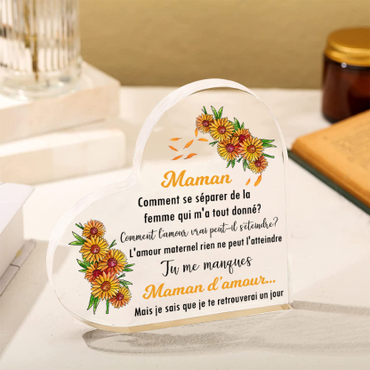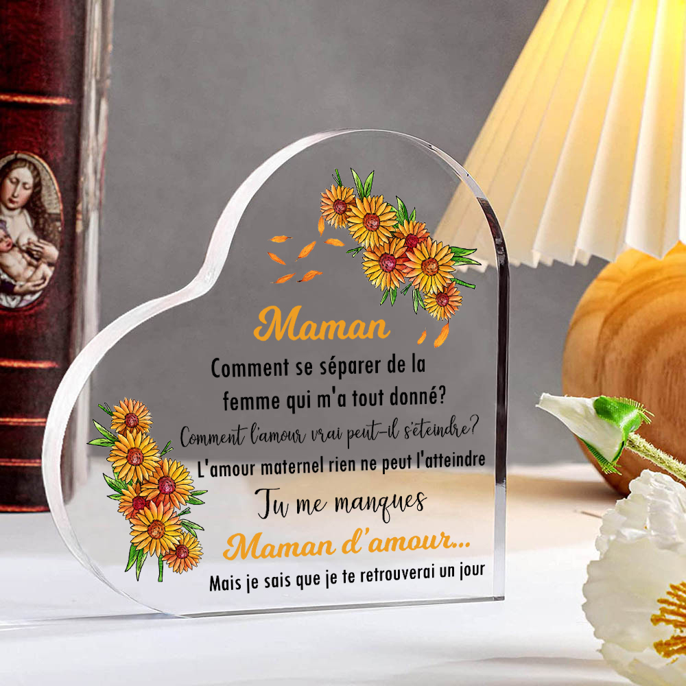 À Ma Maman-Plaque Acrylique Commémorative en Forme de Cœur Plaque Funéraire