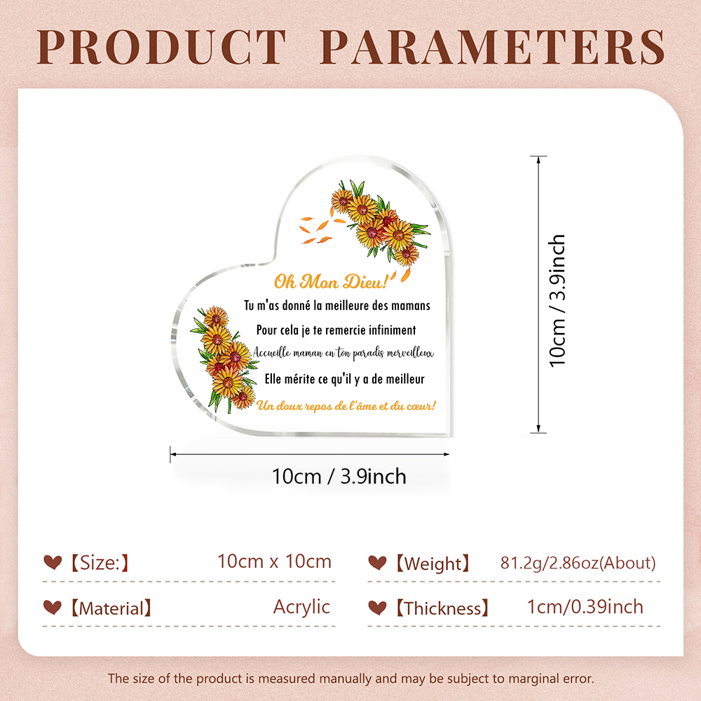 À Ma Maman-Plaque Acrylique Commémorative en Forme de Cœur Plaque Funéraire