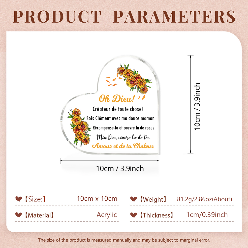 À Ma Maman-Plaque Acrylique Commémorative en Forme de Cœur Plaque Funéraire
