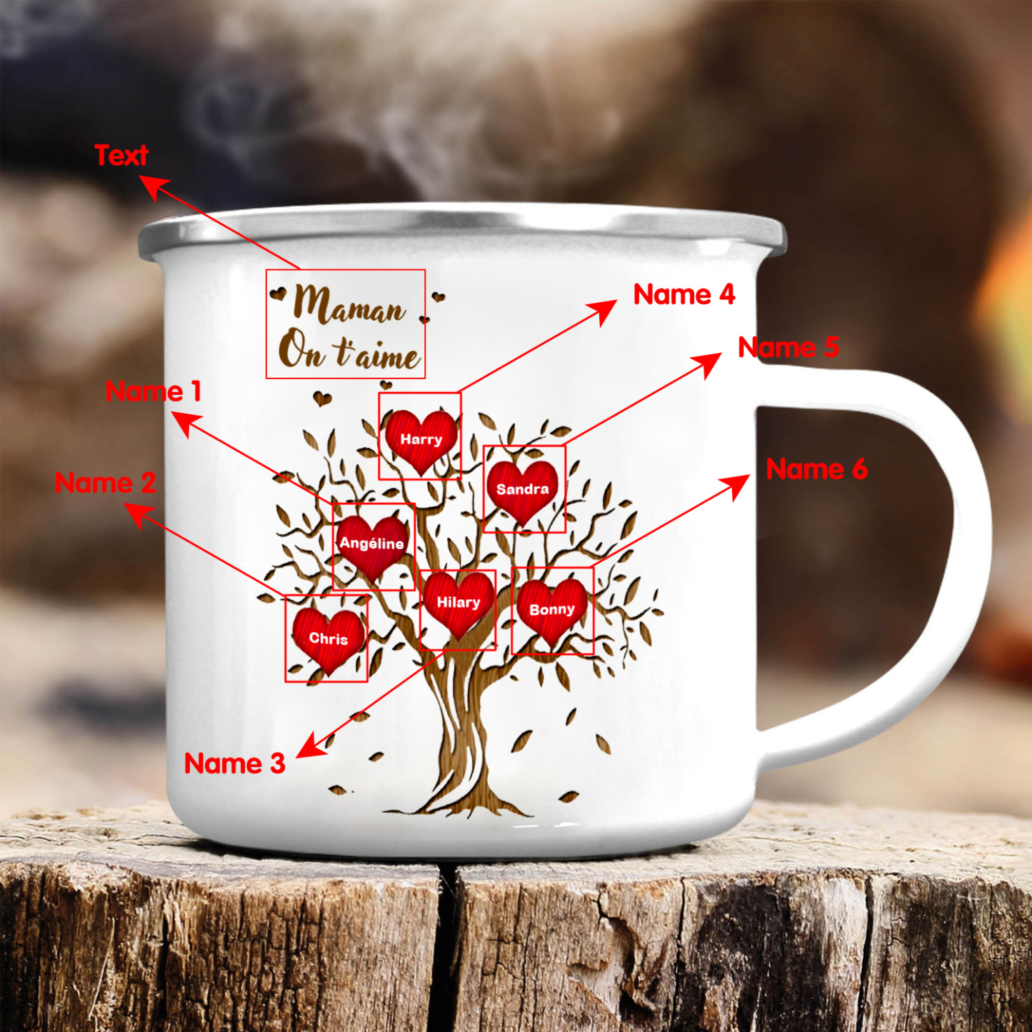 À Ma Maman/Mamie - Tasse émaillée d'Arbre de vie 6 Prénoms Personnalisés