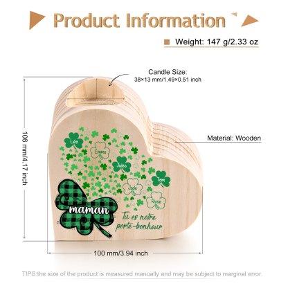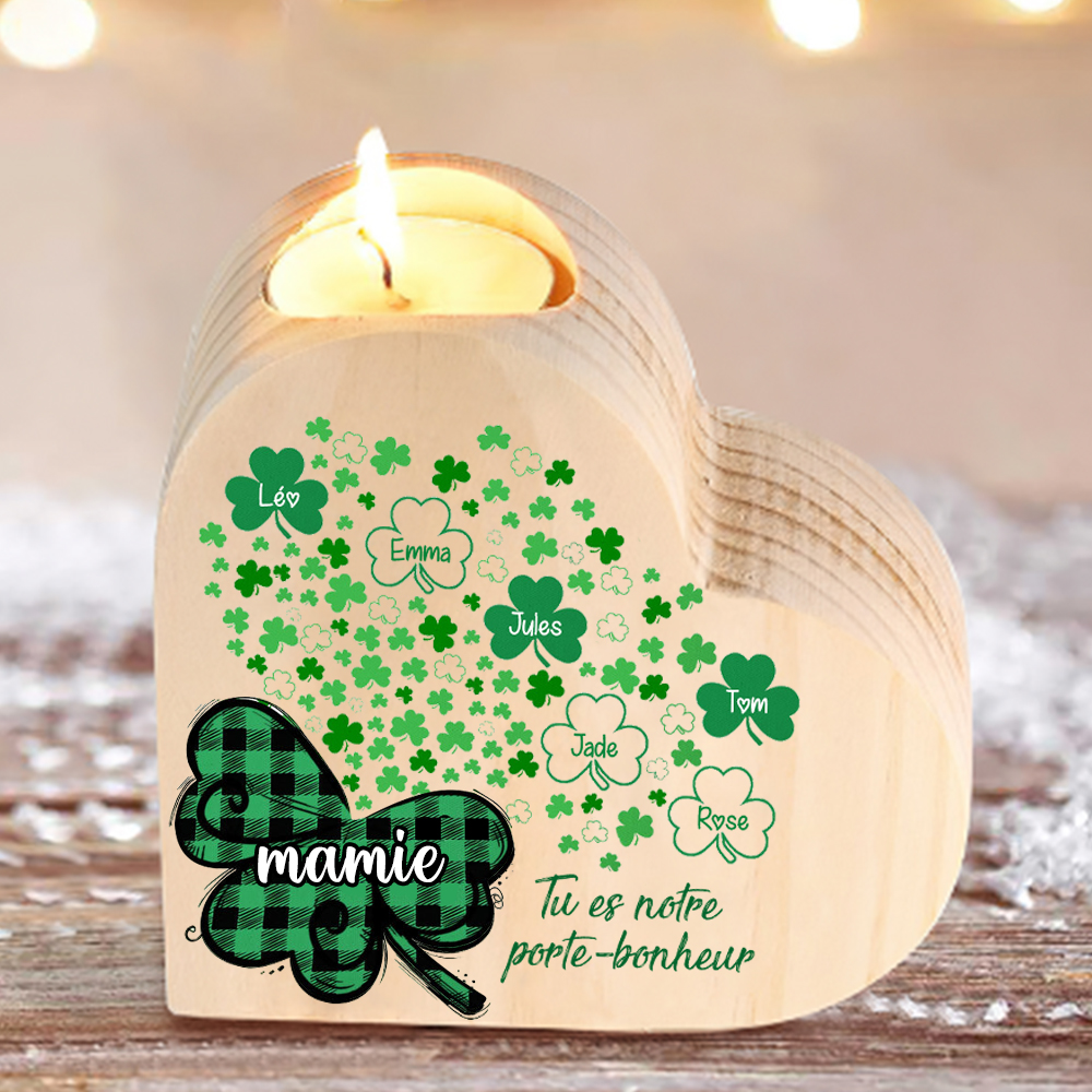 À Ma Mamie/Maman - Bougeoir en Bois feuille sans bougie 6 Prénoms Personnalisé avec texte