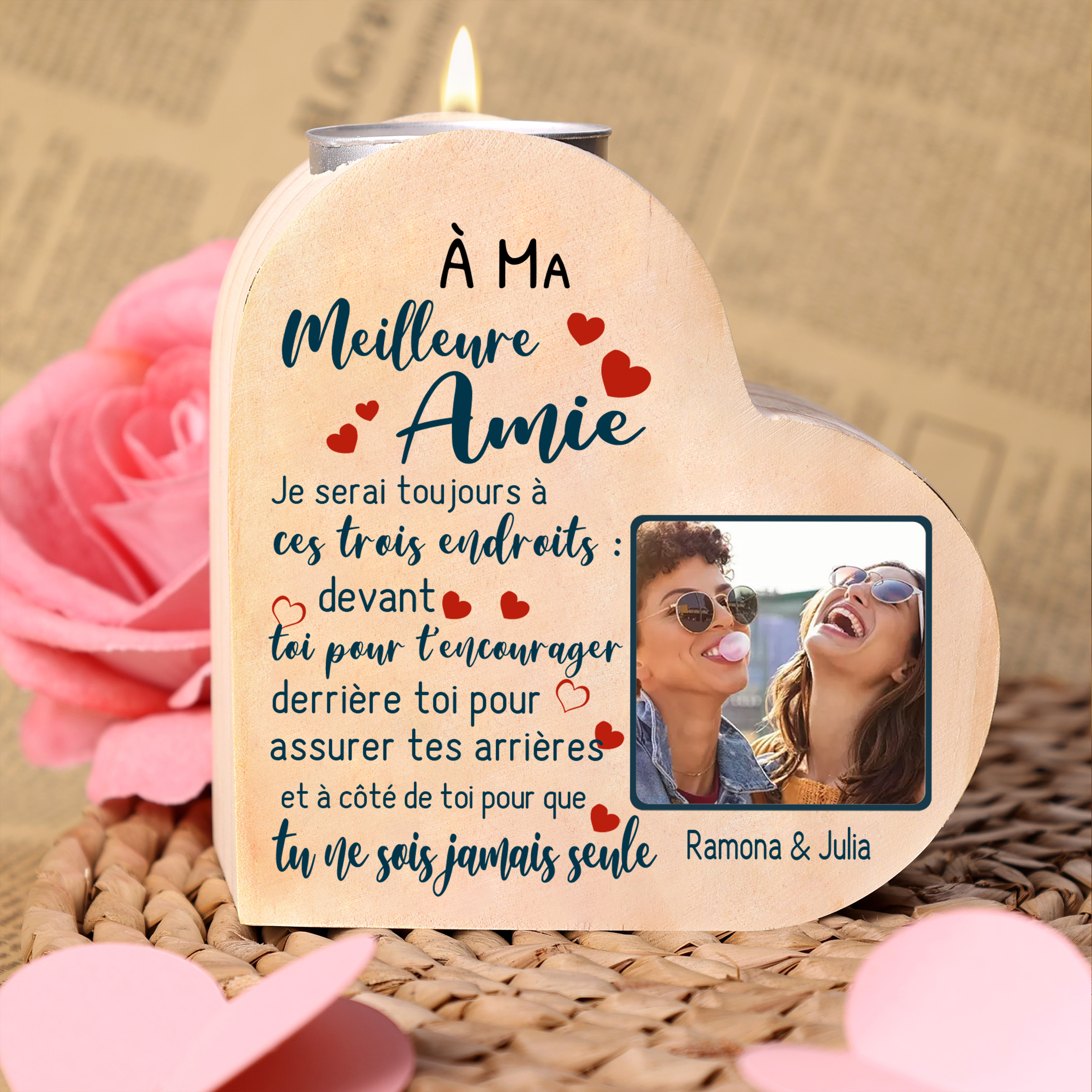 À Ma Meilleure Amie-Bougeoir en Bois sans bougie 2 Prénoms Personnalisés avec Photo