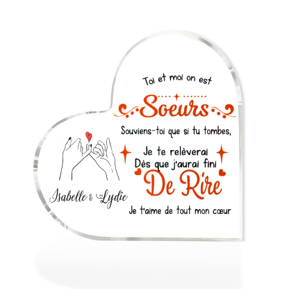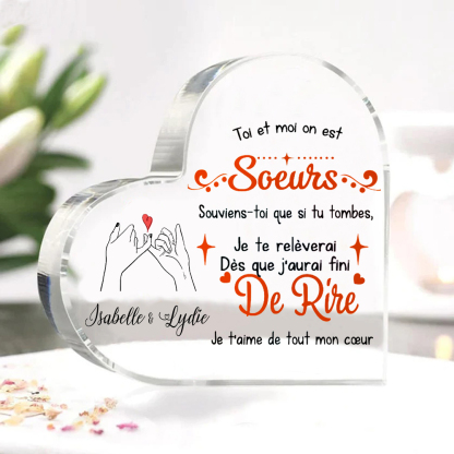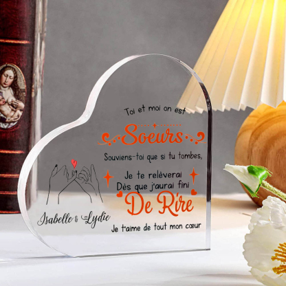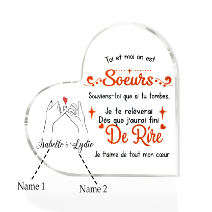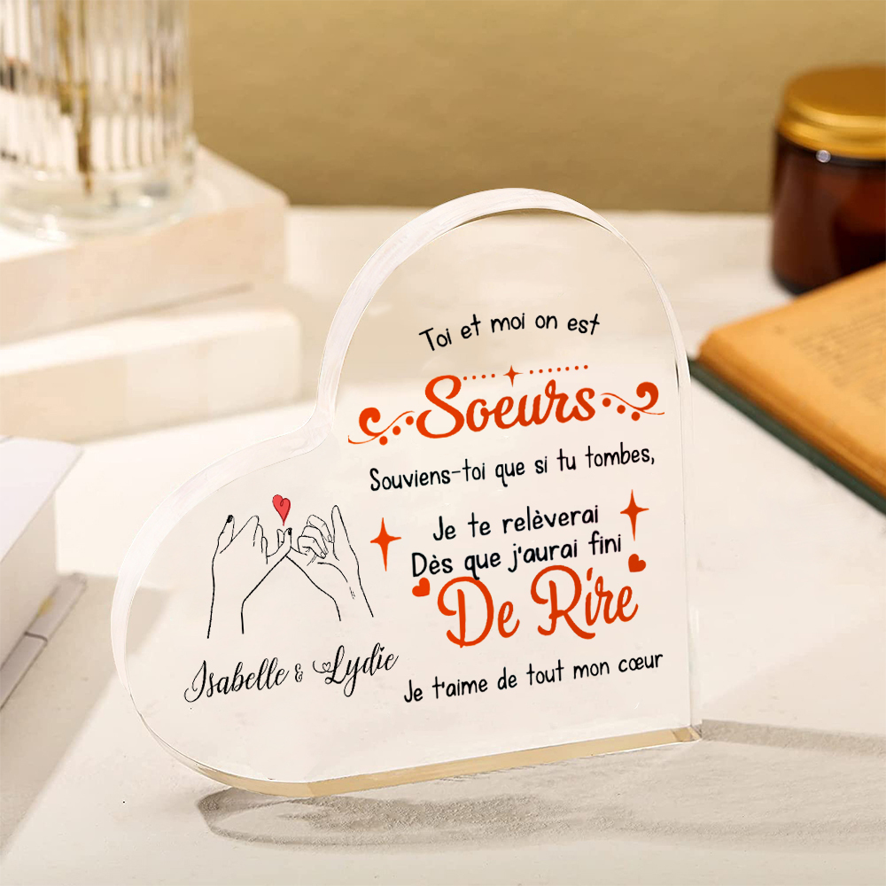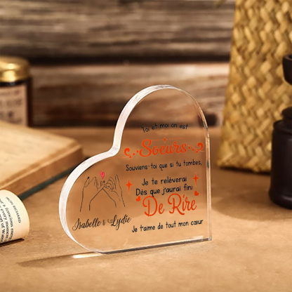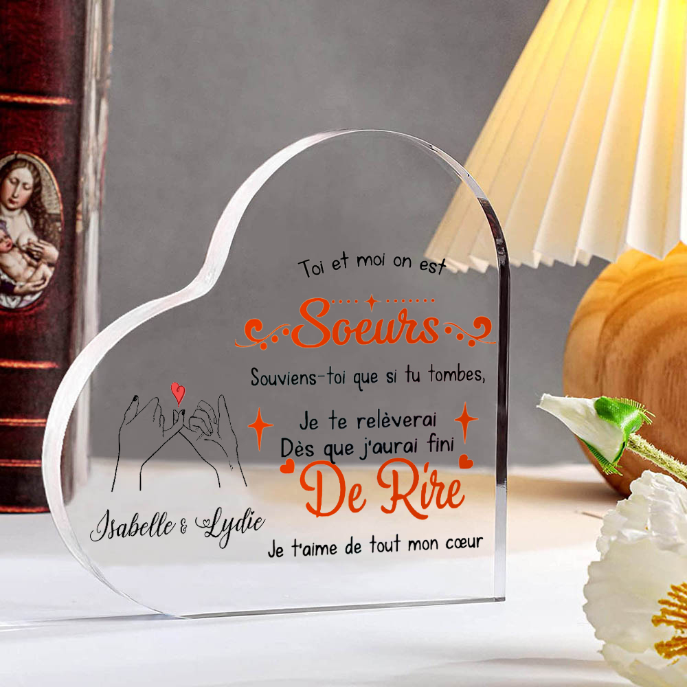 À Ma Meilleure Amie-Plaque Acrylique en Forme de Cœur 2 Prénoms Personnalisés