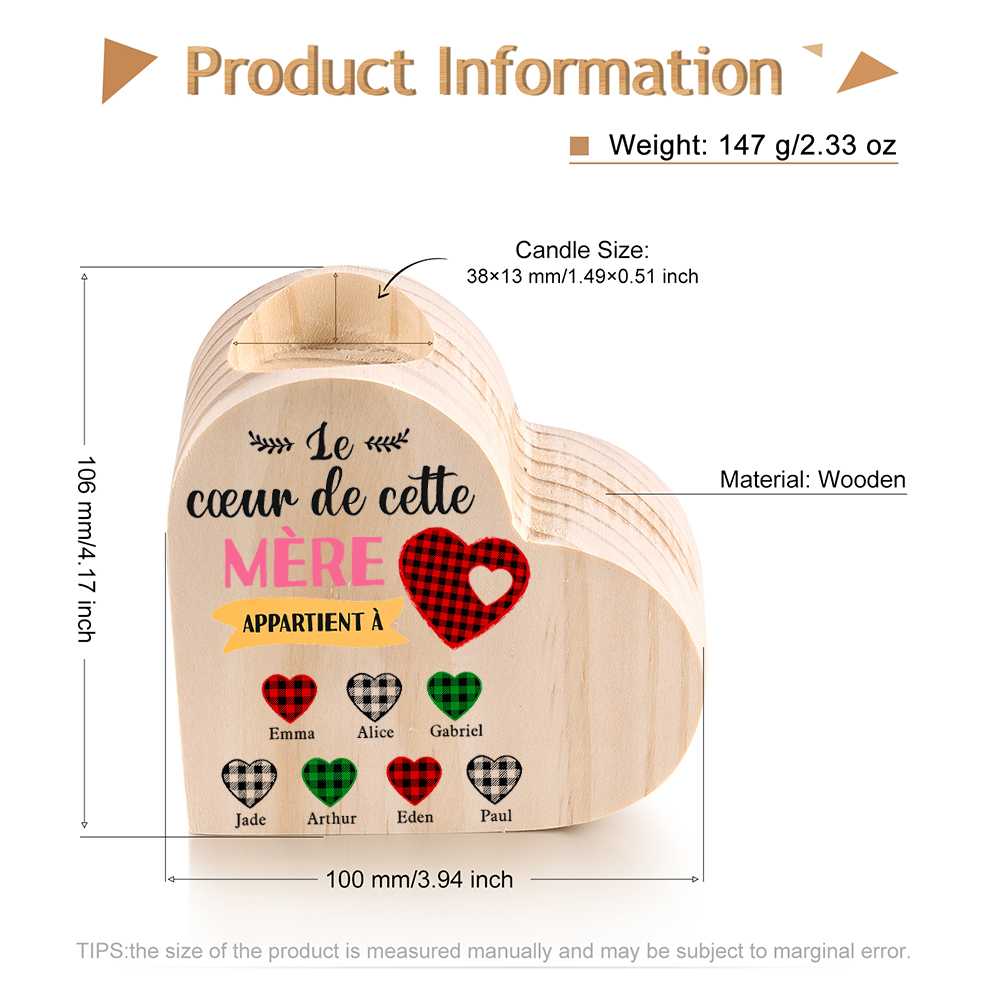 À Ma Mère - Bougeoir en Bois sans bougie 7 Prénoms Personnalisé