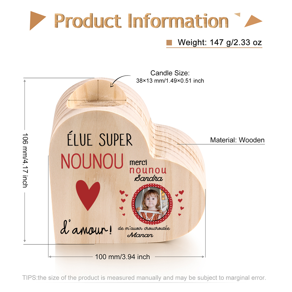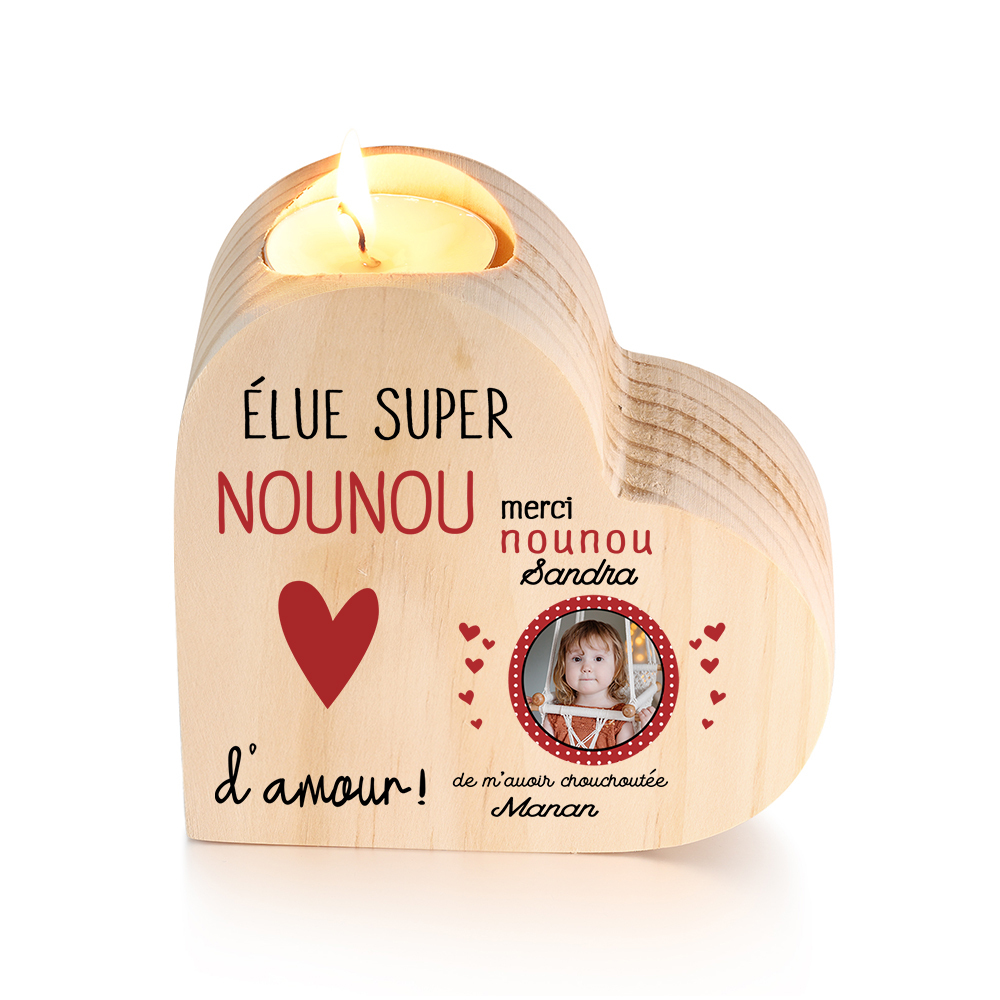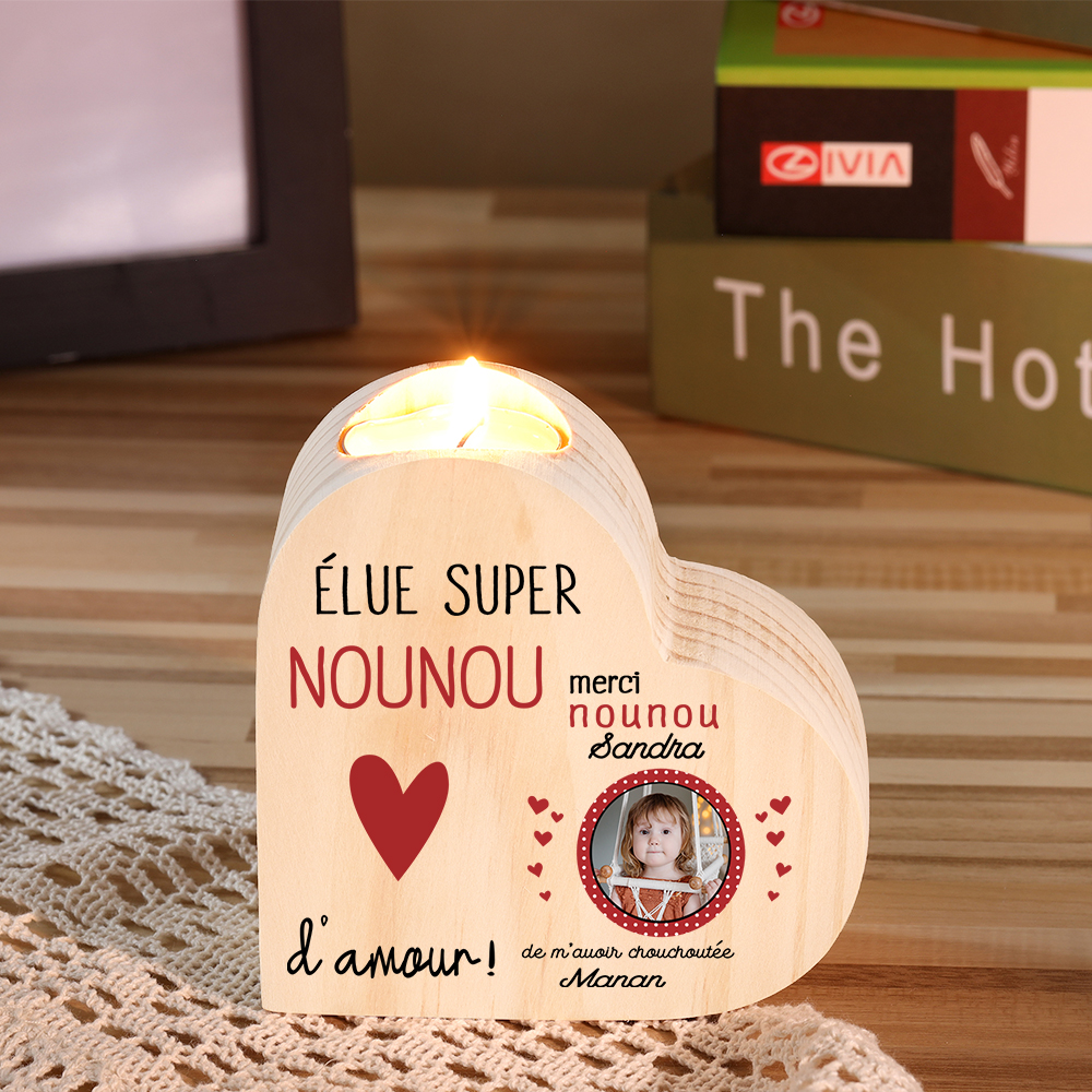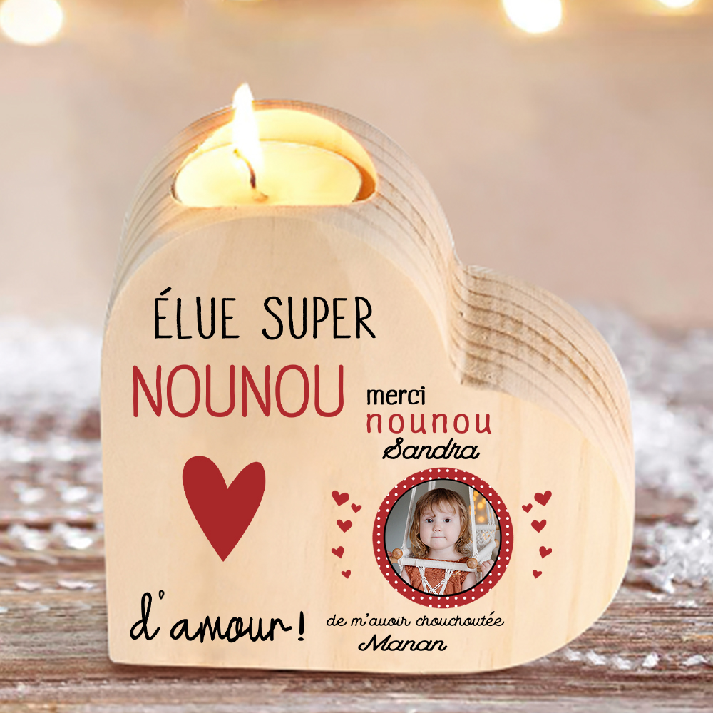 À Ma Nounou - Bougeoir en Bois sans Bougie 2 Prénoms Personnalisés avec photo
