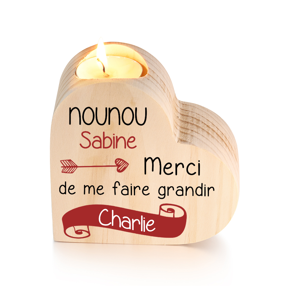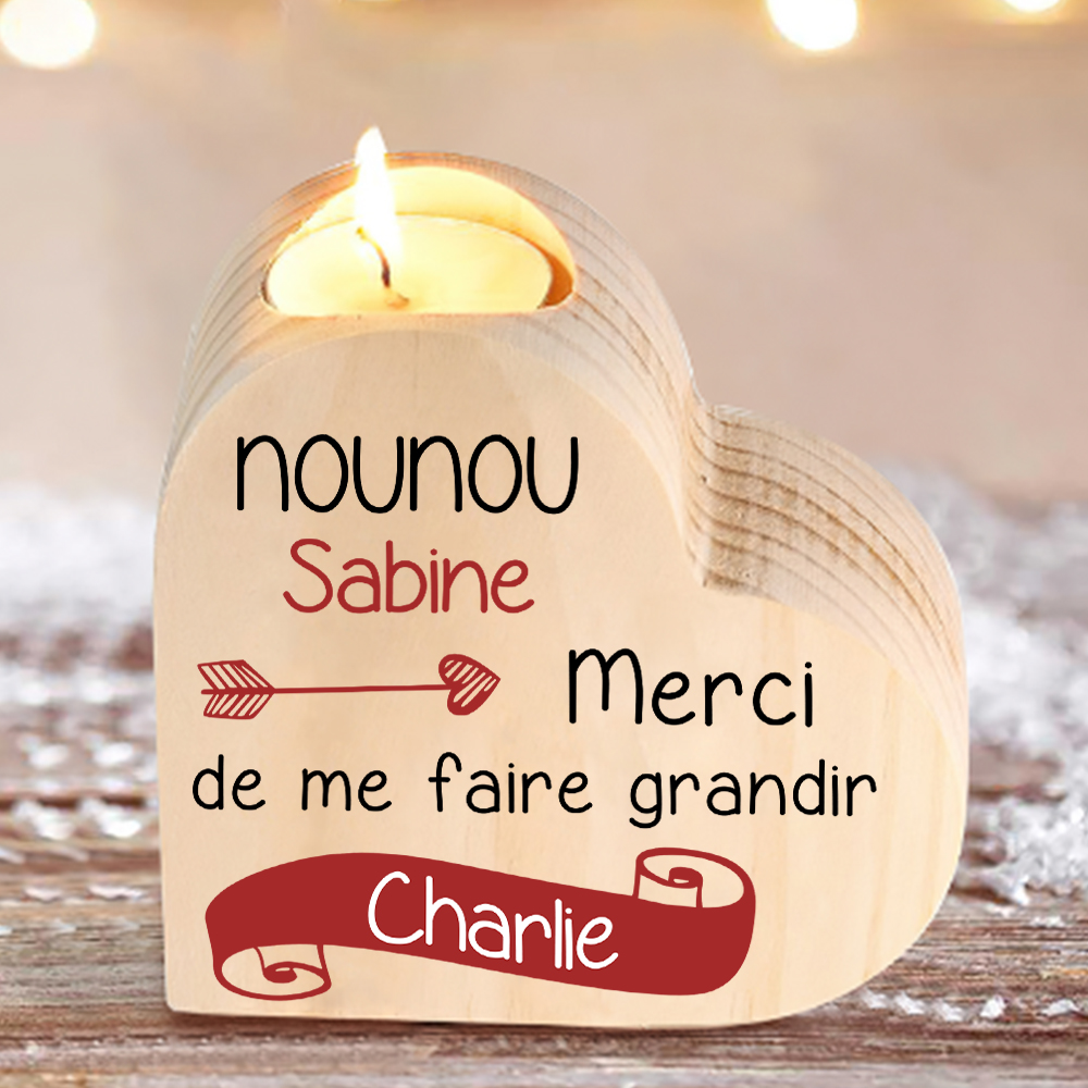 À Ma Nounou - Bougeoir en Bois sans bougie 2 Prénoms Personnalisés