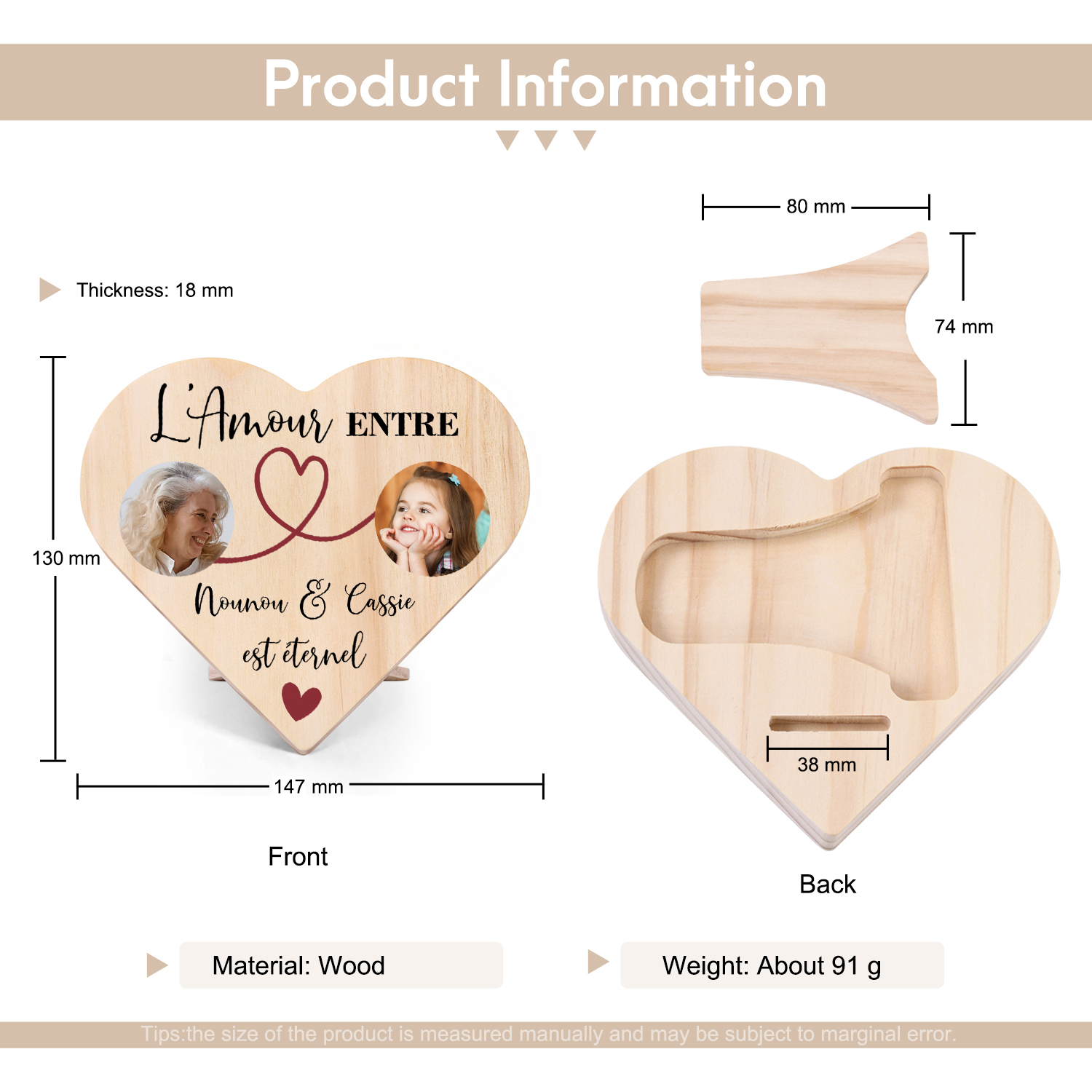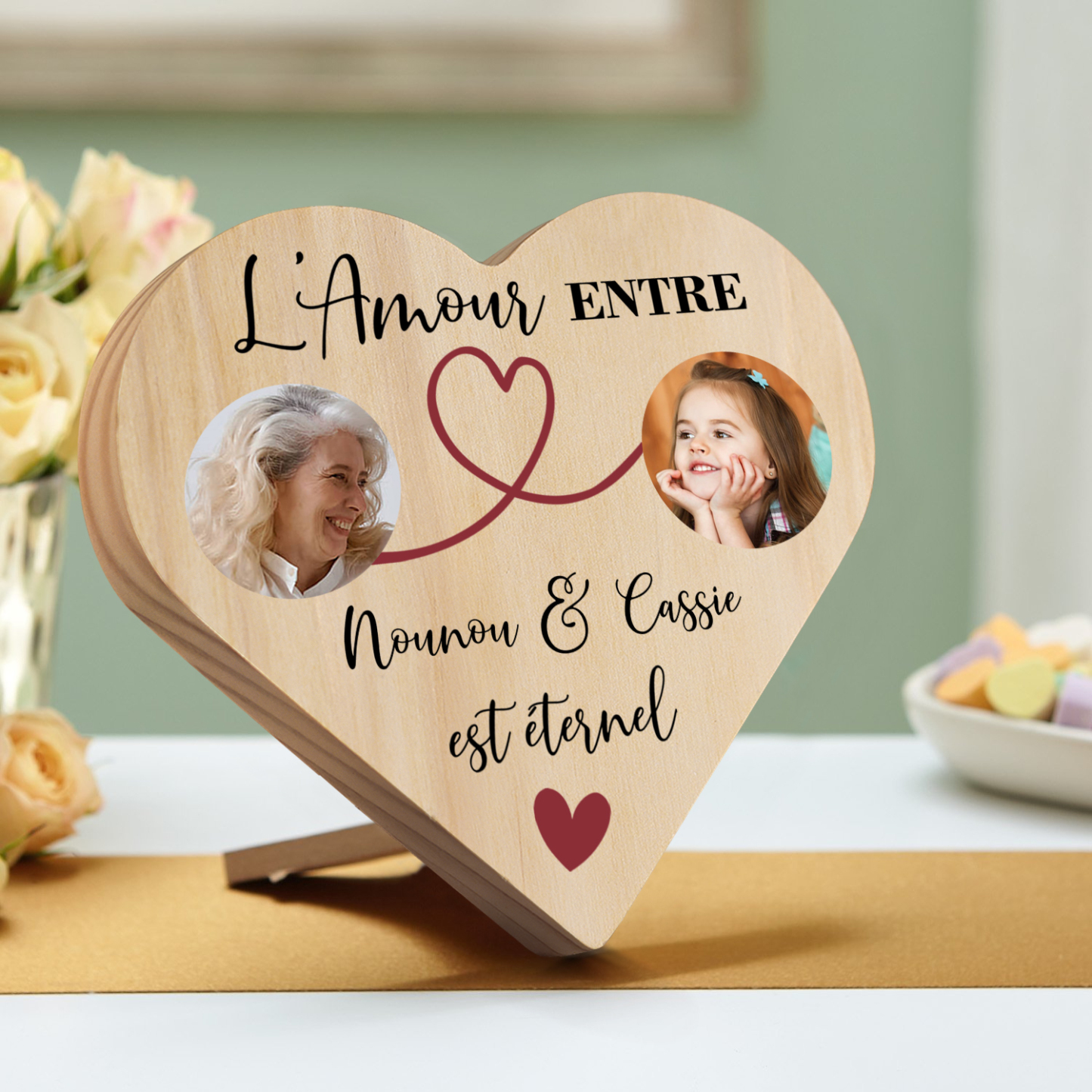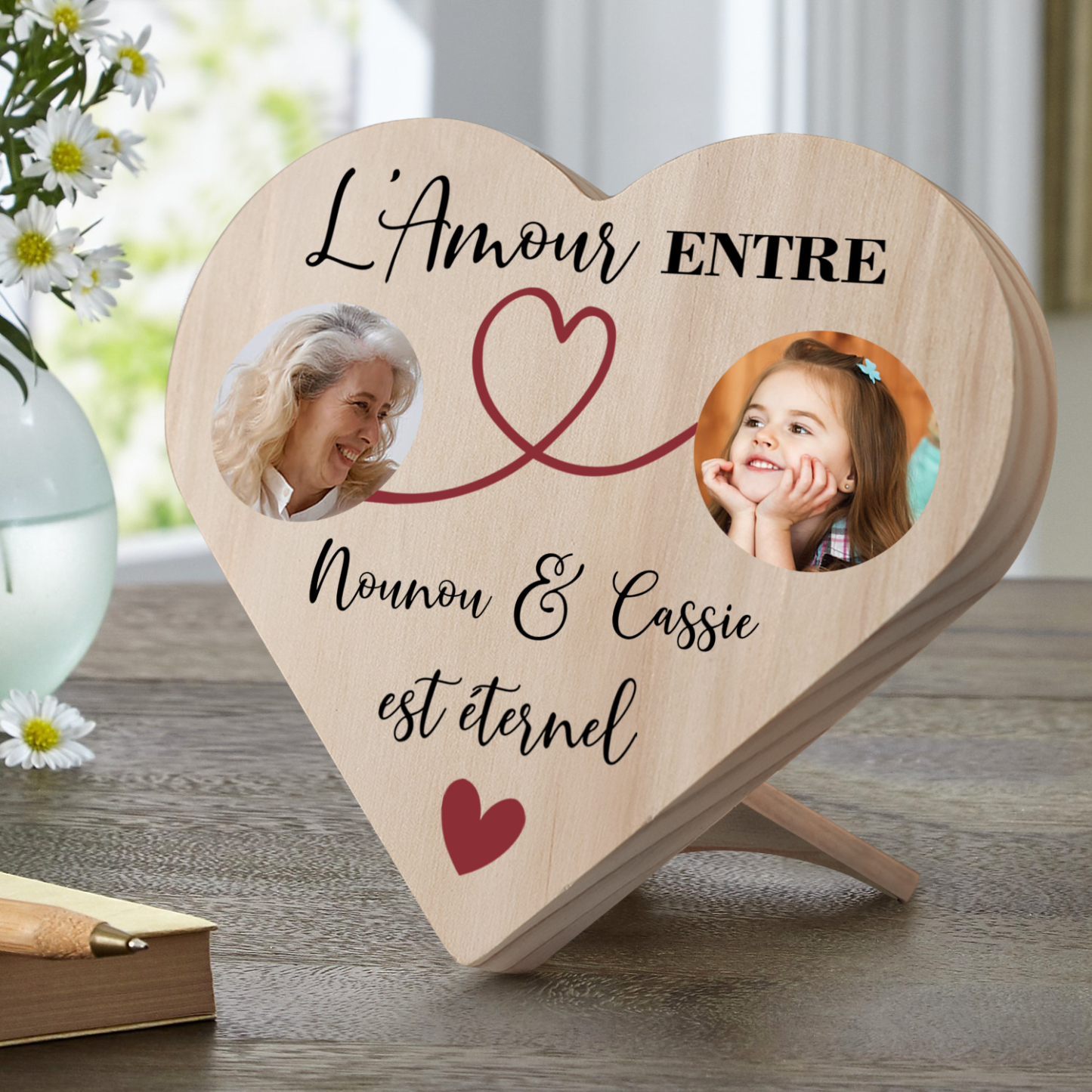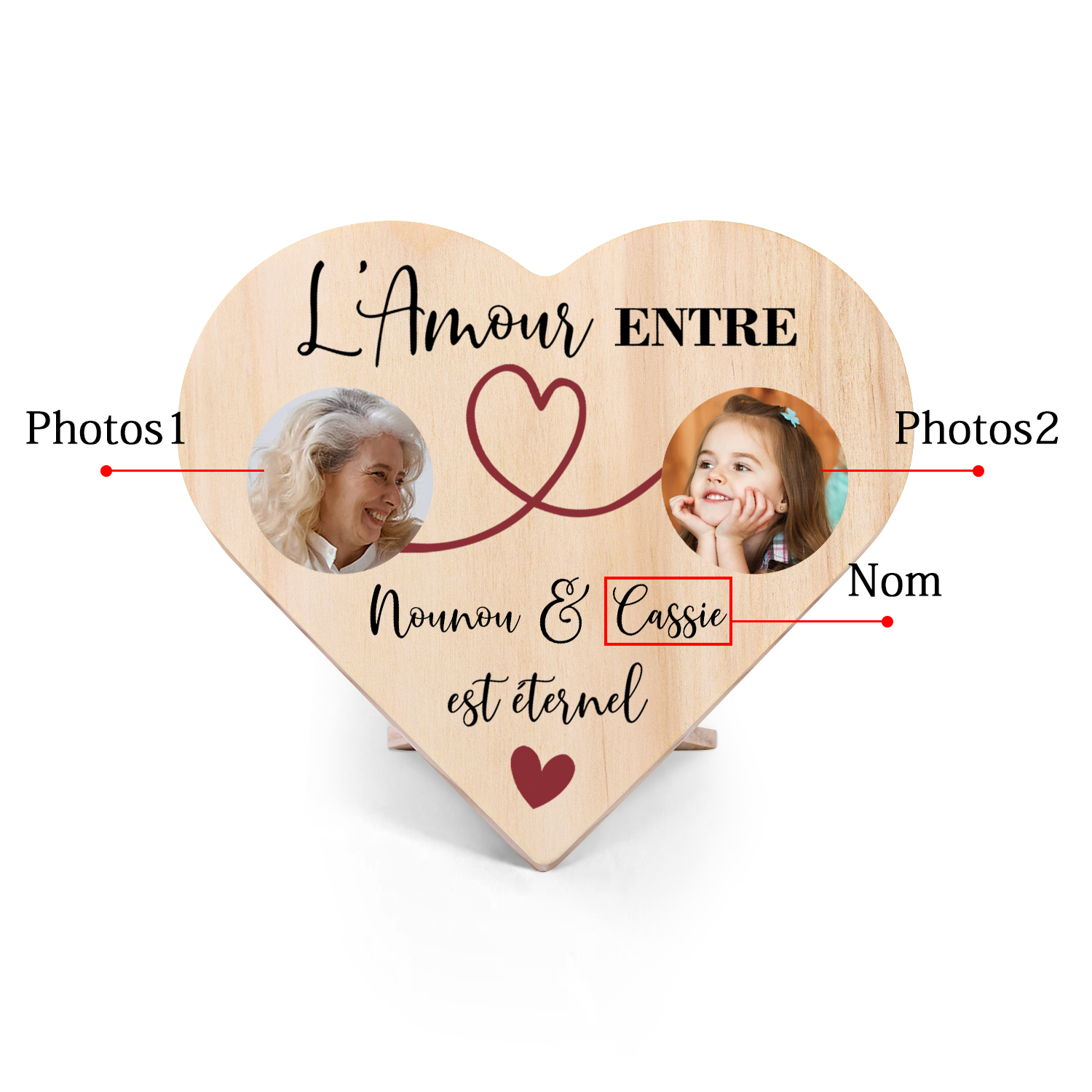 À ma Nounou- Décoration En Bois Graver 2 Photos Personnalisées