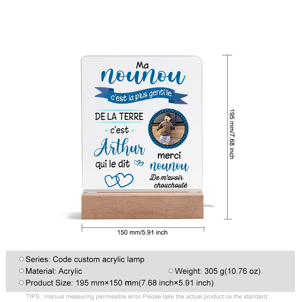 À Ma Nounou - Lampe de Chevet LED 1 Prénom Personnalisé avec Photo