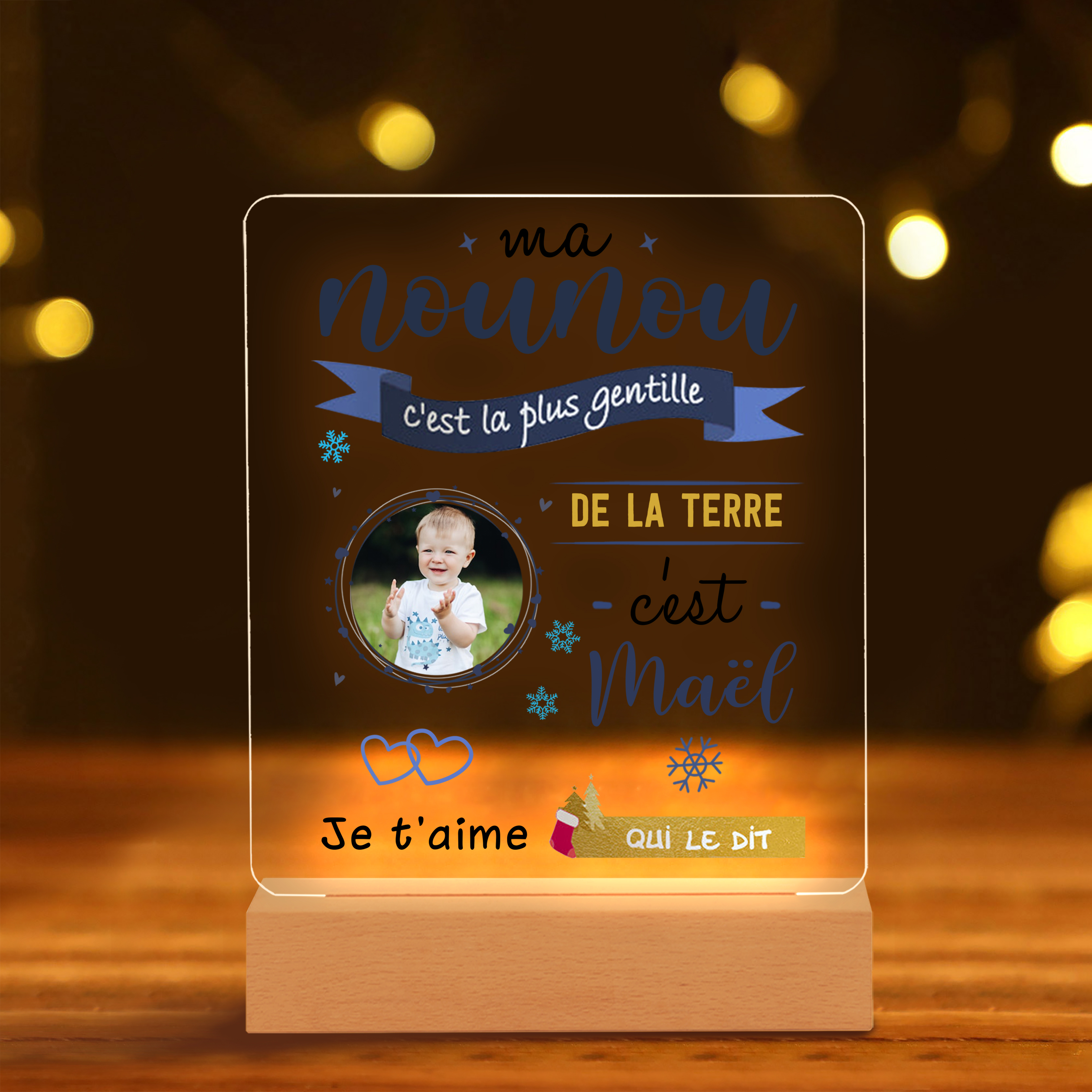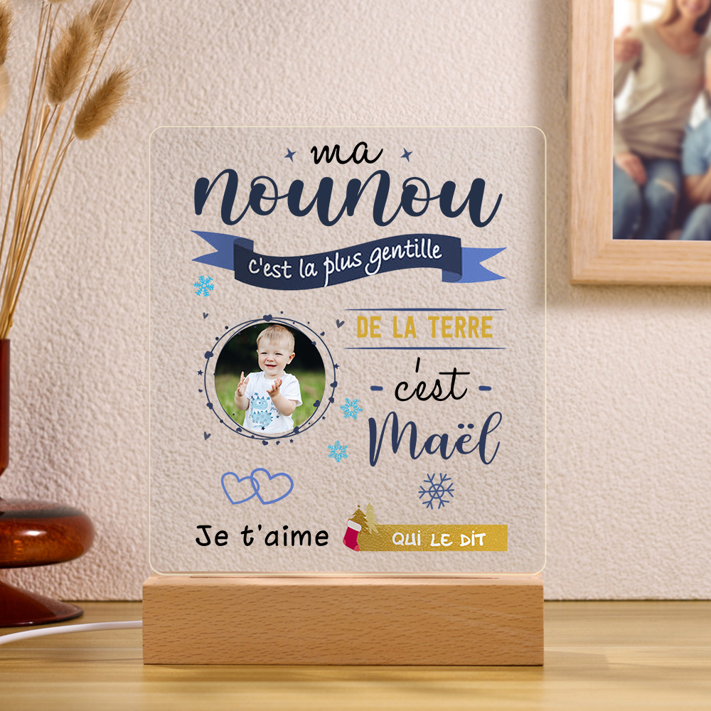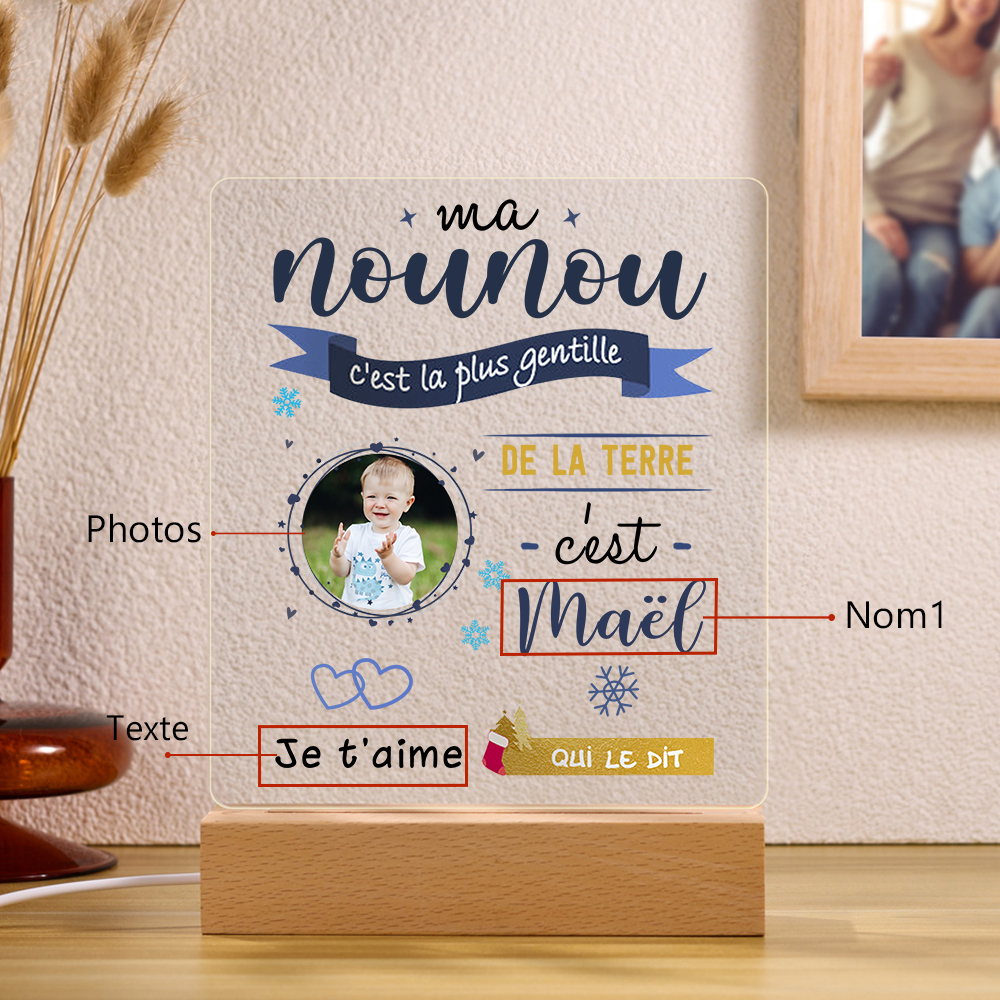 À Ma Nounou - Lampe de Chevet LED 1 Prénom Personnalisé avec Photo et Texte