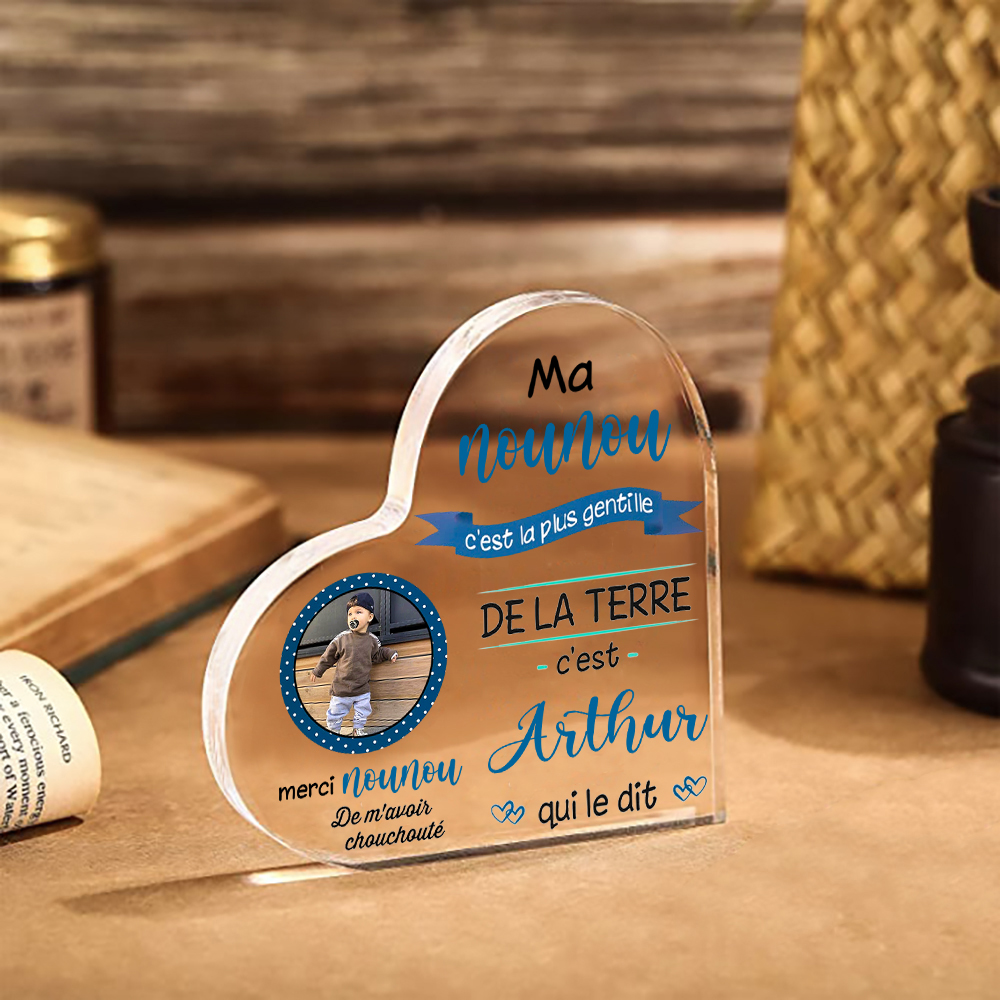 À Ma Nounou-Plaque Acrylique en Forme de Cœur 1 Prénom Personnalisé avec Photo