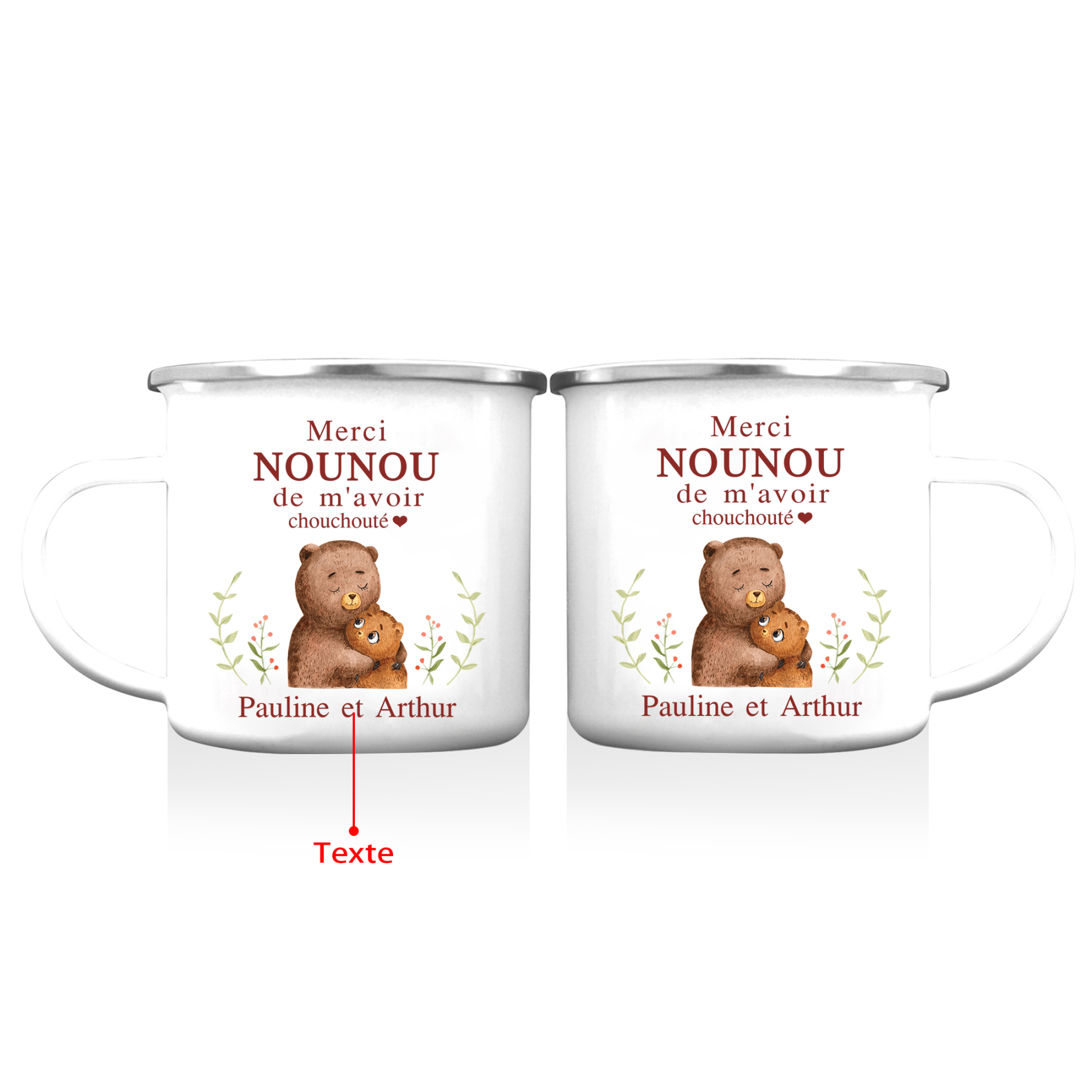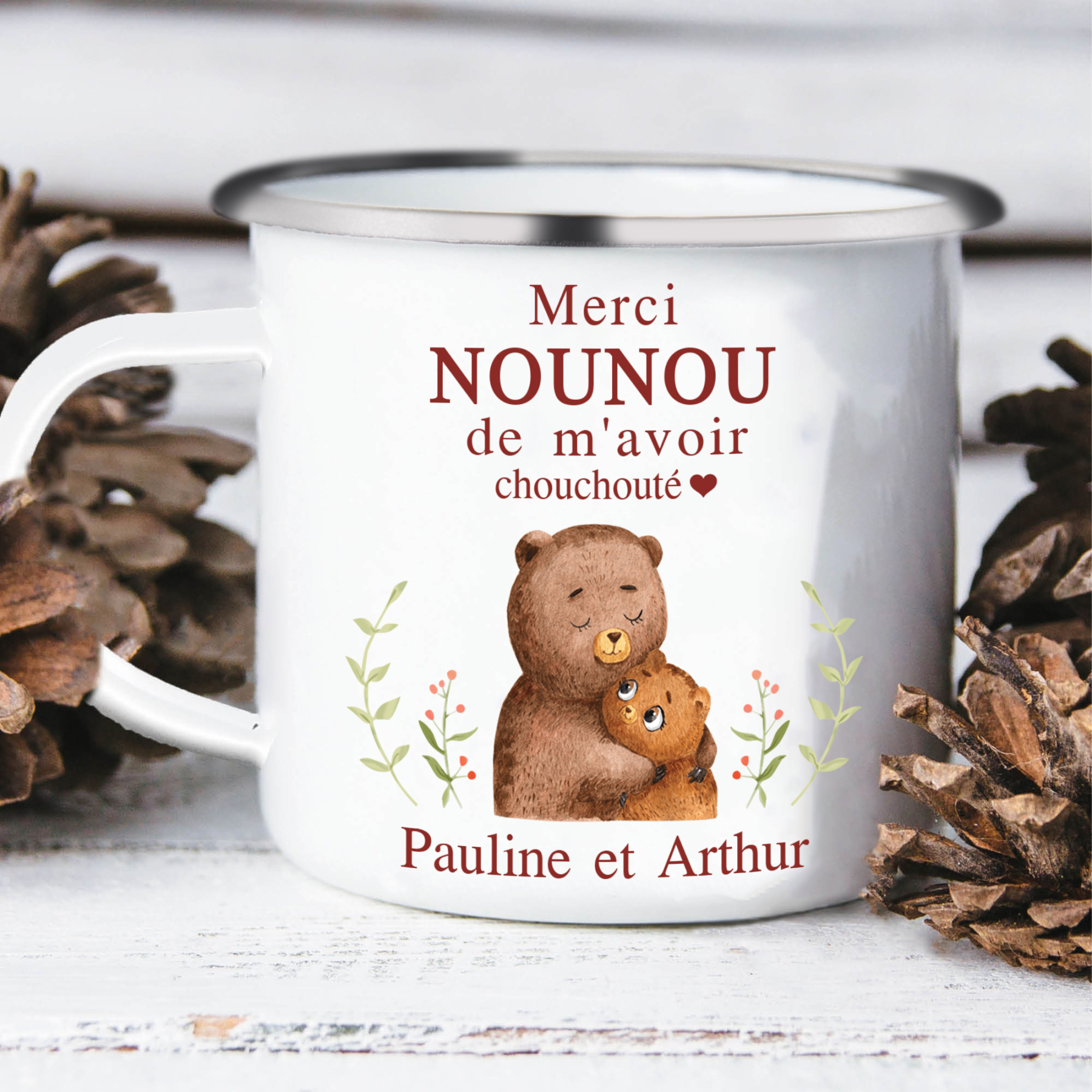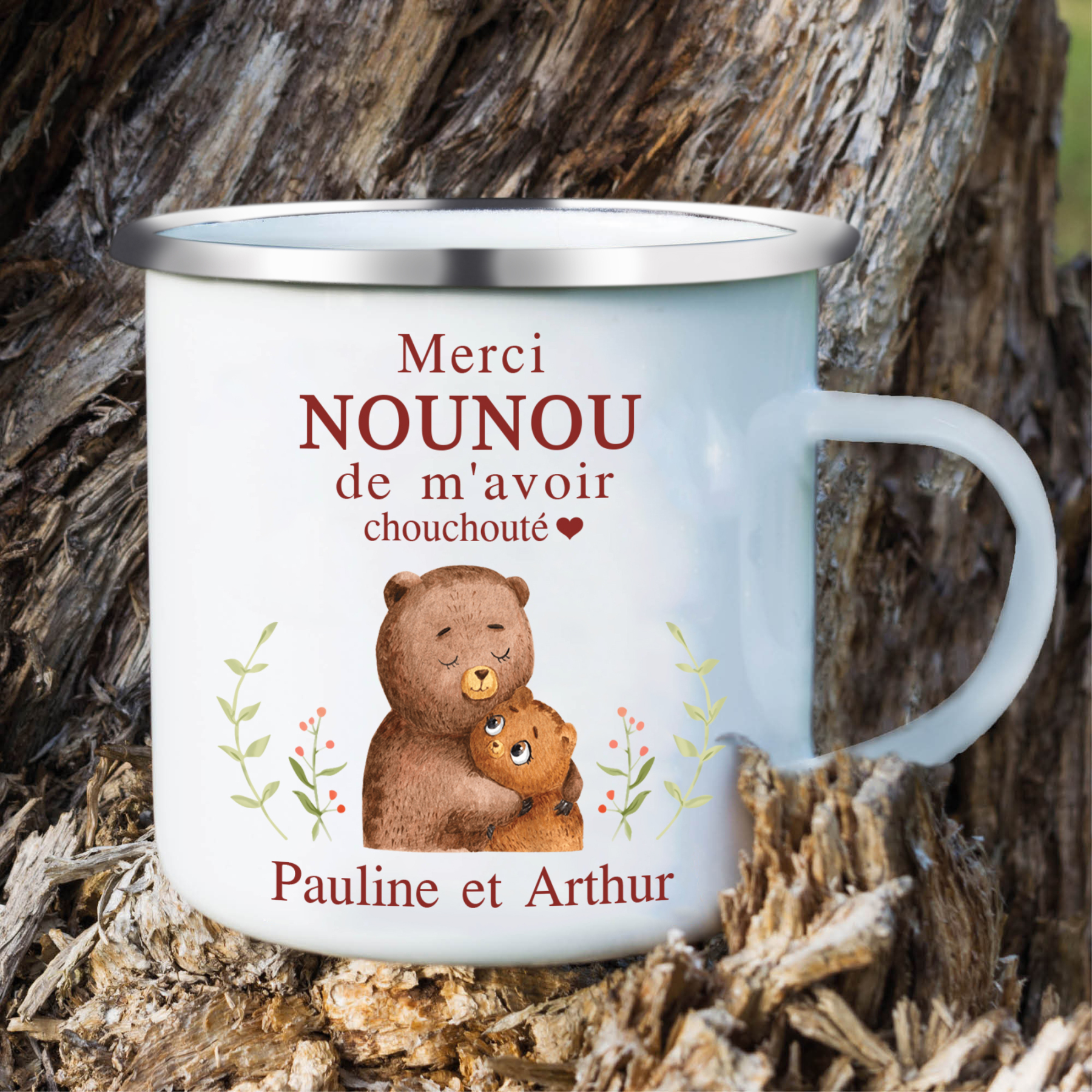 À Ma Nounou - Tasse émaillée Ours Texte Personnalisé