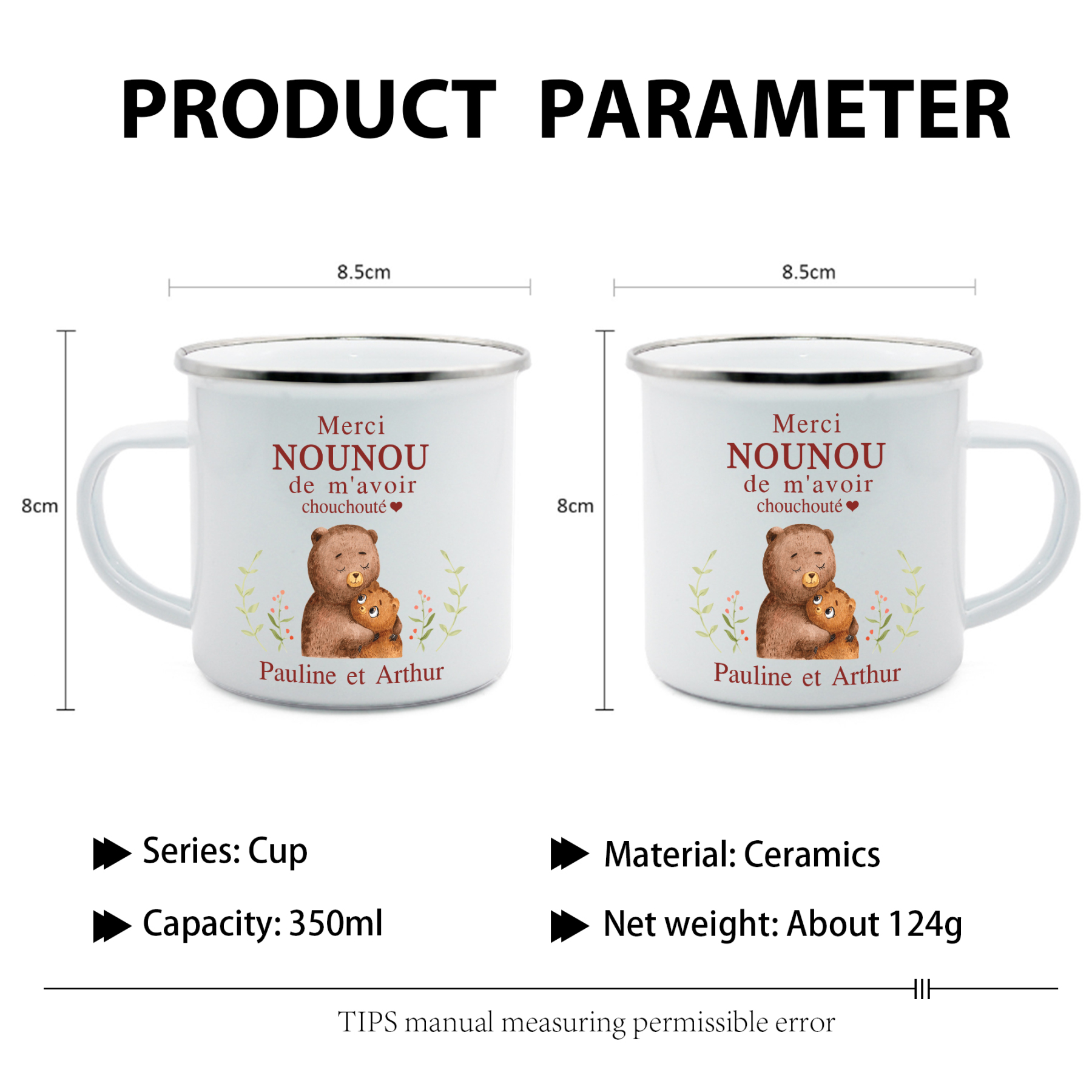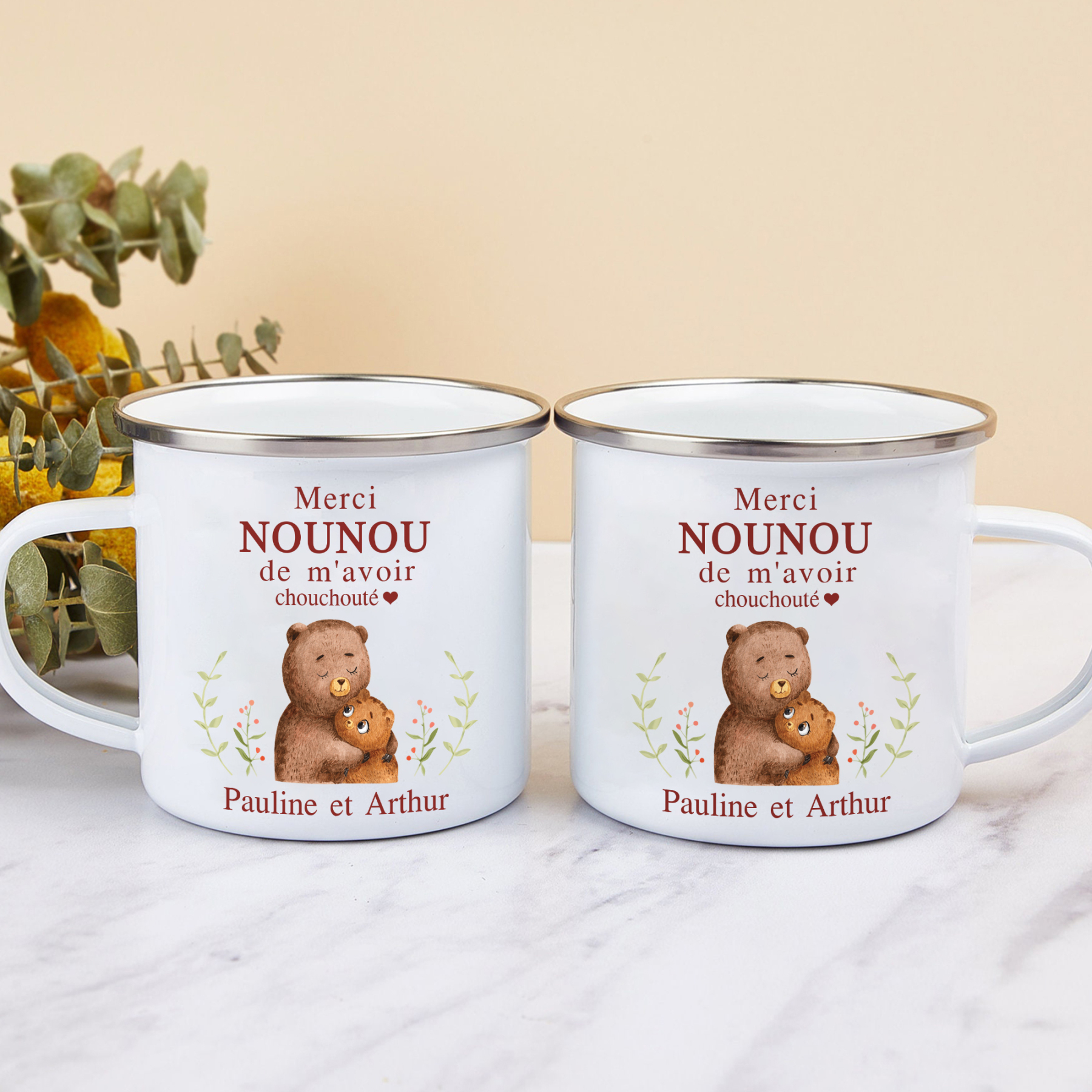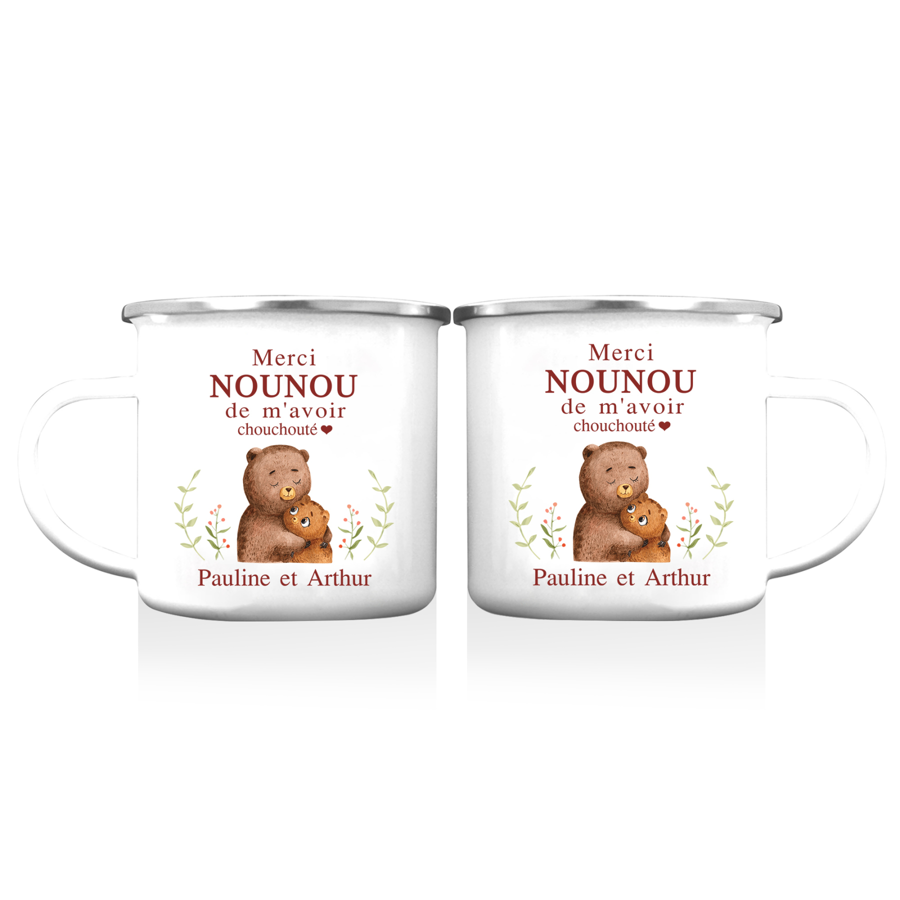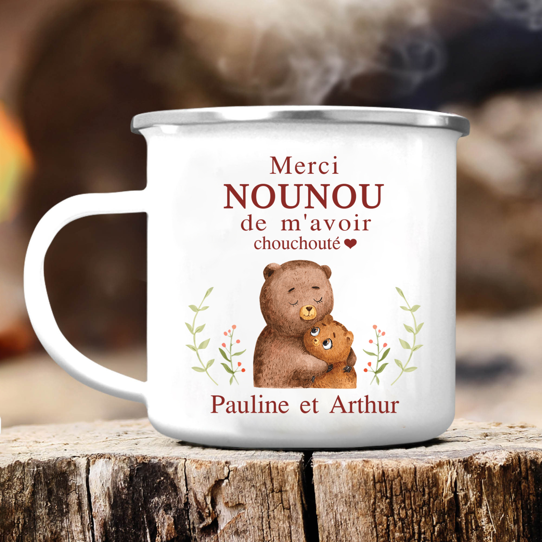 À Ma Nounou - Tasse émaillée Ours Texte Personnalisé