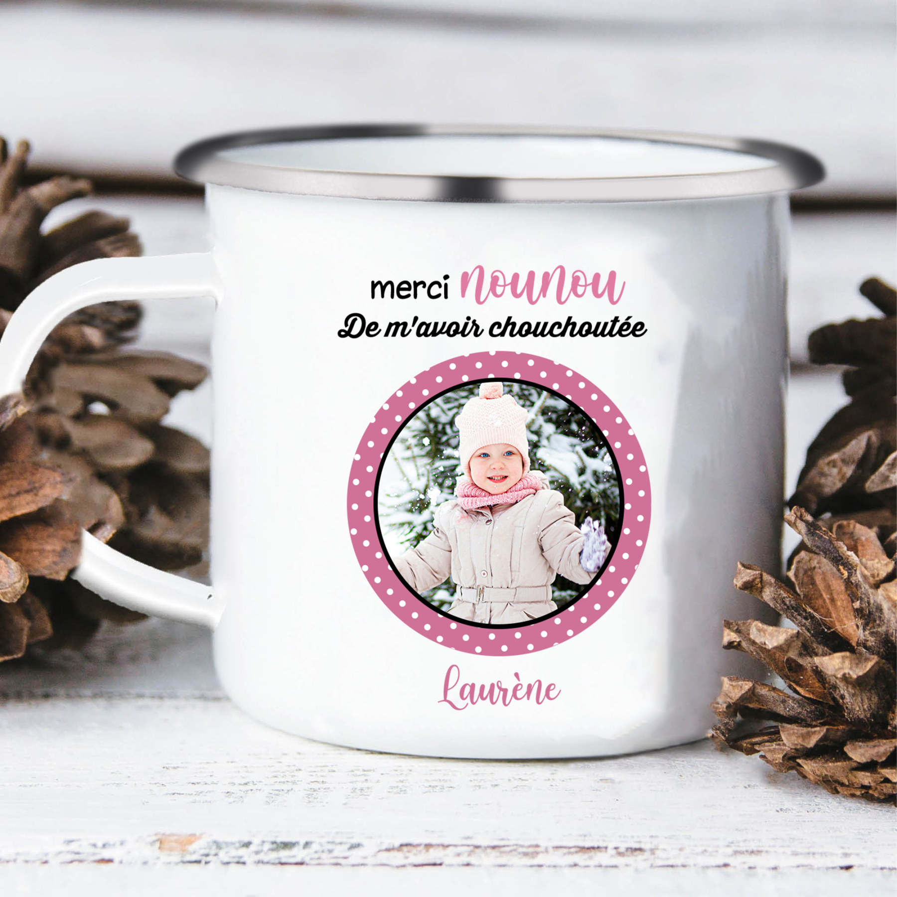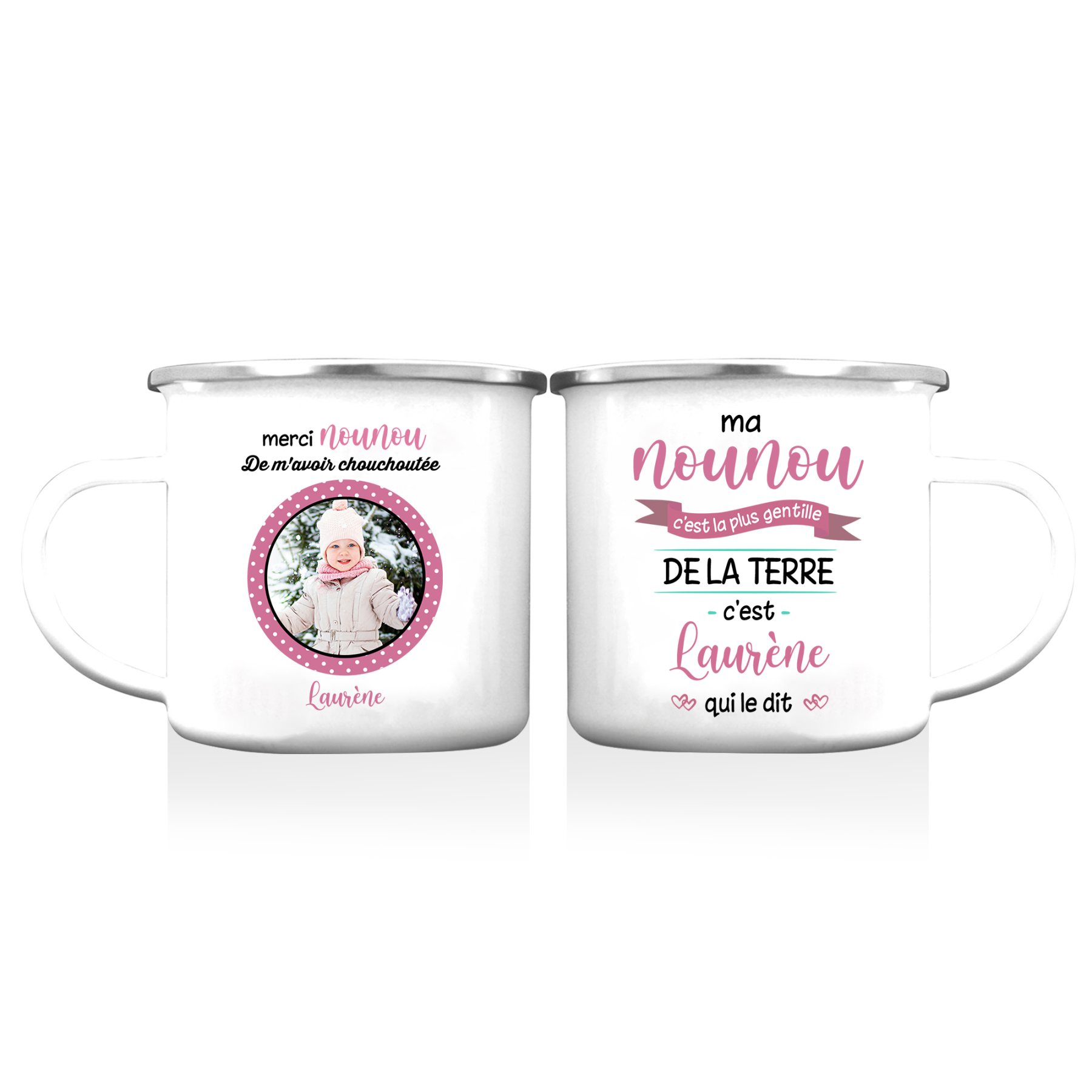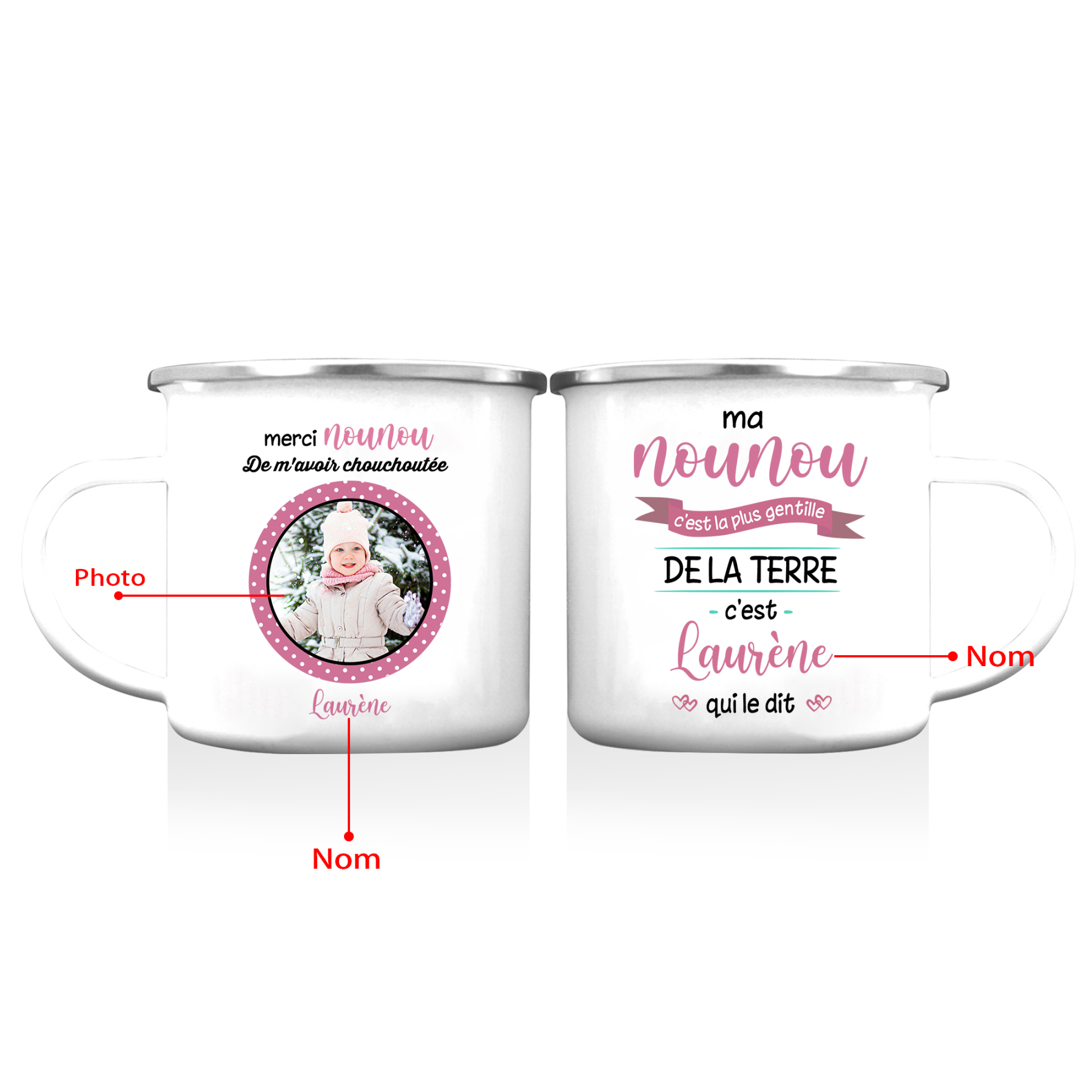 À Ma Nounou - Tasse émaillée Prénom et Photo Personnalisés