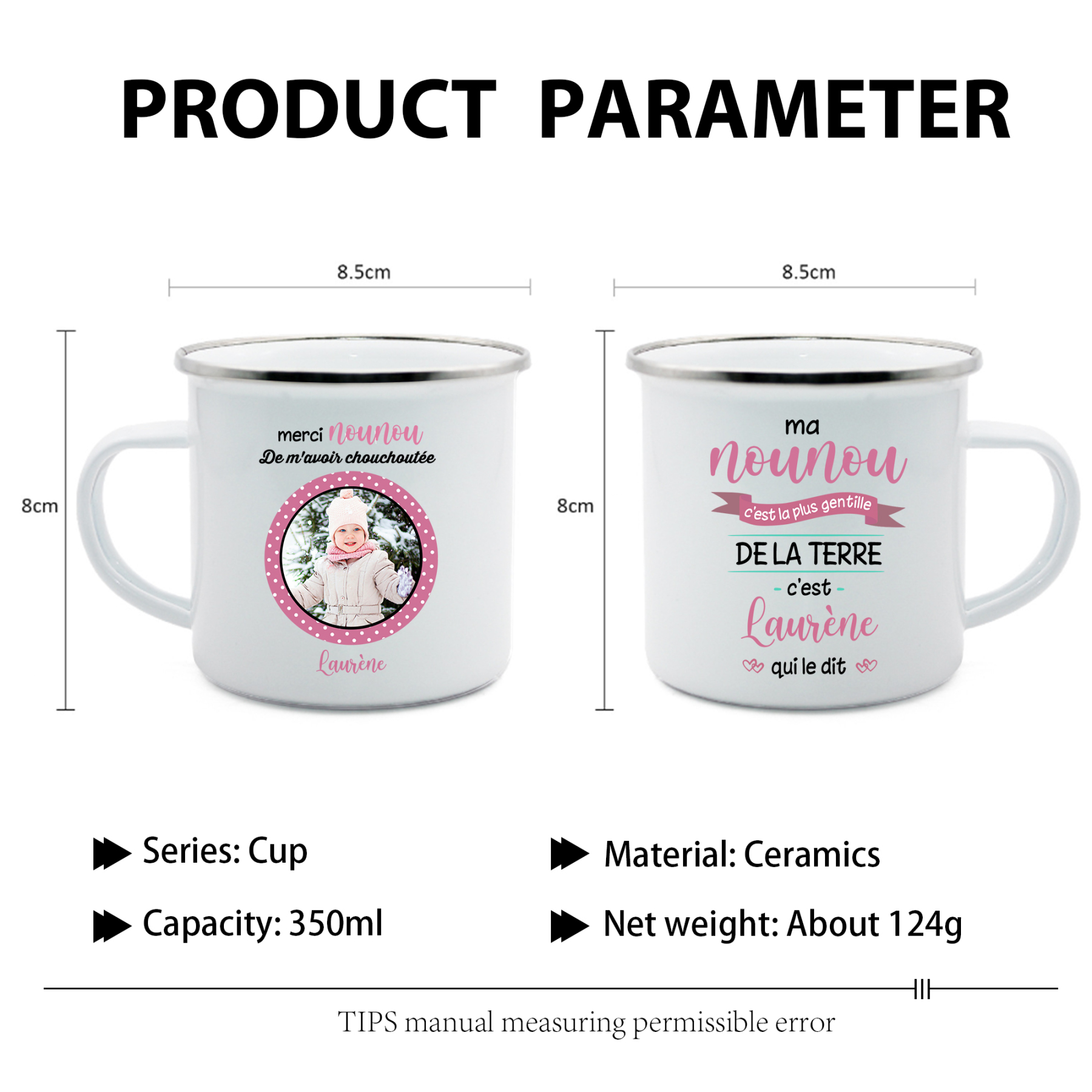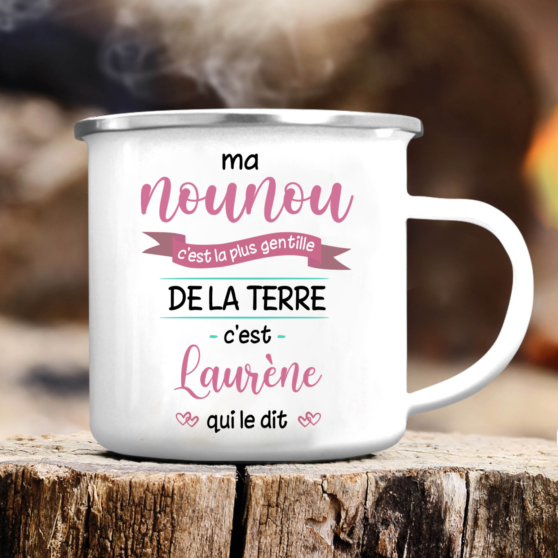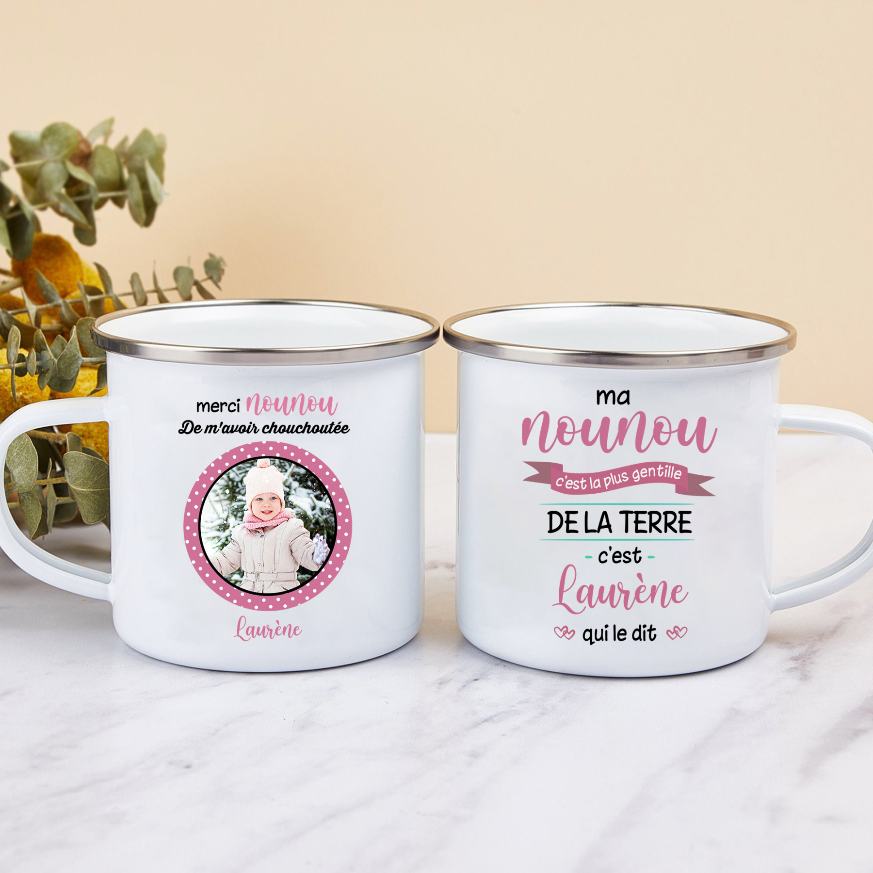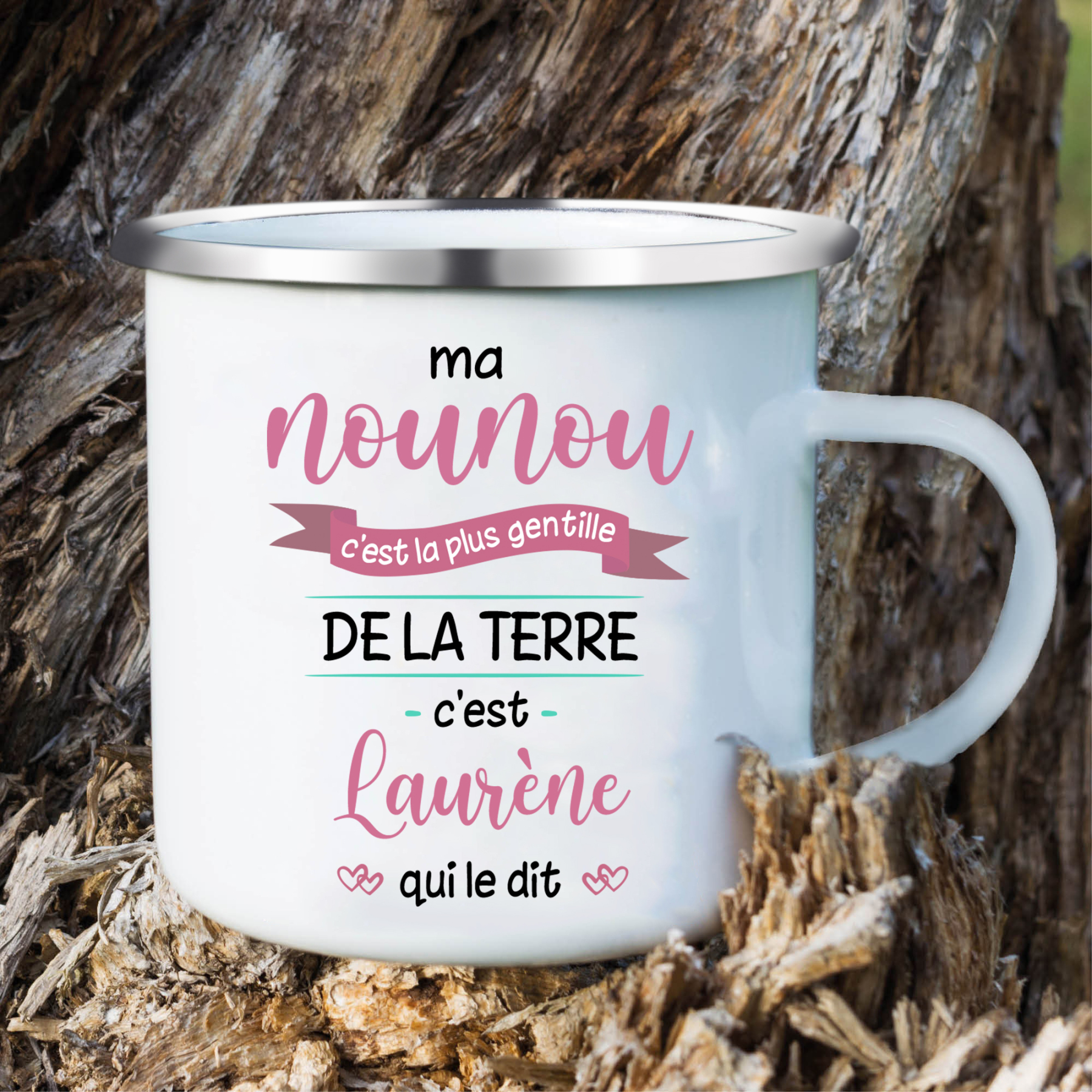 À Ma Nounou - Tasse émaillée Prénom et Photo Personnalisés