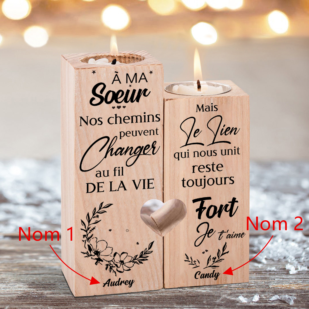 À Ma Sœur - Bougeoir en Bois 2 Prénoms Personnalisés sans bougie
