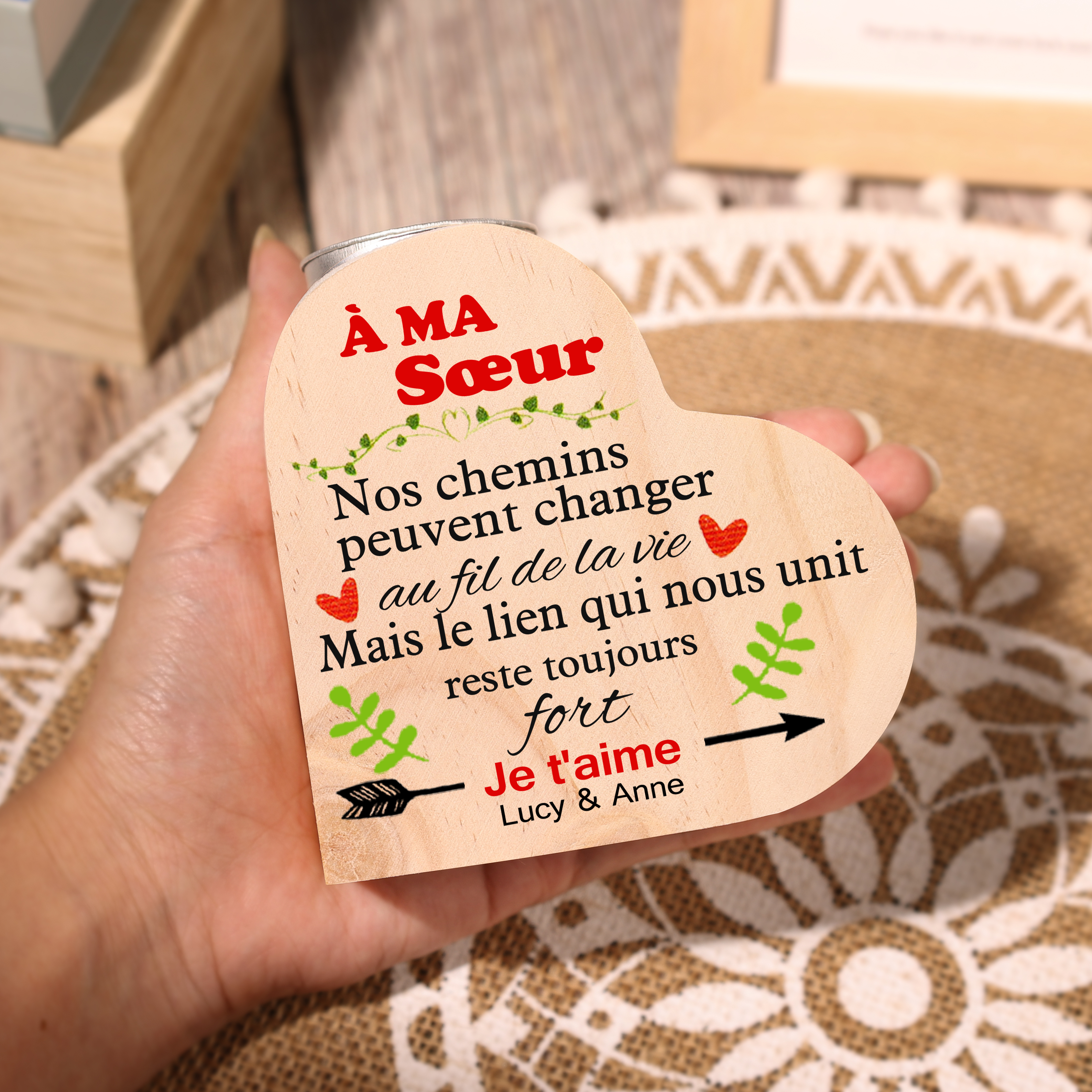 À Ma Sœur - Bougeoir en Bois 2 Prénoms Personnalisés sans bougie