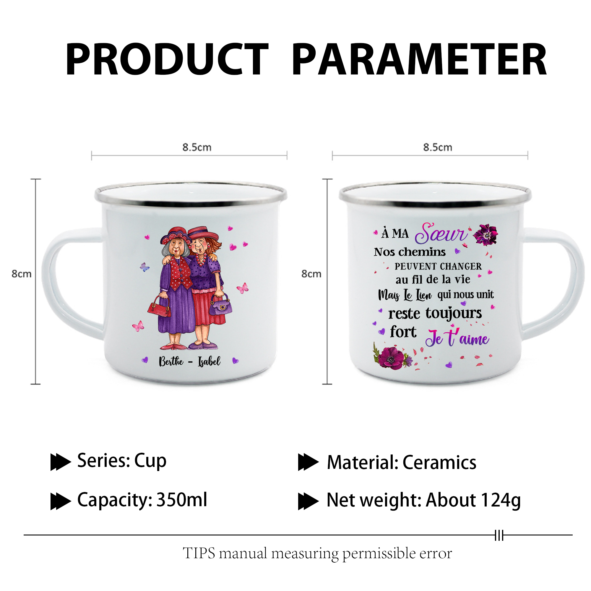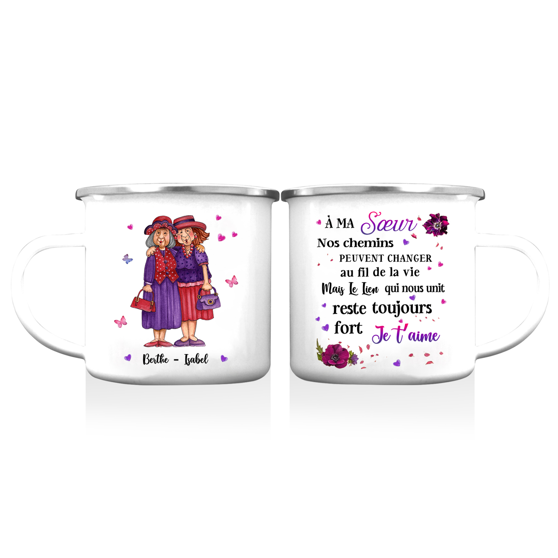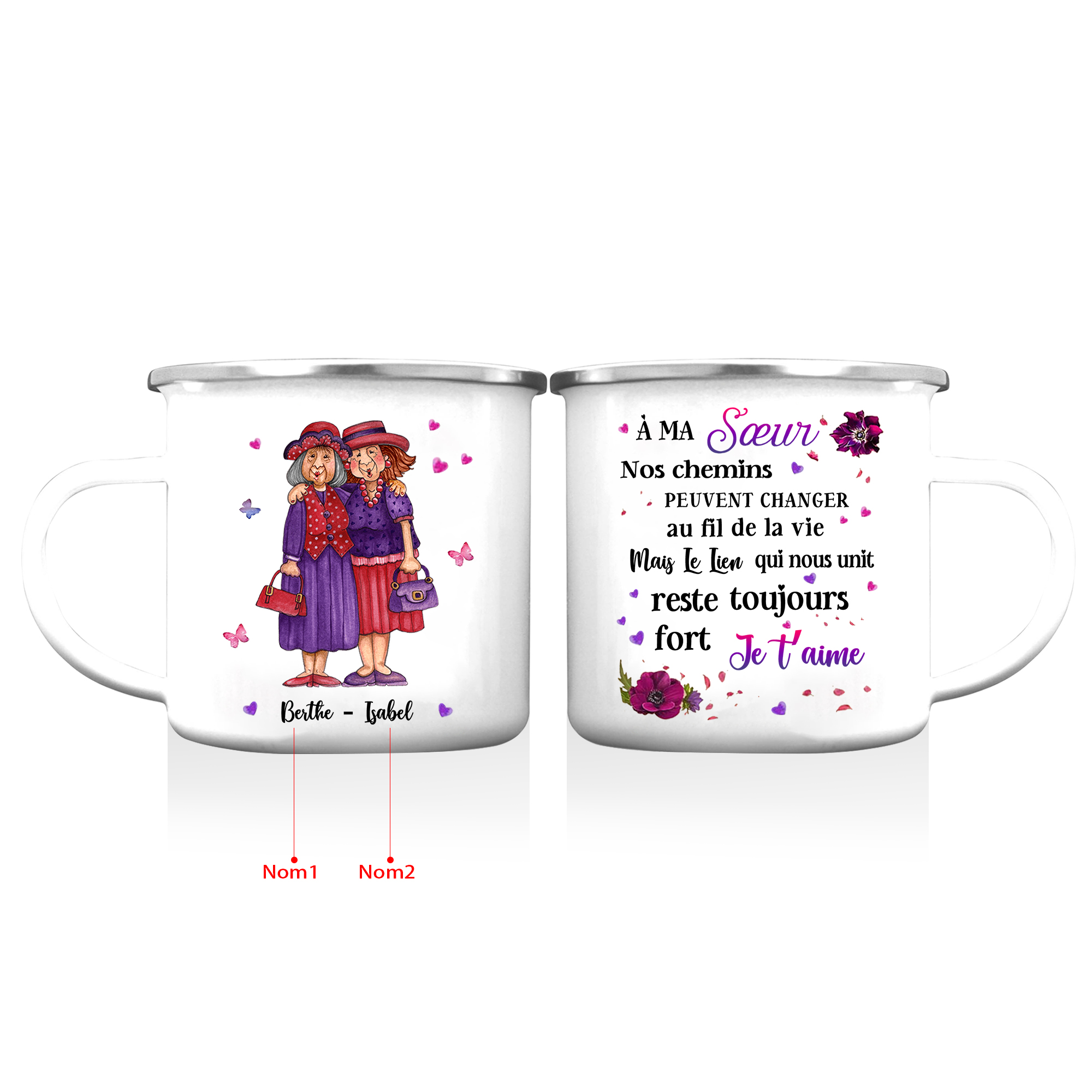 À Ma Sœur- Tasse émaillée 2 Prénoms Personnalisés