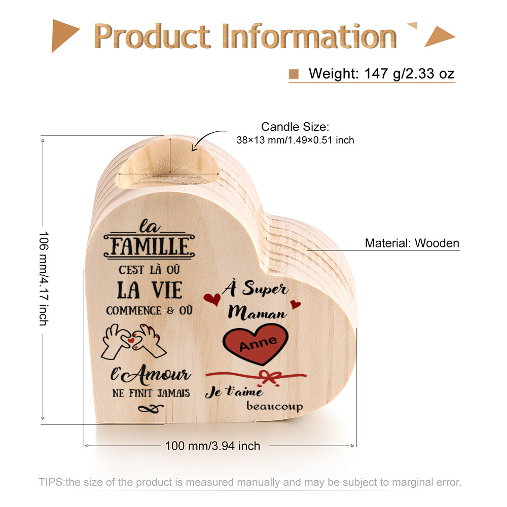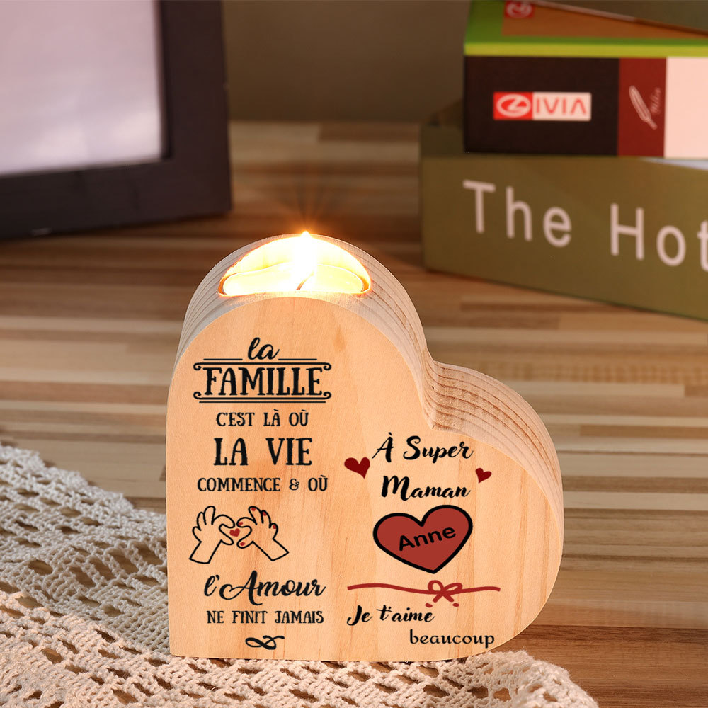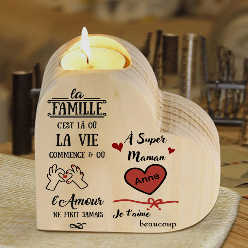 À Maman -Bougeoirs Cœur en Bois 1 Prénoms Personnalisés sans bougie