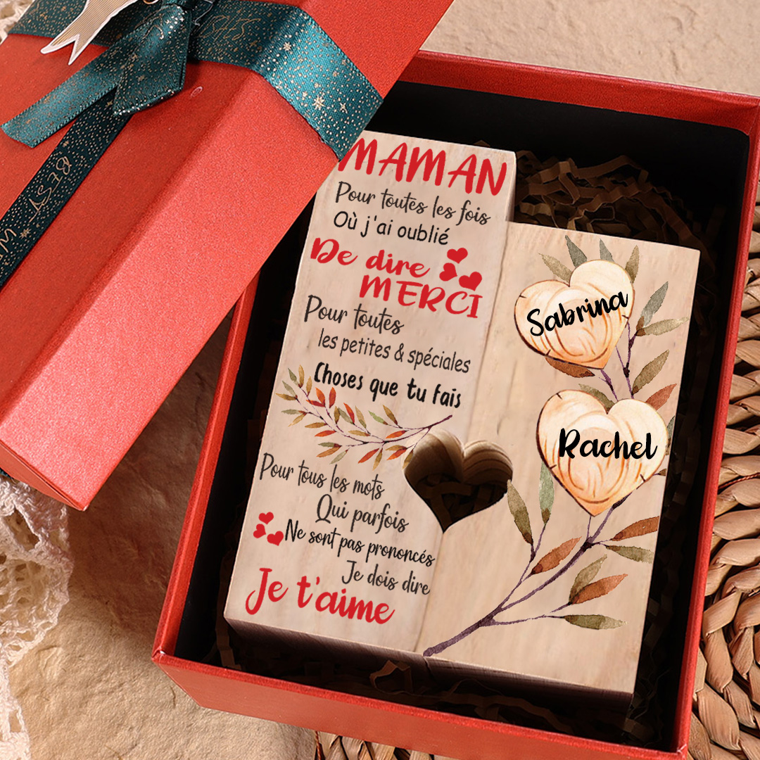 À Maman - Bougeoirs en Bois sans bougie 2 Prénom Personnalisé