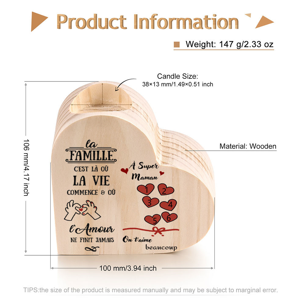 À Maman -Bougeoirs Cœur en Bois 6 Prénoms Personnalisés sans bougie