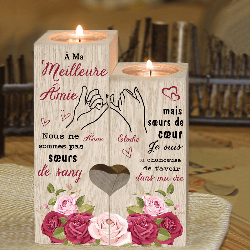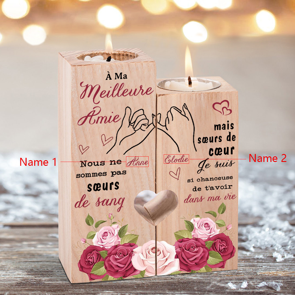 À Meilleure Amie - Bougeoir en Bois 2 Prénoms Personnalisés sans bougie