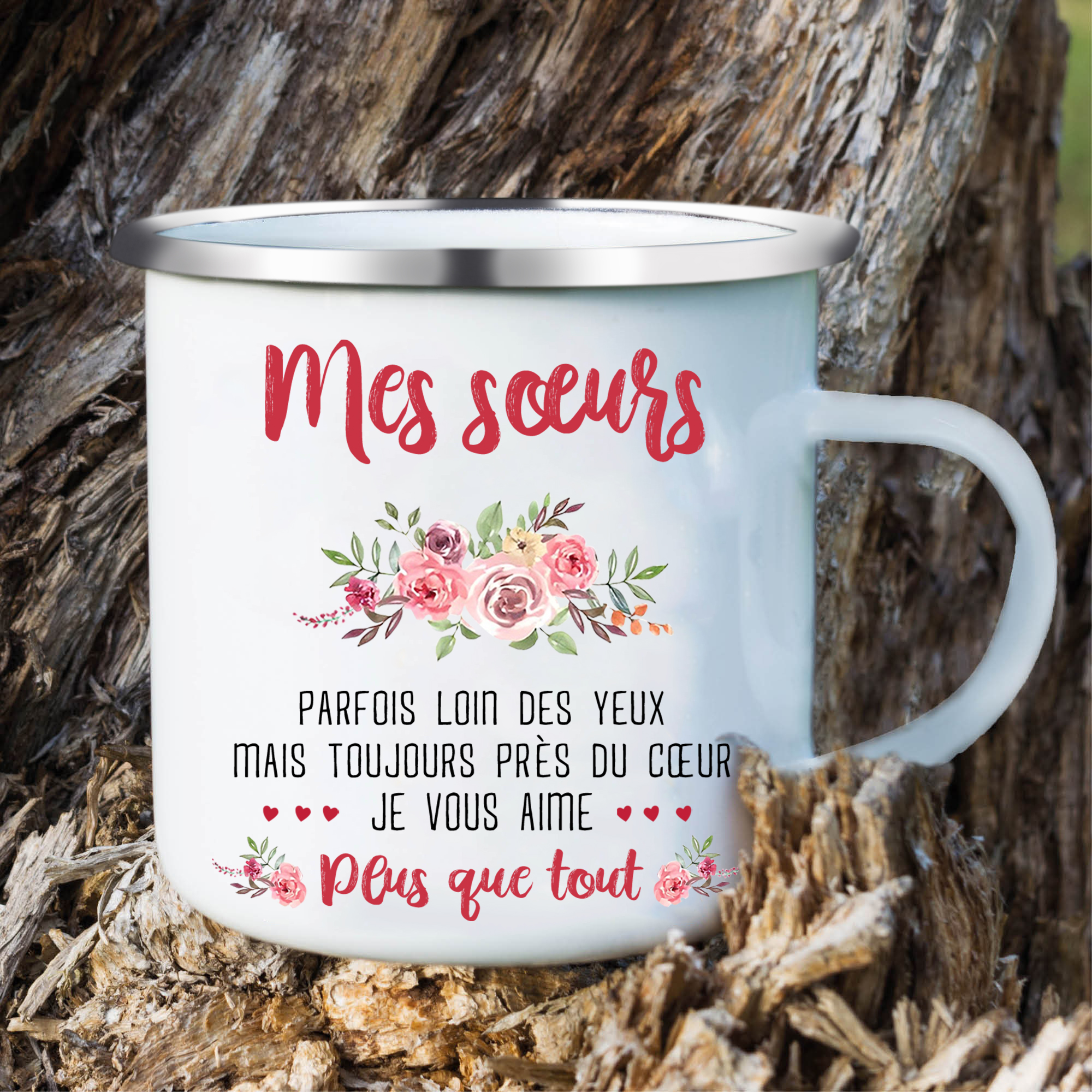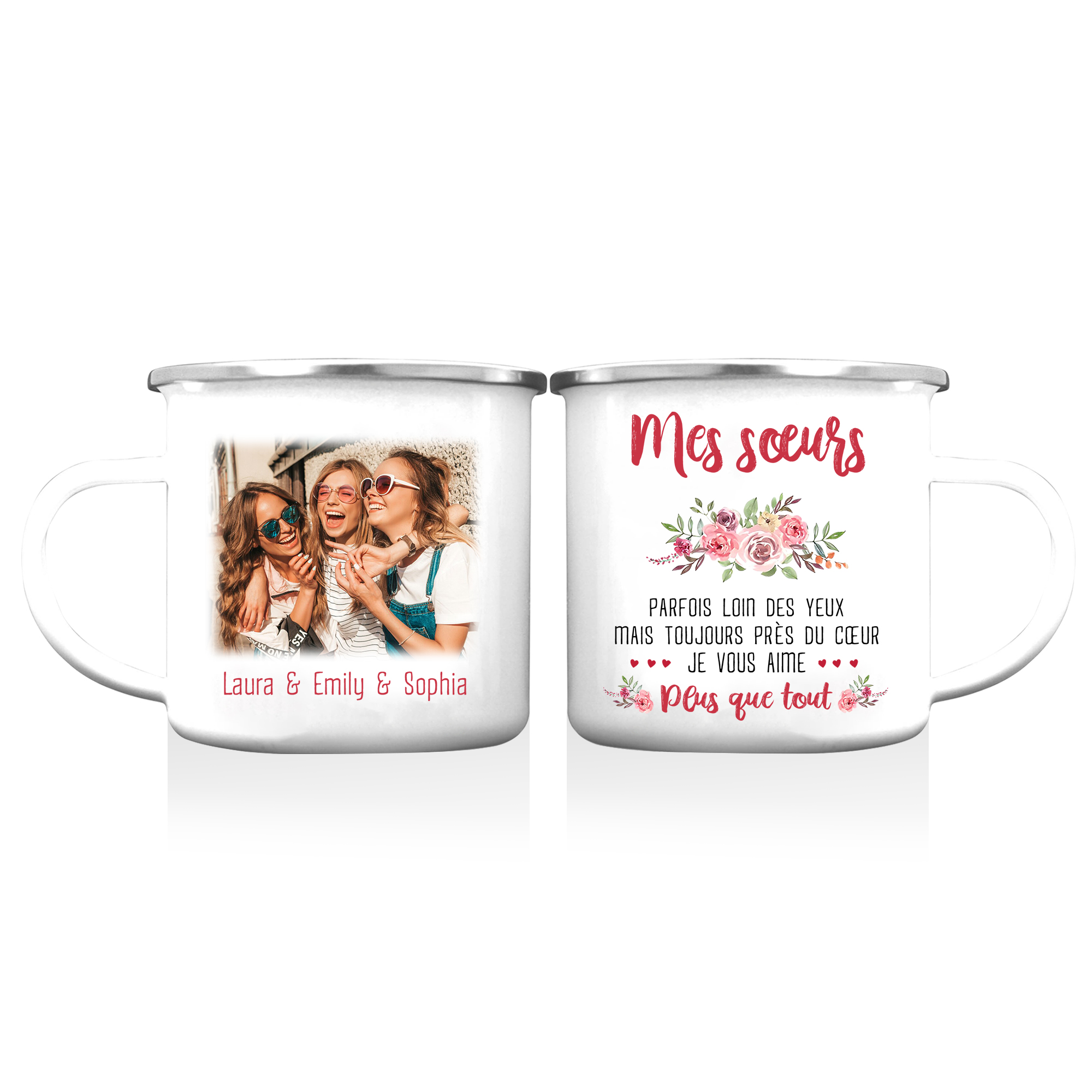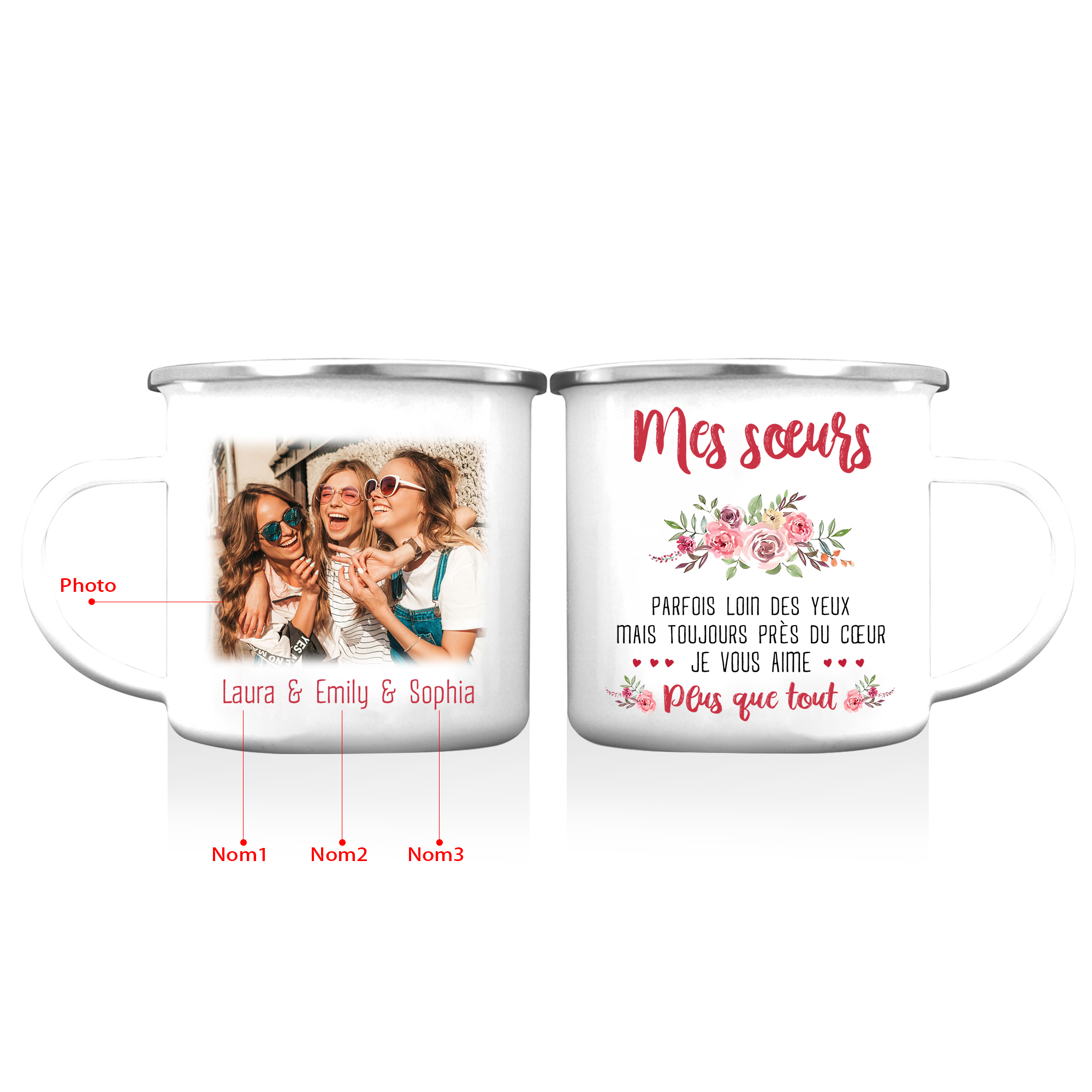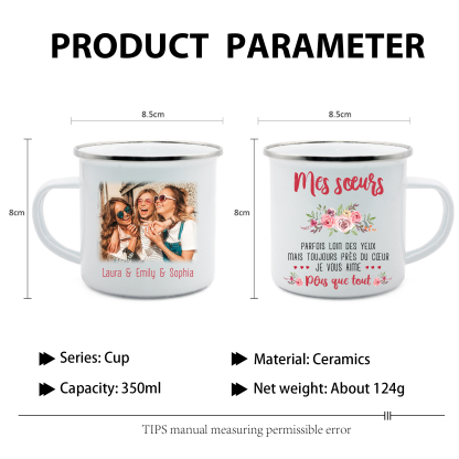 À Mes Sœurs- Tasse émaillée 3 Prénoms Personnalisés avec Photo