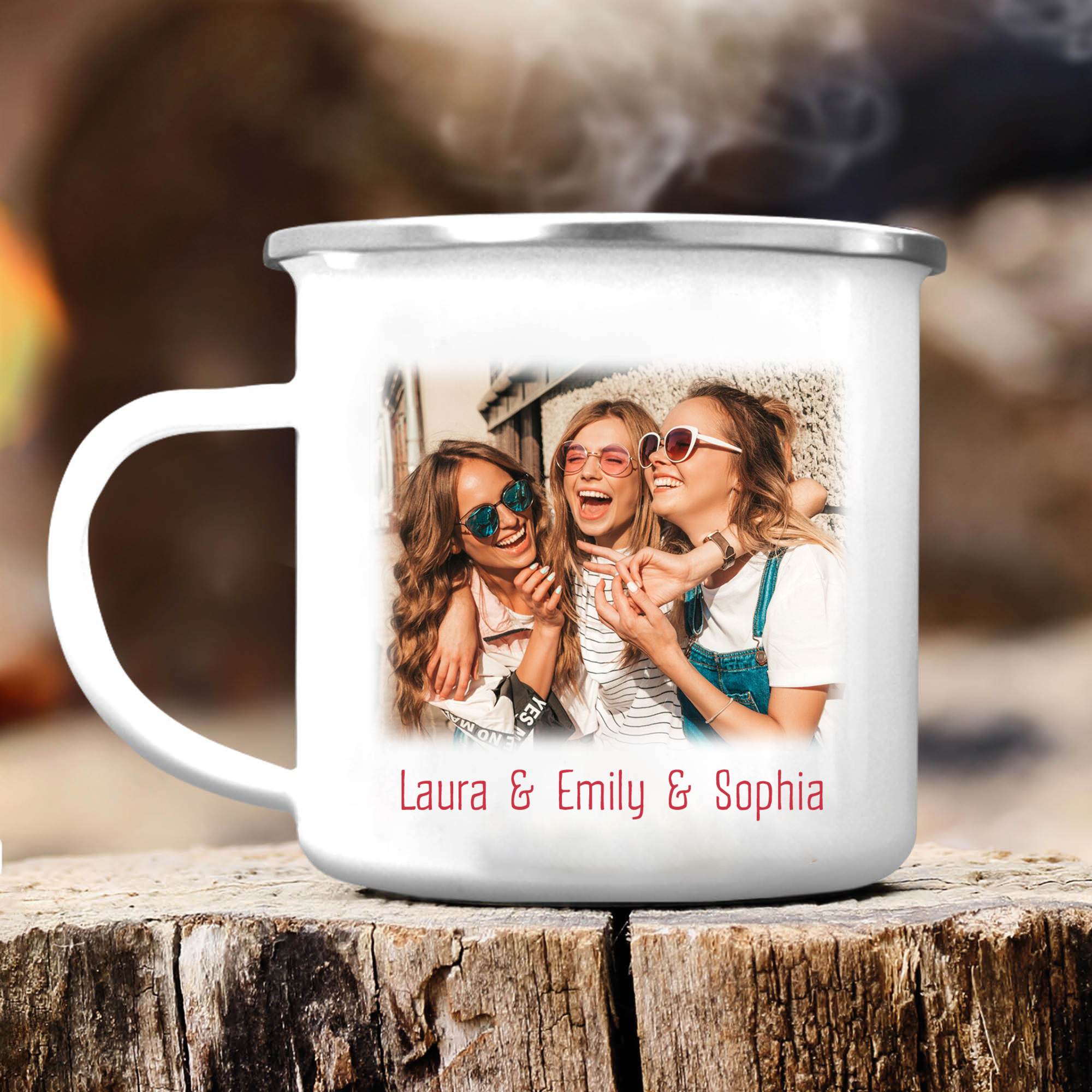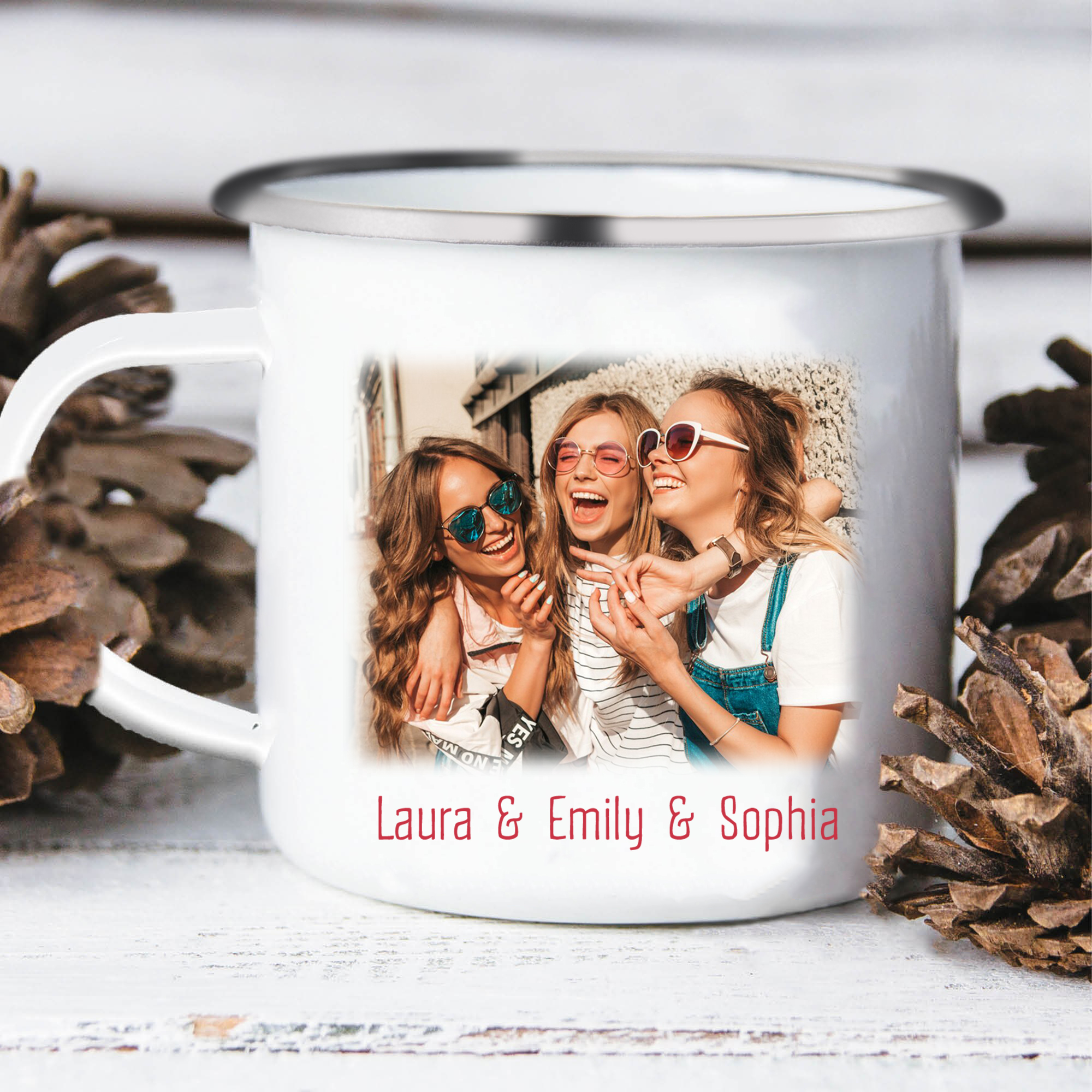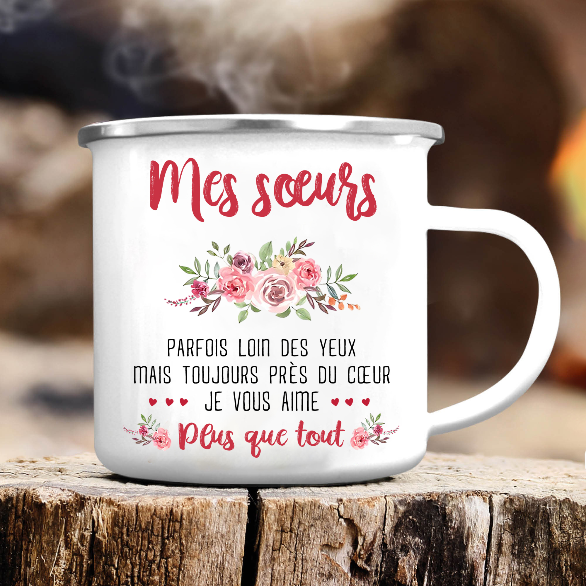 À Mes Sœurs- Tasse émaillée 3 Prénoms Personnalisés avec Photo