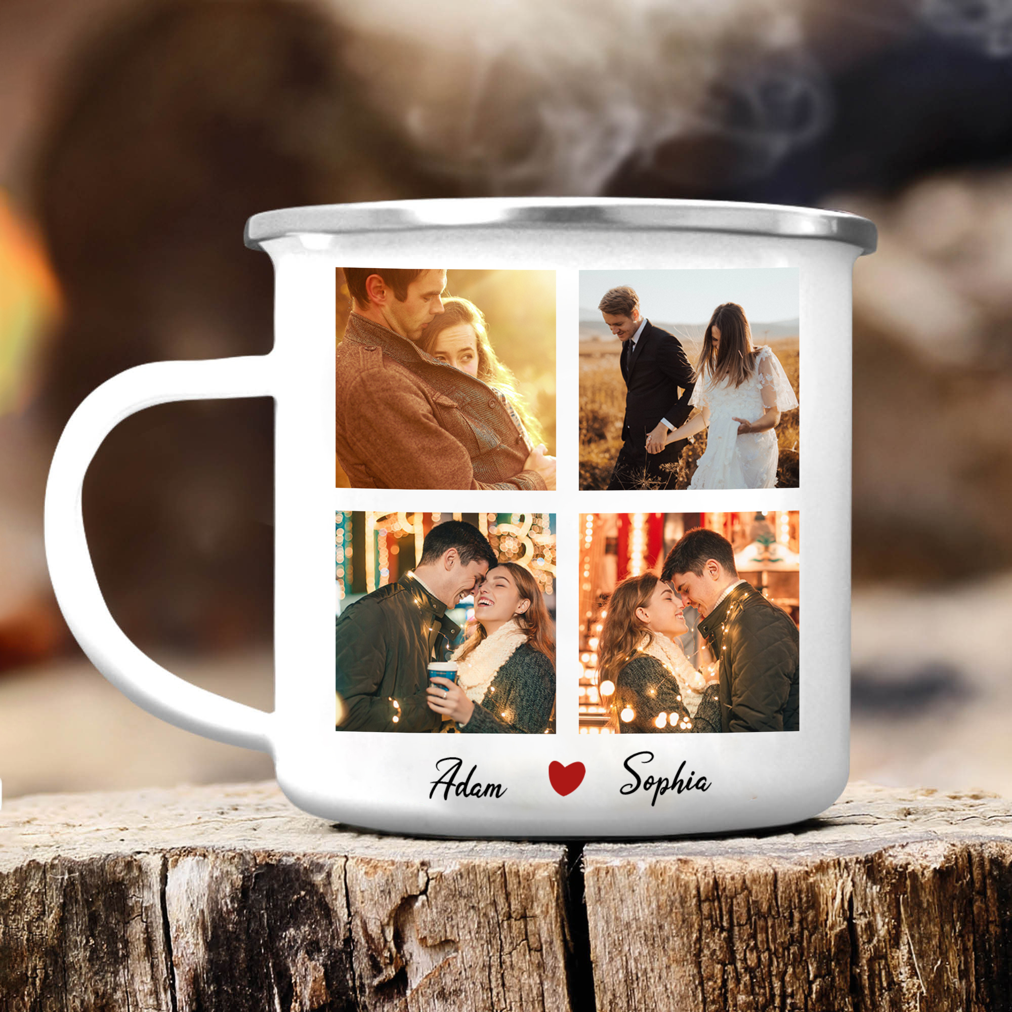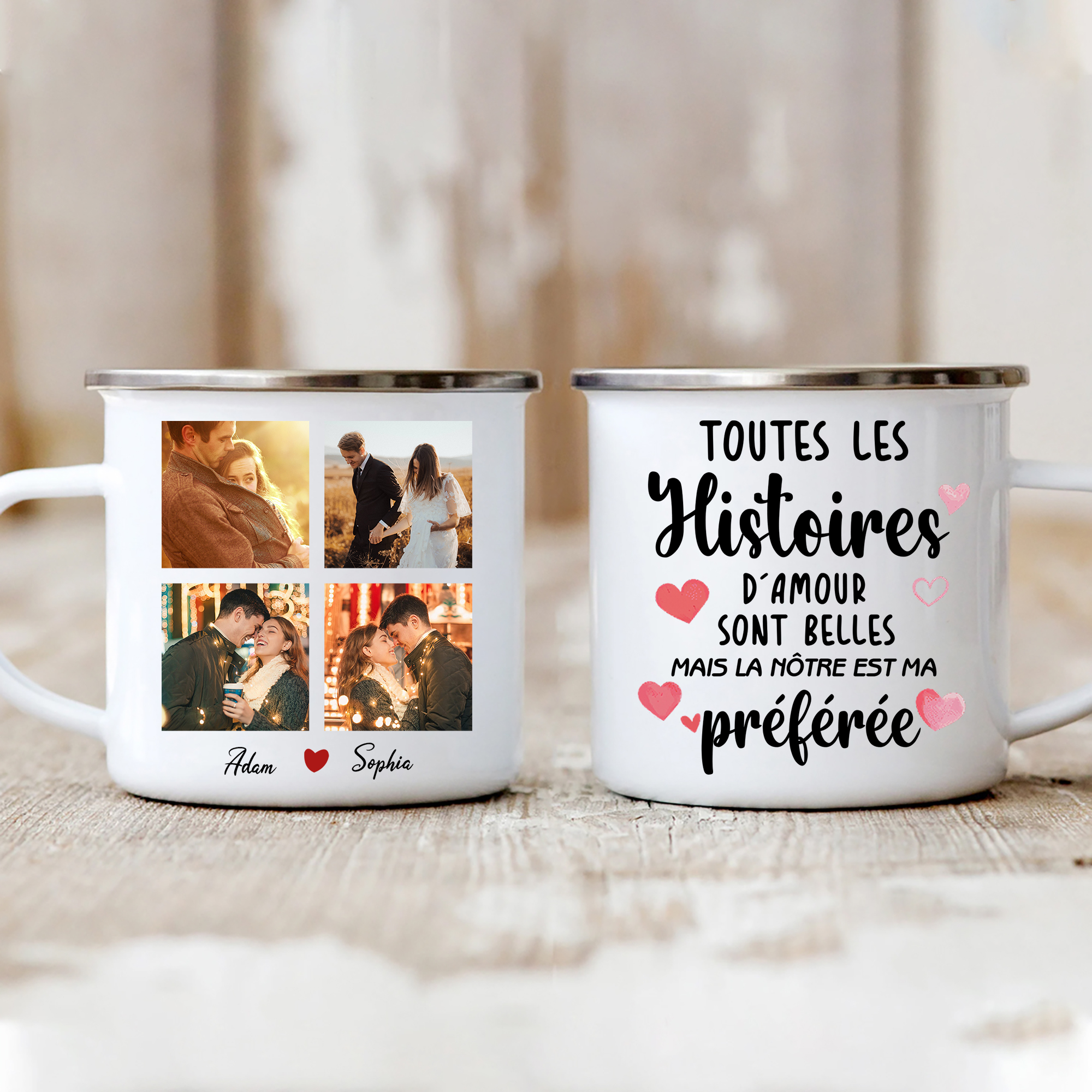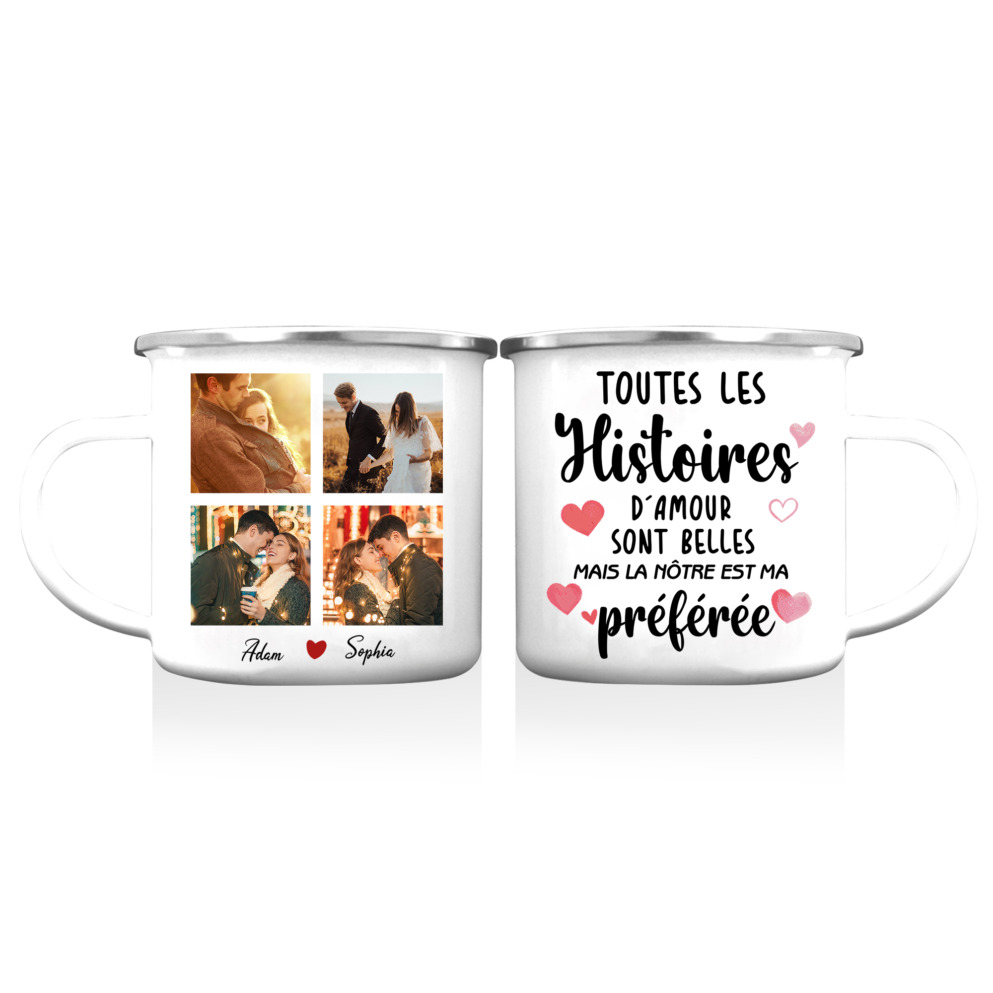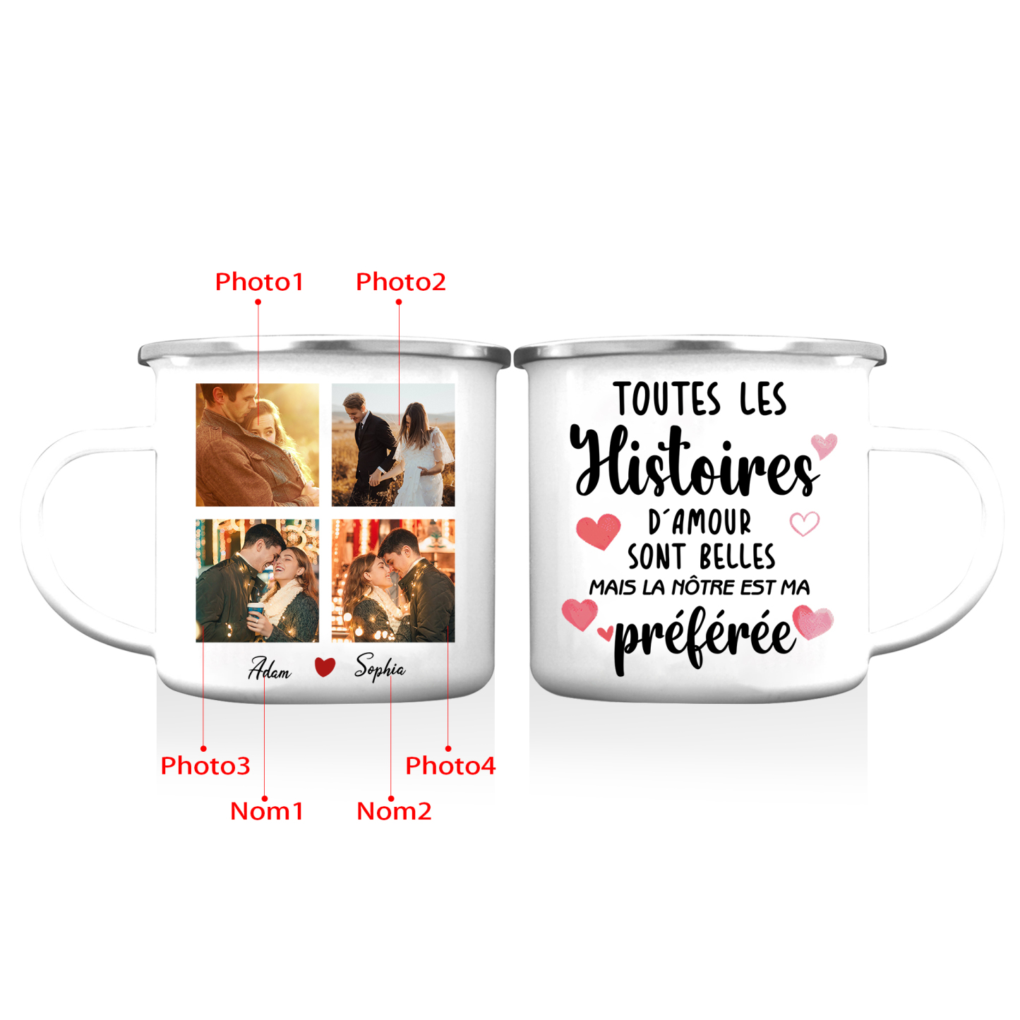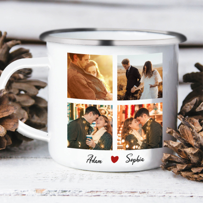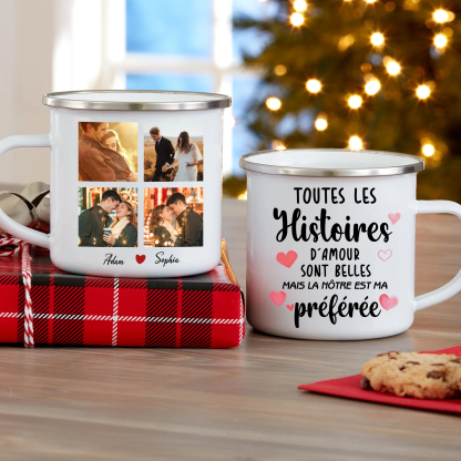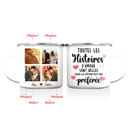 À Mon Amour - Tasse émaillée 2 Prénoms Personnalisés avec 4 Photos