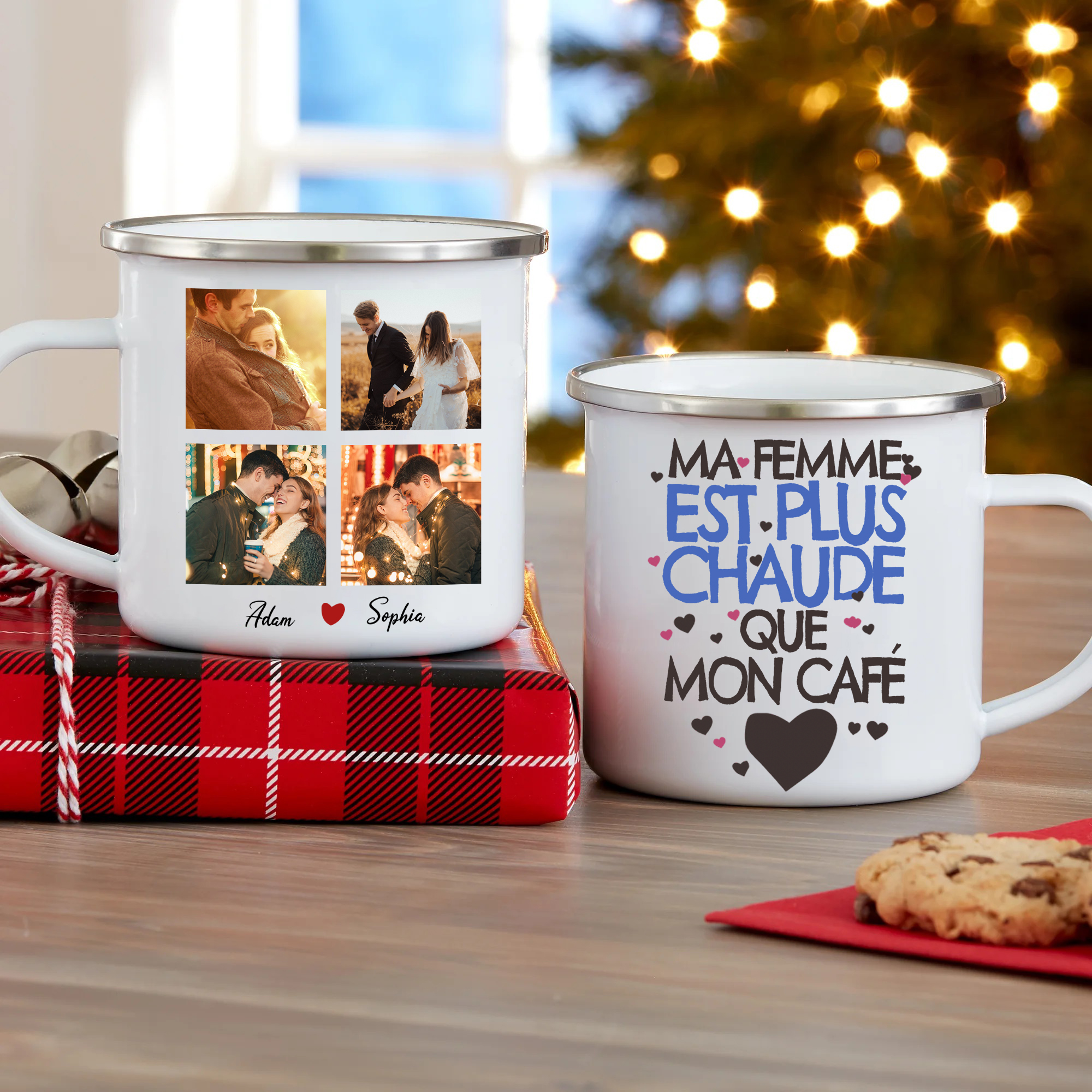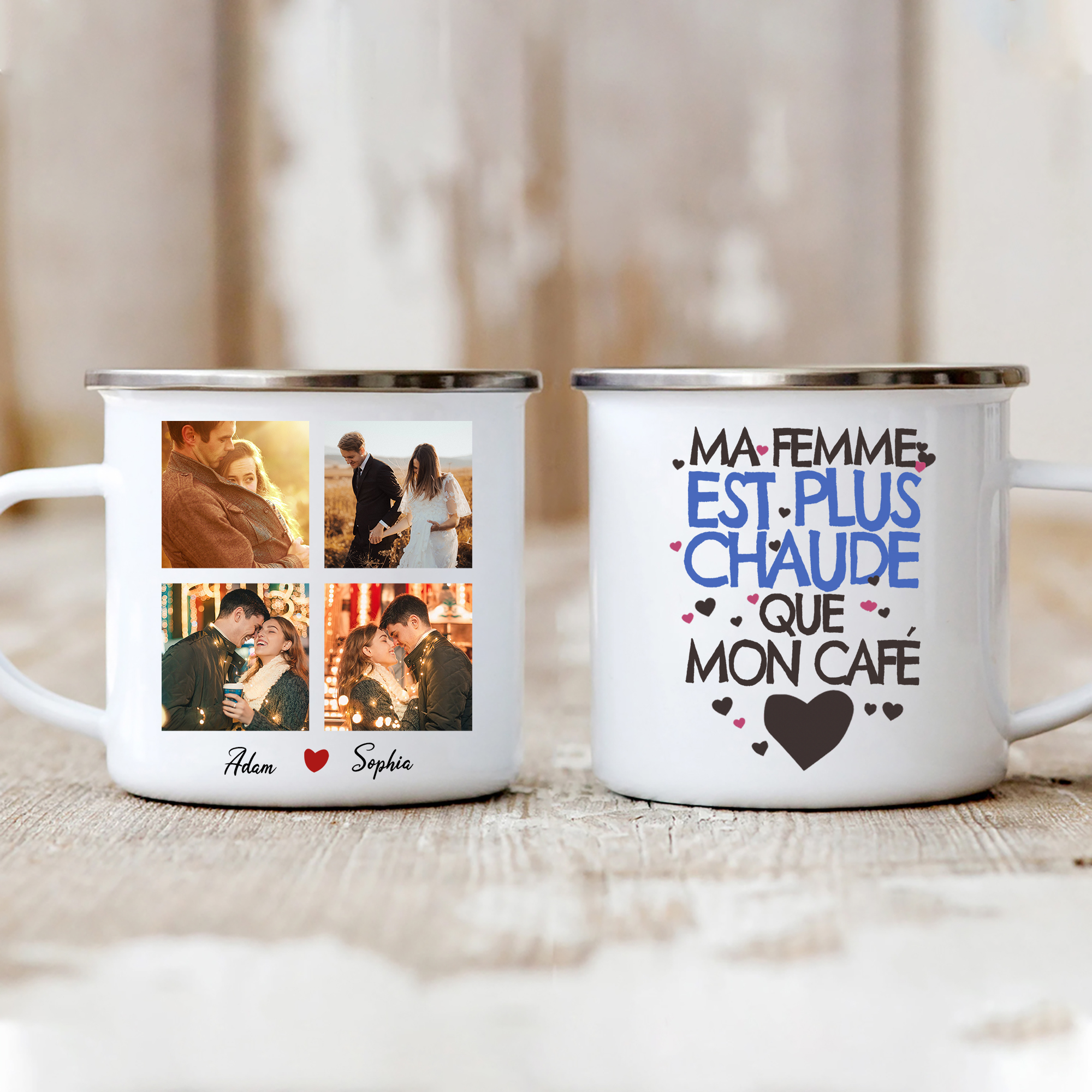 À Mon Amour - Tasse émaillée 2 Prénoms Personnalisés avec 4 Photos